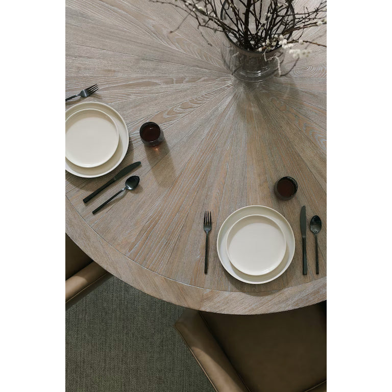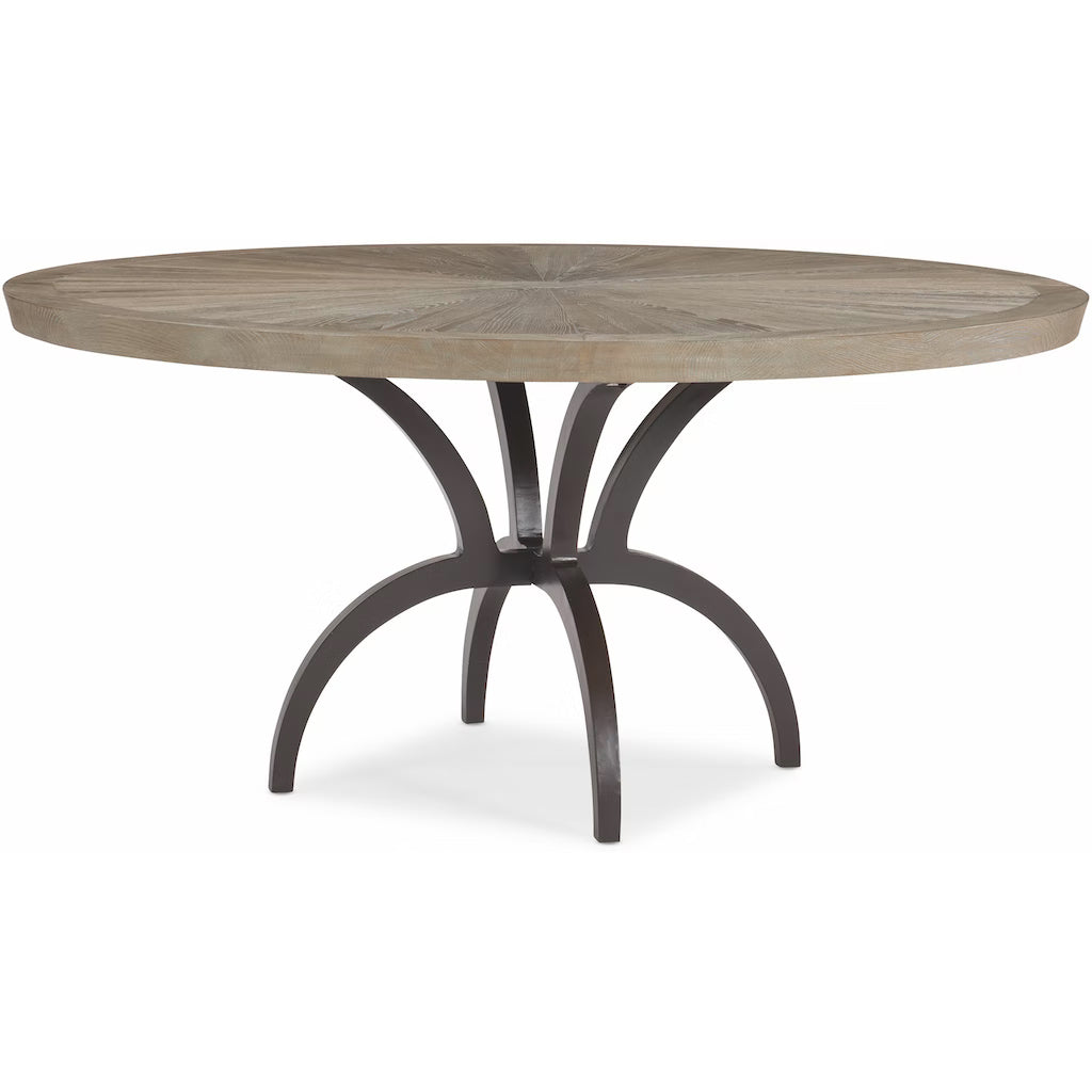 With effortless elegance this charming table invites friends and family to gather round for delicious meals, game night and leisurely after-dinner conversations. Youll love the expressive sunburst woodgrain pattern highlighted in an easygoing shade of Ash Driftwood. A handsome metal base in Chocolate Bronze lends an updated vibe while ensuring plenty of legroom. With cool sophistication, this table offers authentic character that will complement any home décor style.