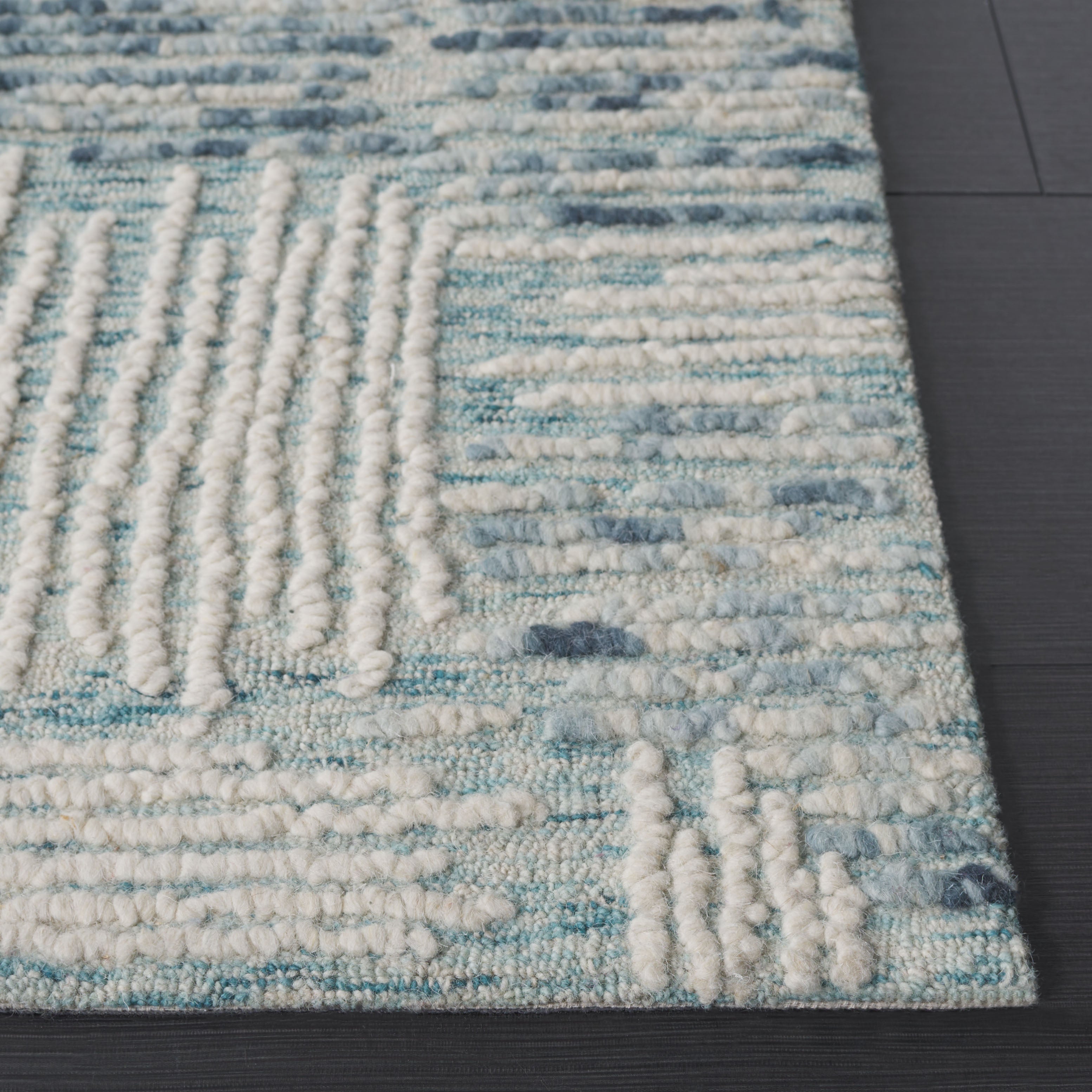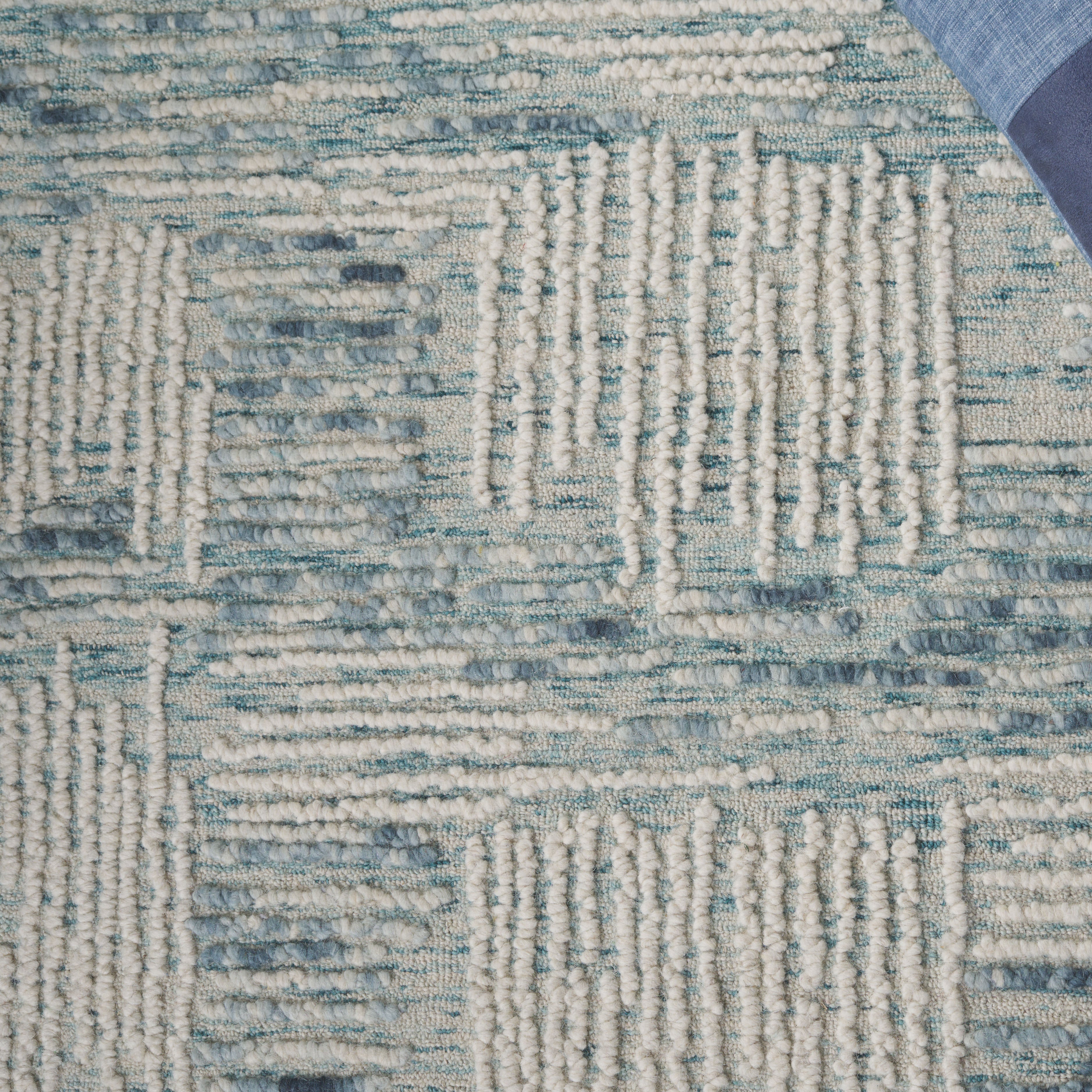 Experience the epitome of luxury underfoot with this exquisite contemporary-style hand-tufted runner. Sized perfectly at 2'-3" X 8' with a comfortable height of 3/8", this runner rug is an ideal addition to any long hallway or slender space. It showcases a beautiful interplay of blue and ivory shades, creating a serene and sophisticated palette that seamlessly complements your decor.