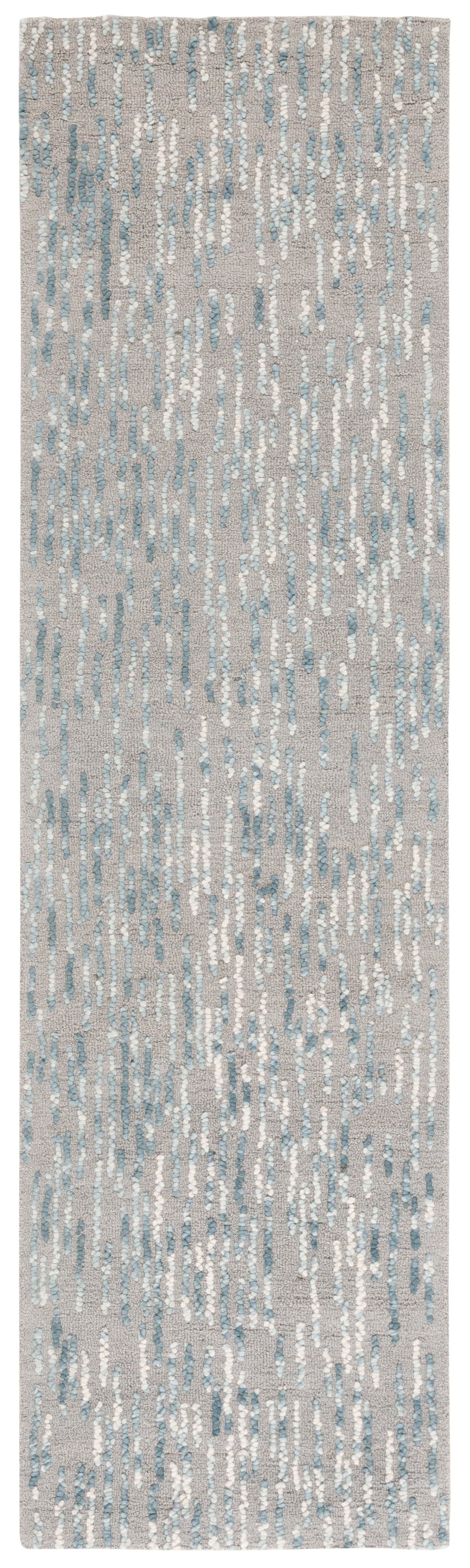 The runner rug features a serene palette of grey and blue, harmoniously intertwined in a unique abstract pattern that captivates and complements a variety of interior decors. Whether it's laid out in your hallway, kitchen, or living room, its timeless elegance and soothing colors are sure to enhance the ambiance of your home.