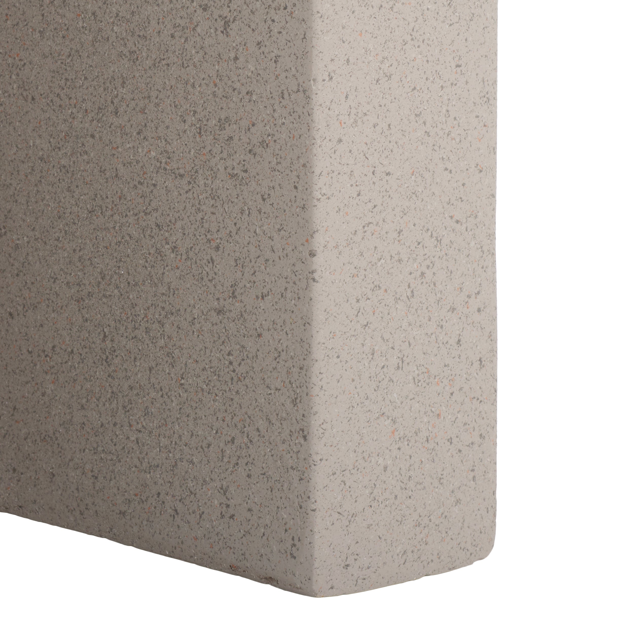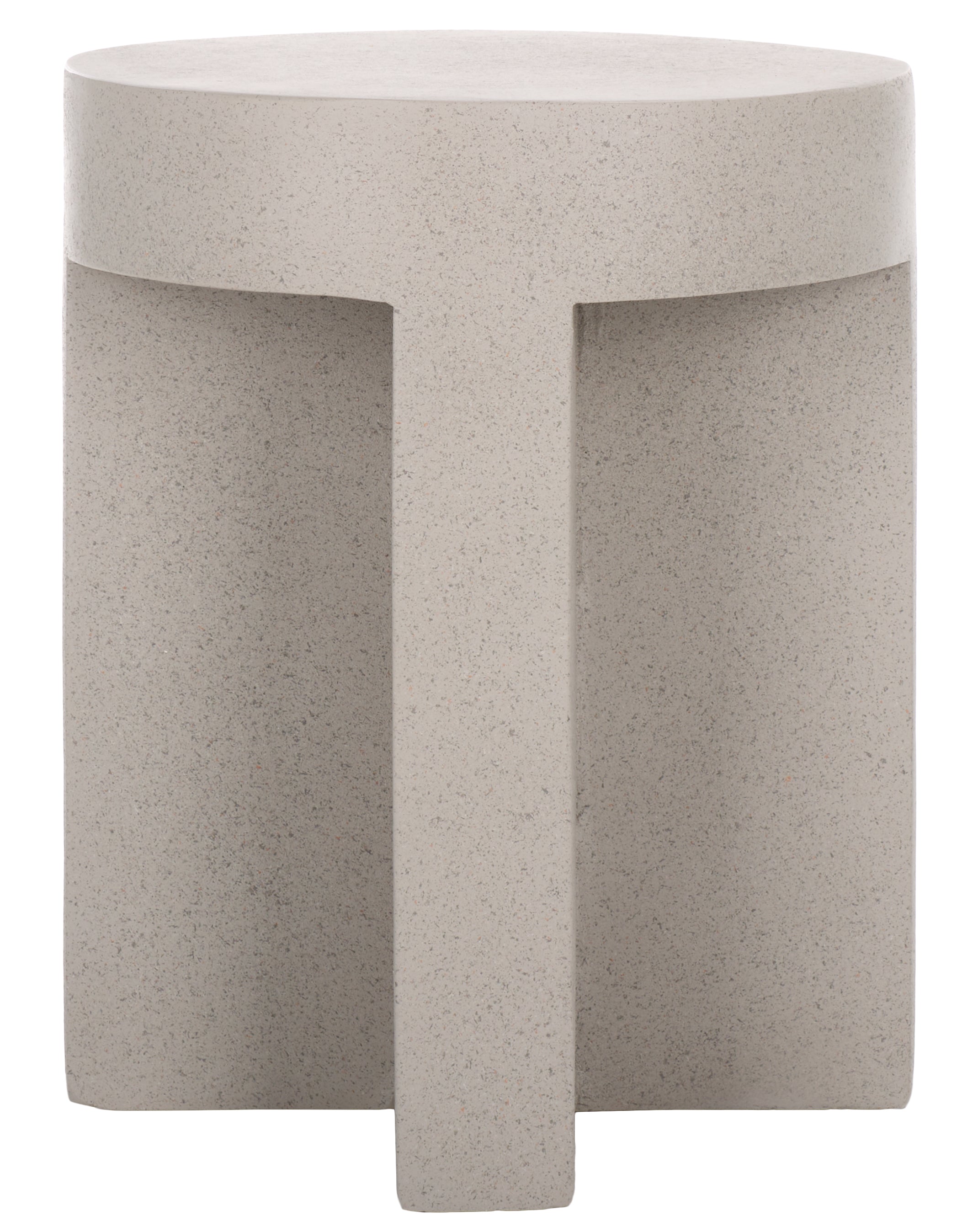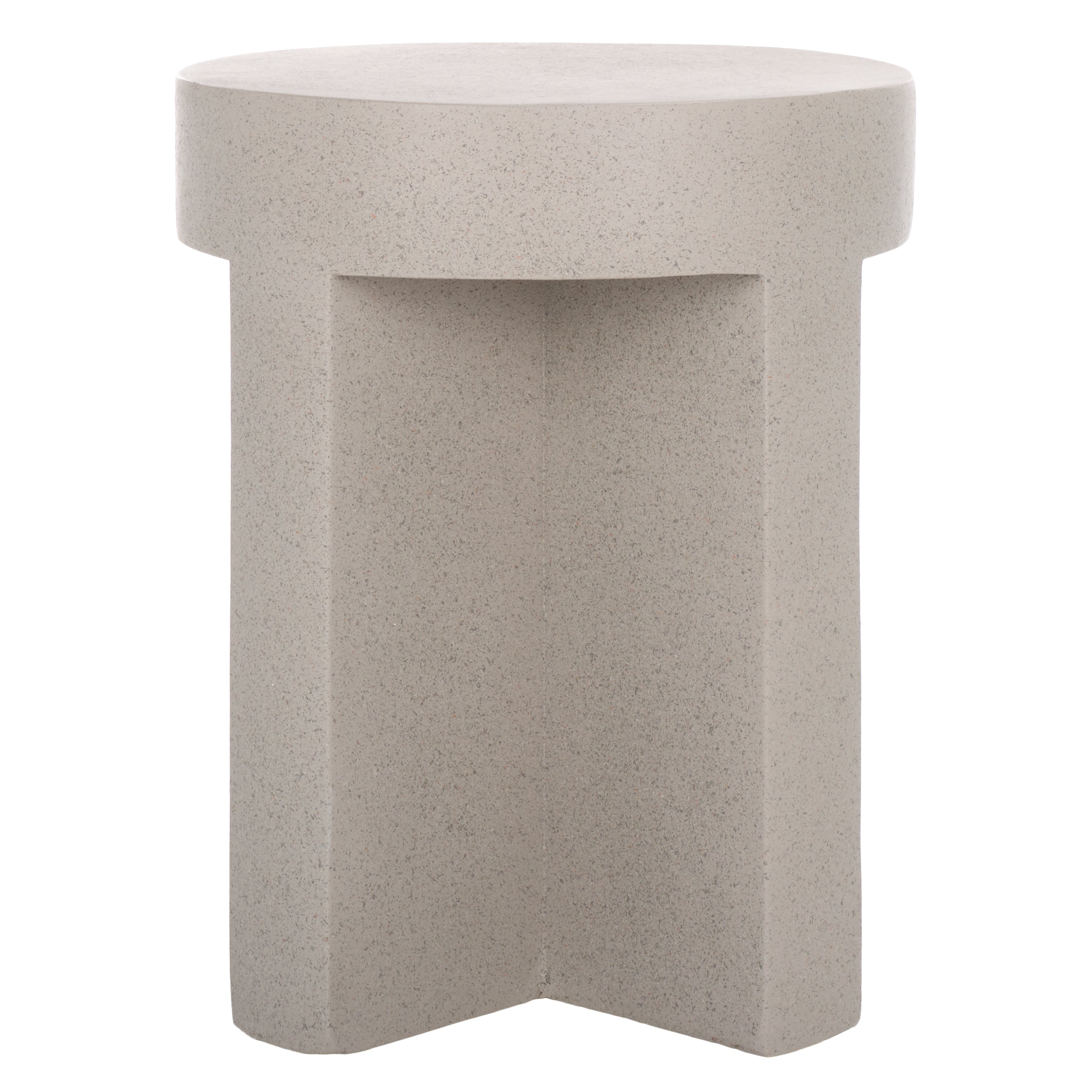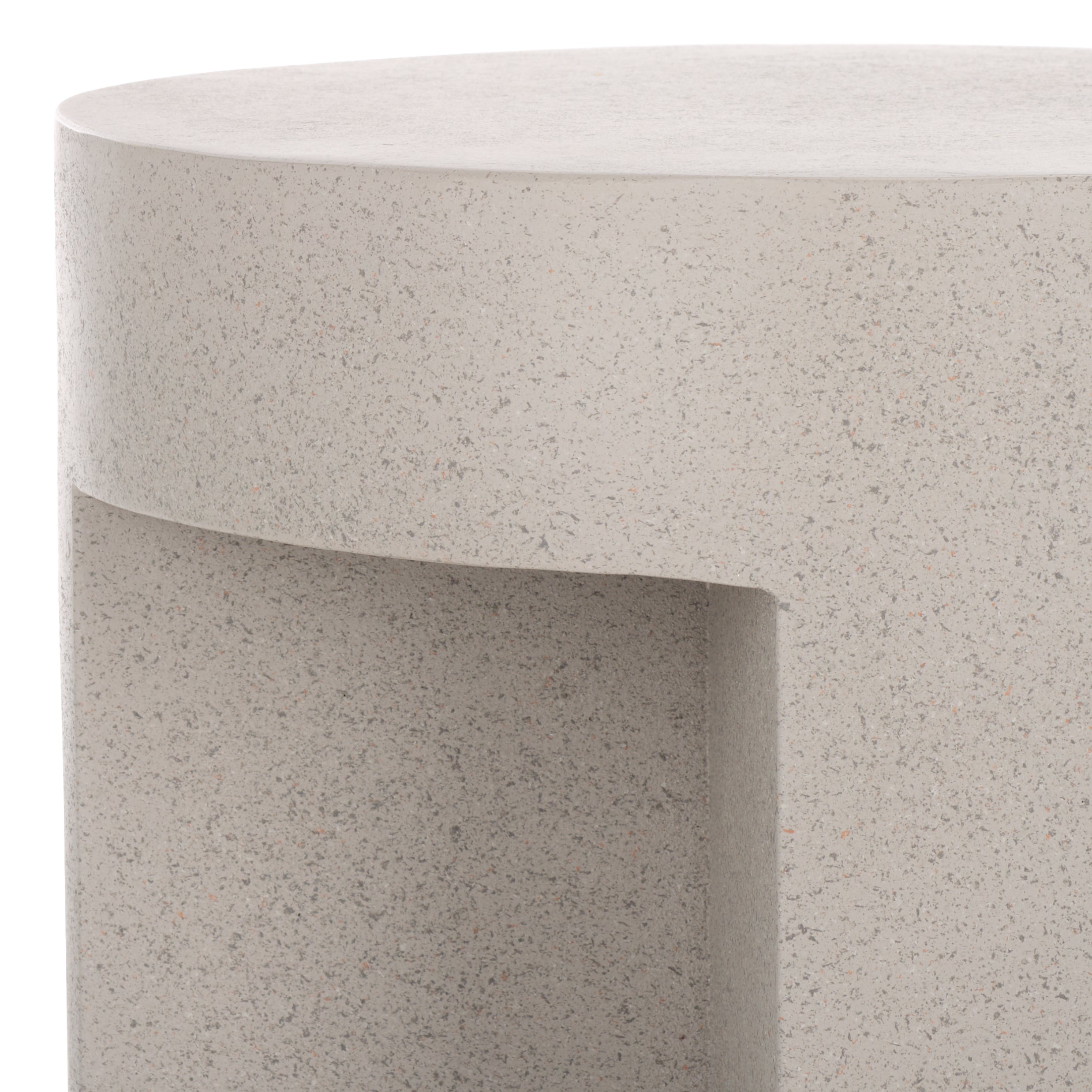 Give a graceful and elegant finishing touch to your space with our Aldrich round accent table. With a soothing finish and clean architectural profile, our accent table lends a sleek and sculptural edge to any corner. Its round tabletop creates an elegant contrast with its crisp cross-shaped base. The table is cast in a lightweight material with a soothing and subtly textured grey finish to attain a stunning block-like appearance. Featuring an elegant and versatile design, the table can serve as an appealing accent for any corner of your home. It can lend an elegant perch to your decor items and essentials.
