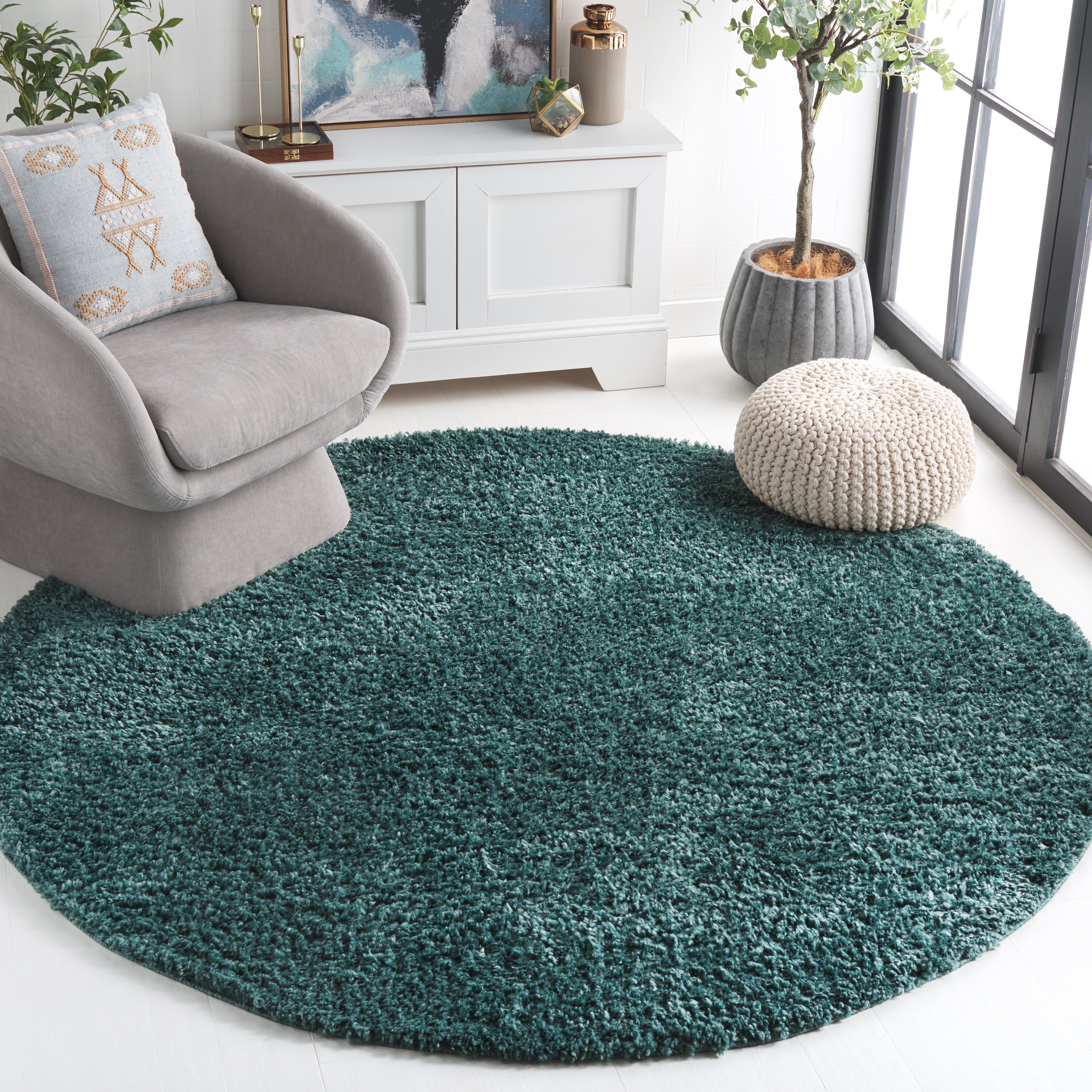 Transform your living space with this stunning area rug. Its shape contributes a sense of spaciousness, while the shag style, reminiscent of classic Flokati designs, adds a cozy layer underfoot. The pure color offers a versatile base that complements any interior decor, from modern minimalist to eclectic bohemian.