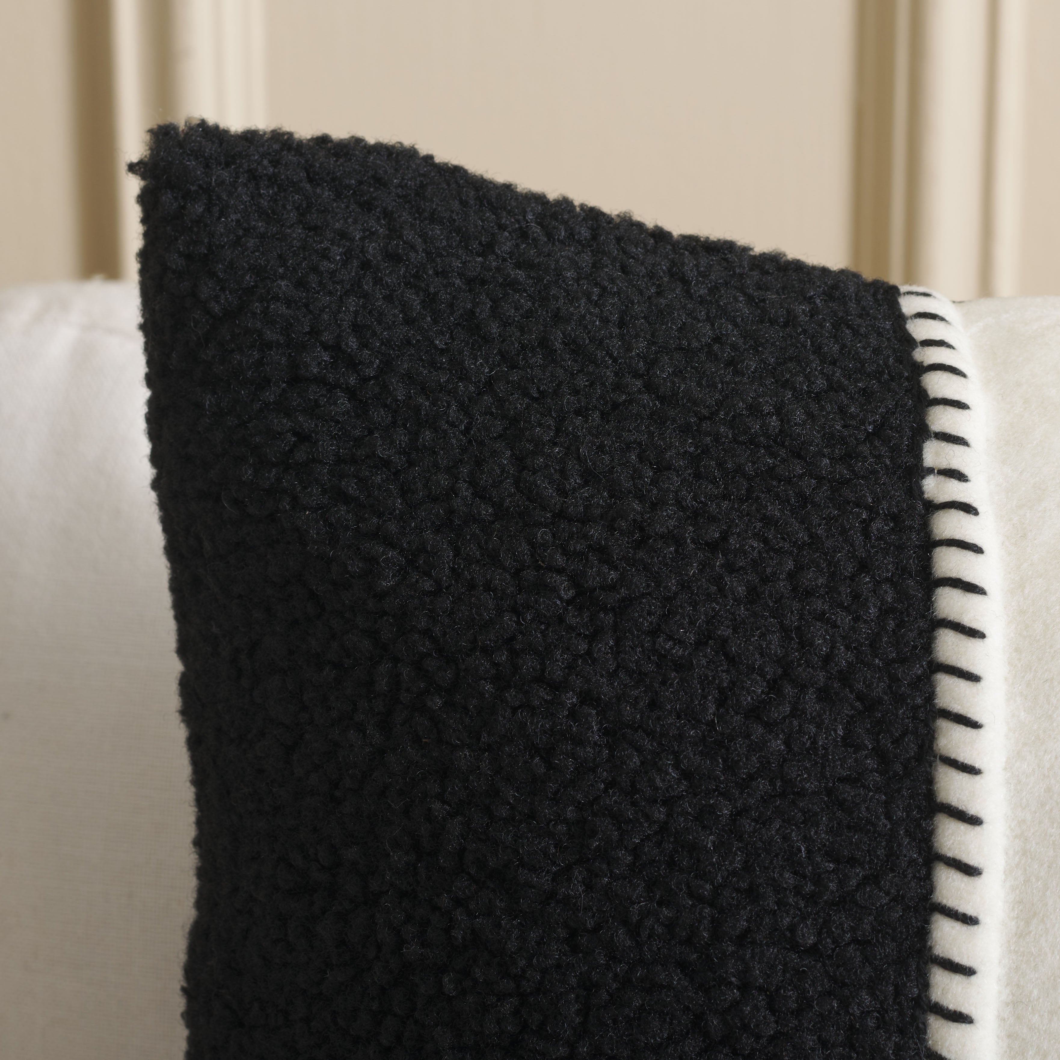 Introducing the Camdyn pillow ? a striking and cozy addition to your home d?cor. With its bold black and sophisticated ivory color scheme, this pillow is sure to add a touch of elegance to any room. Crafted with a delightful blend of polyester and wool, this pillow showcases a distinctive look with its contrasting colors and stitched borders, making it a unique piece for your sofa, chair, or bed. Bring home this stylish accent piece and infuse your space with a chic and inviting atmosphere.