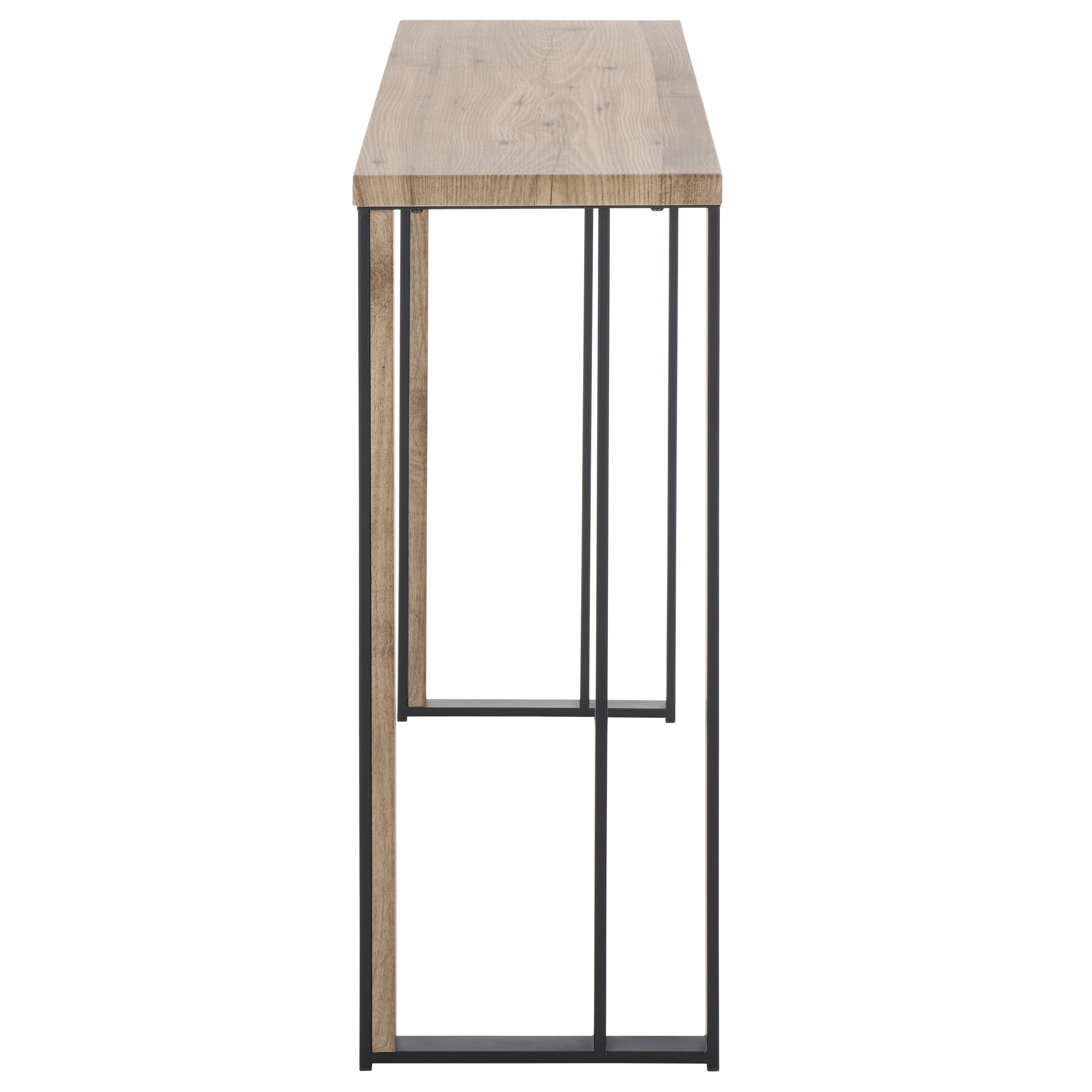Presenting the Carlino Console Table - an instant upgrade to your home decor. Crafted with remarkable workmanship, the table showcases a distinctive light brown finish, tastefully combined with black iron legs. This classic color palette ensures it seamlessly blends with your existing home decor, whether it's modern, classic or rustic.