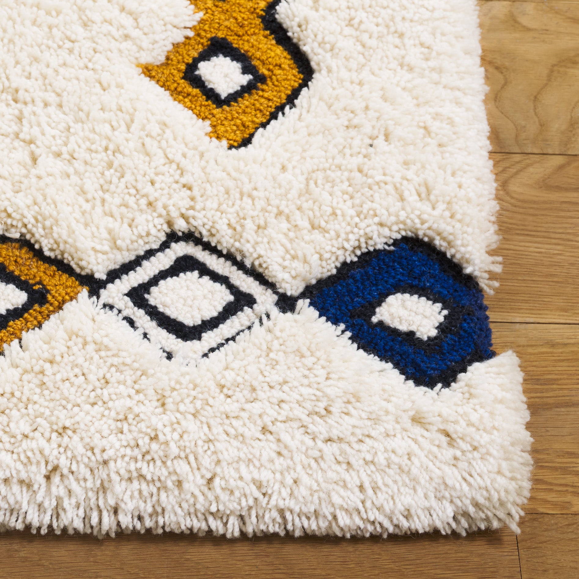 Experience luxury and comfort underfoot with our exquisitely hand-tufted area rug. Skillfully crafted in India, this runner rug features a plush height of 1'' and is composed of 80% wool and 20% cotton, offering a perfect blend of durability and softness. Its timeless ivory base is gracefully enhanced by vibrant green details, adding a touch of elegance to any room setting. With its Shag & Flokati style, this rug is not just a beautiful floor covering, but a piece of art that will add charm and warmth to your home decor. Invest in this luxurious runner rug and transform your living space into a cozy, inviting one.