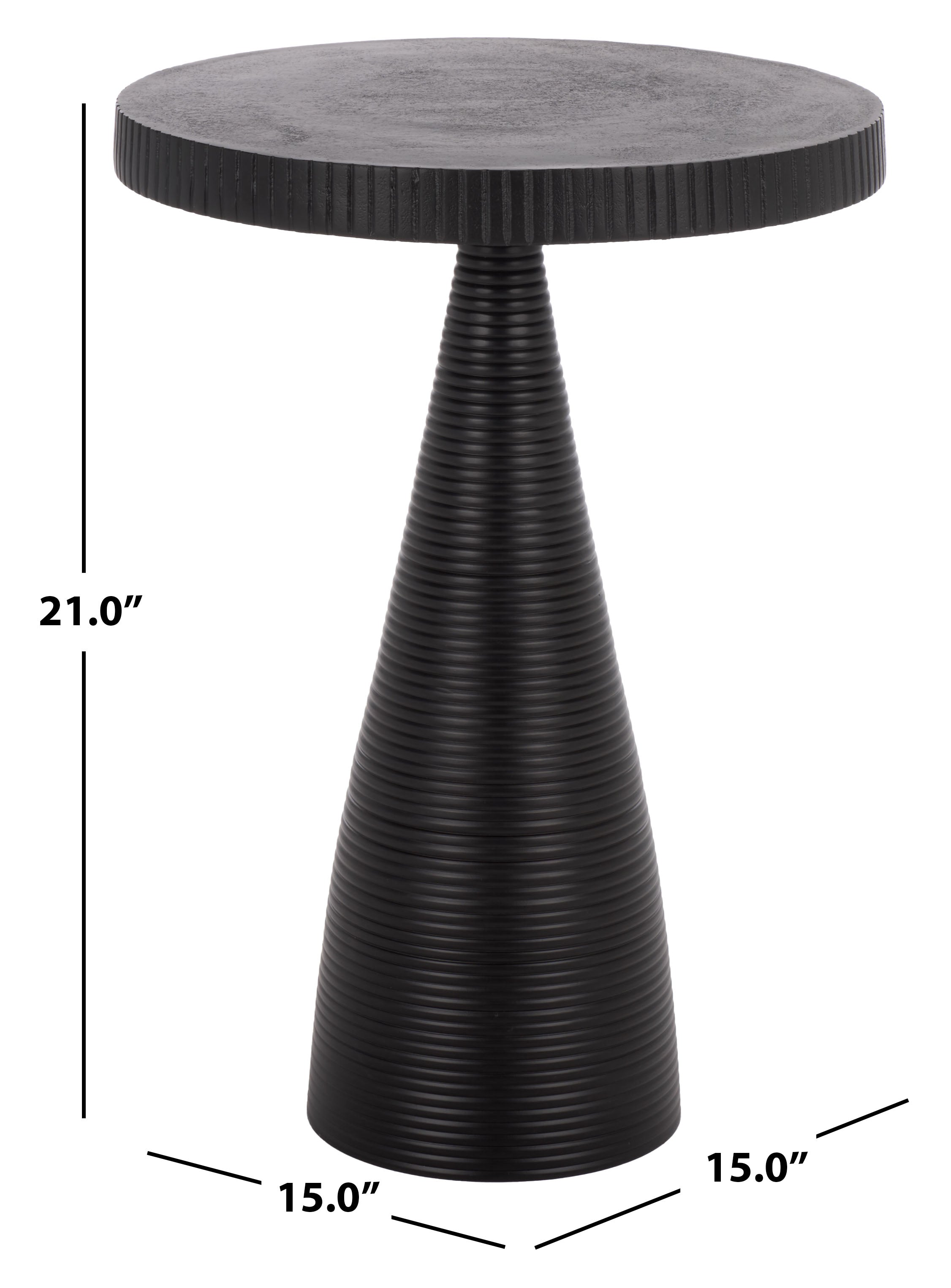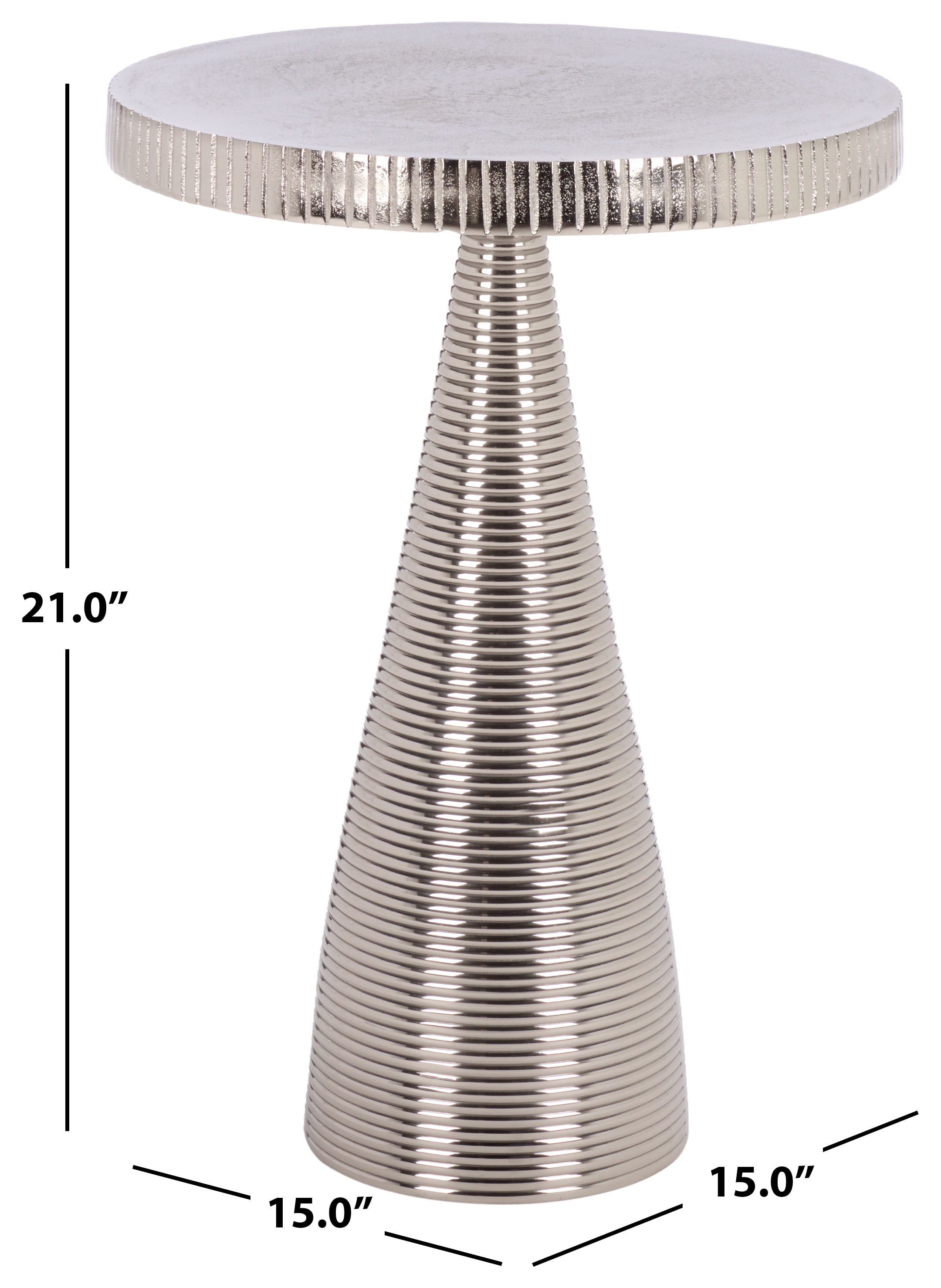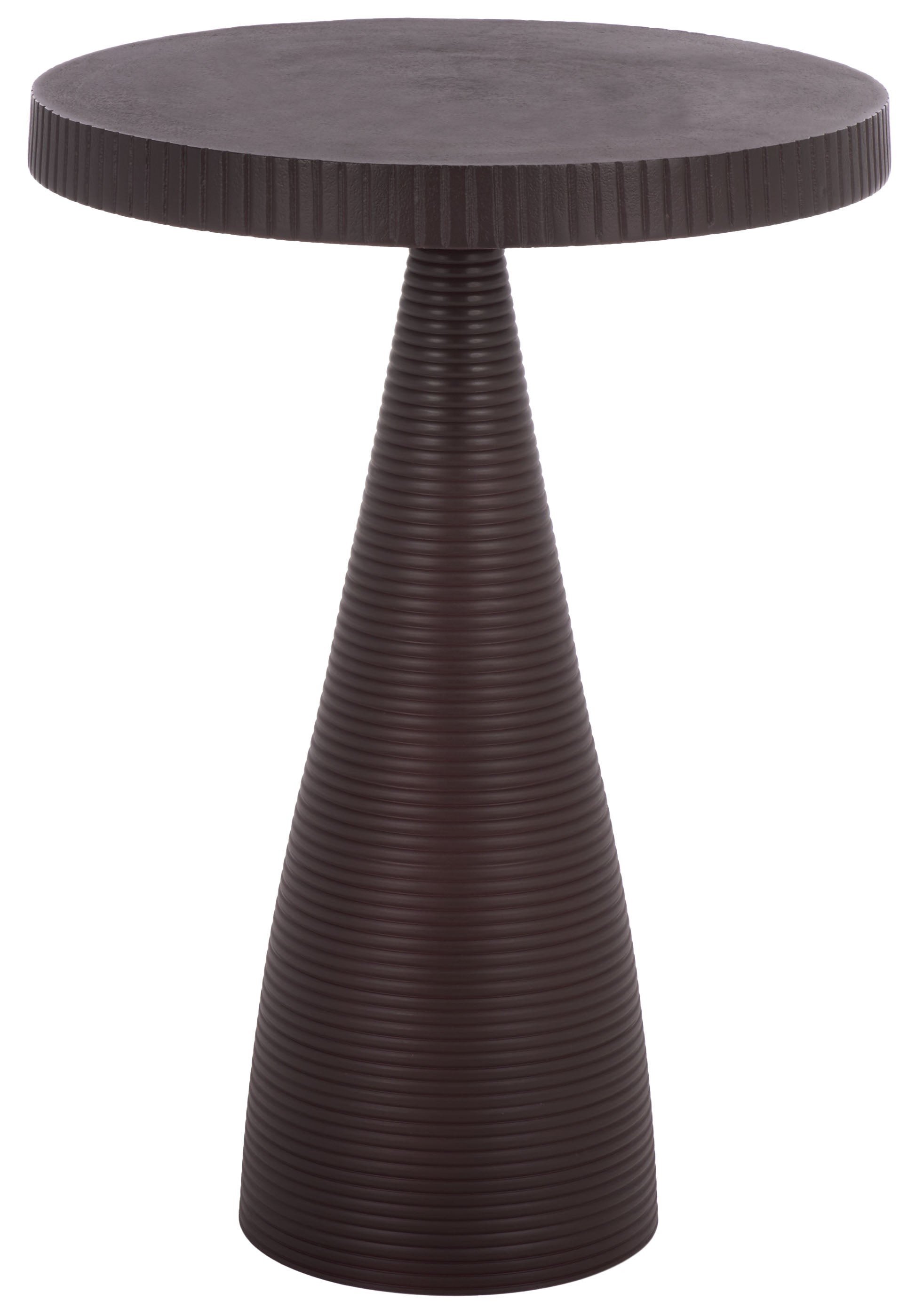 Make a contemporary style statement with our Champeaux accent table. The refined yet bold silhouette of the table instantly captures the eye. Crafted beautifully in aluminum, the thick round tabletop, and conical pedestal is enlivened with intricate and eye-catching textures. Perfectly finished off with a lacquer finish, our accent table serves as a show-stopper in any corner of your home. It can serve as a sculptural pedestal to display your beloved decor items.