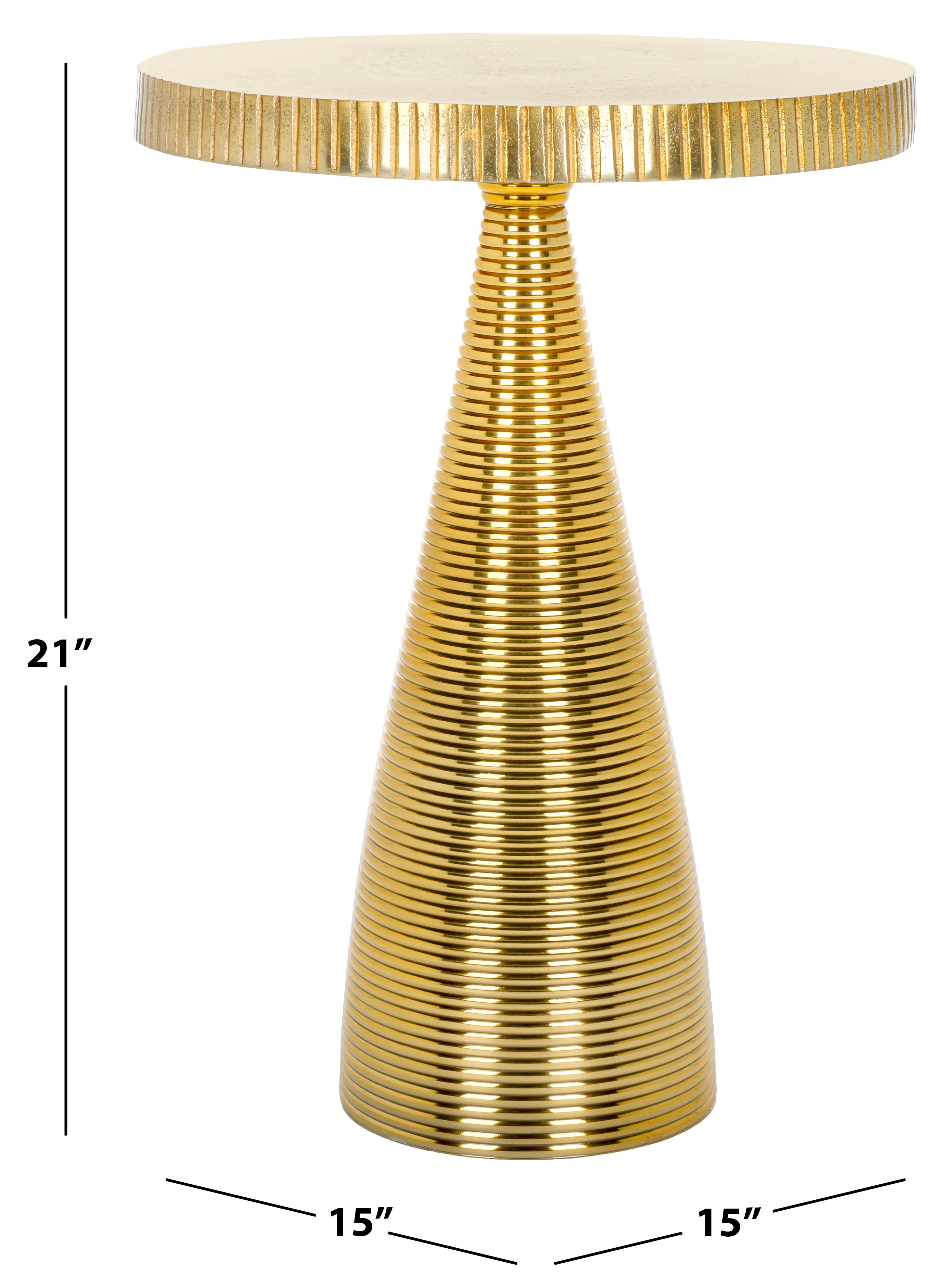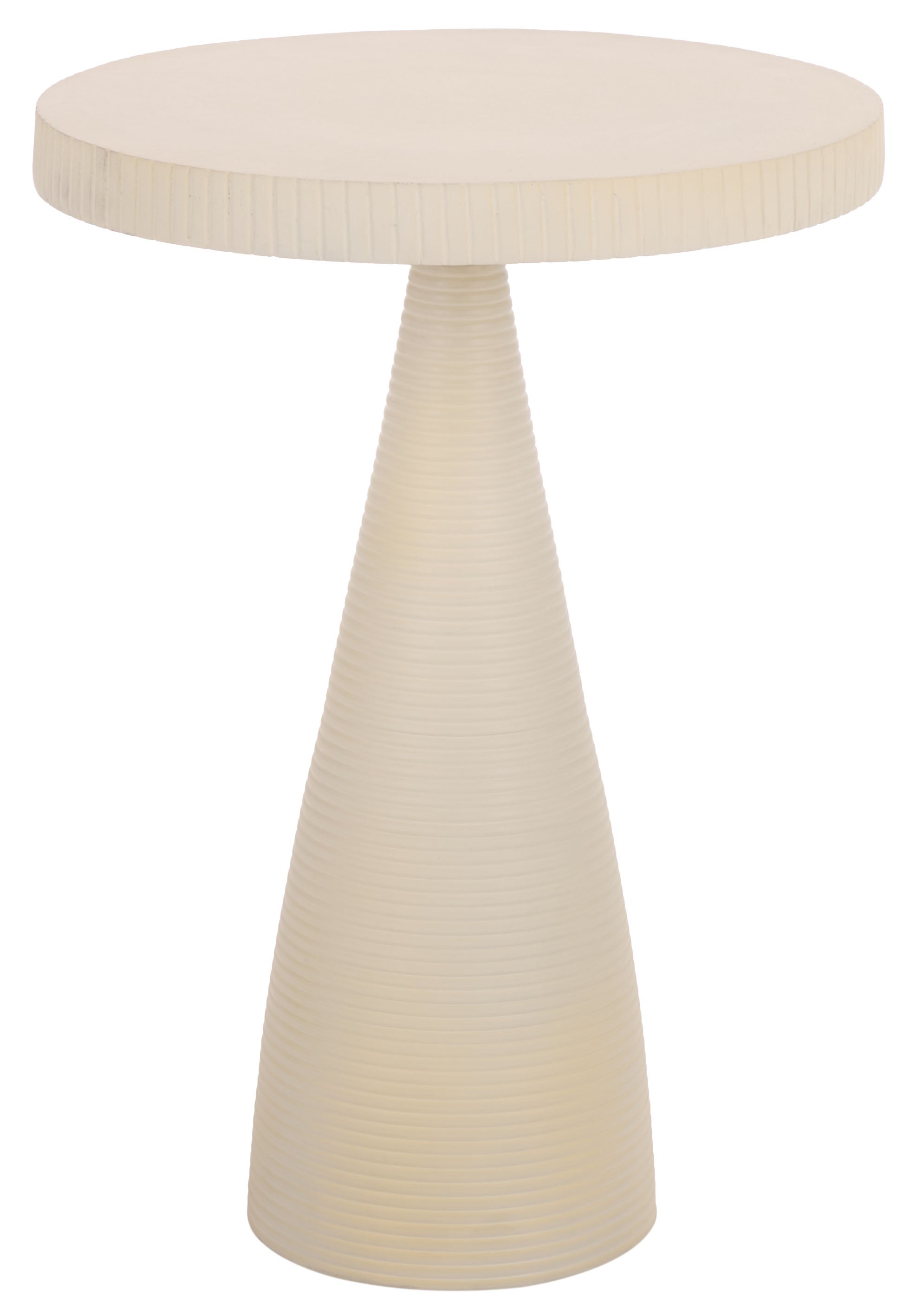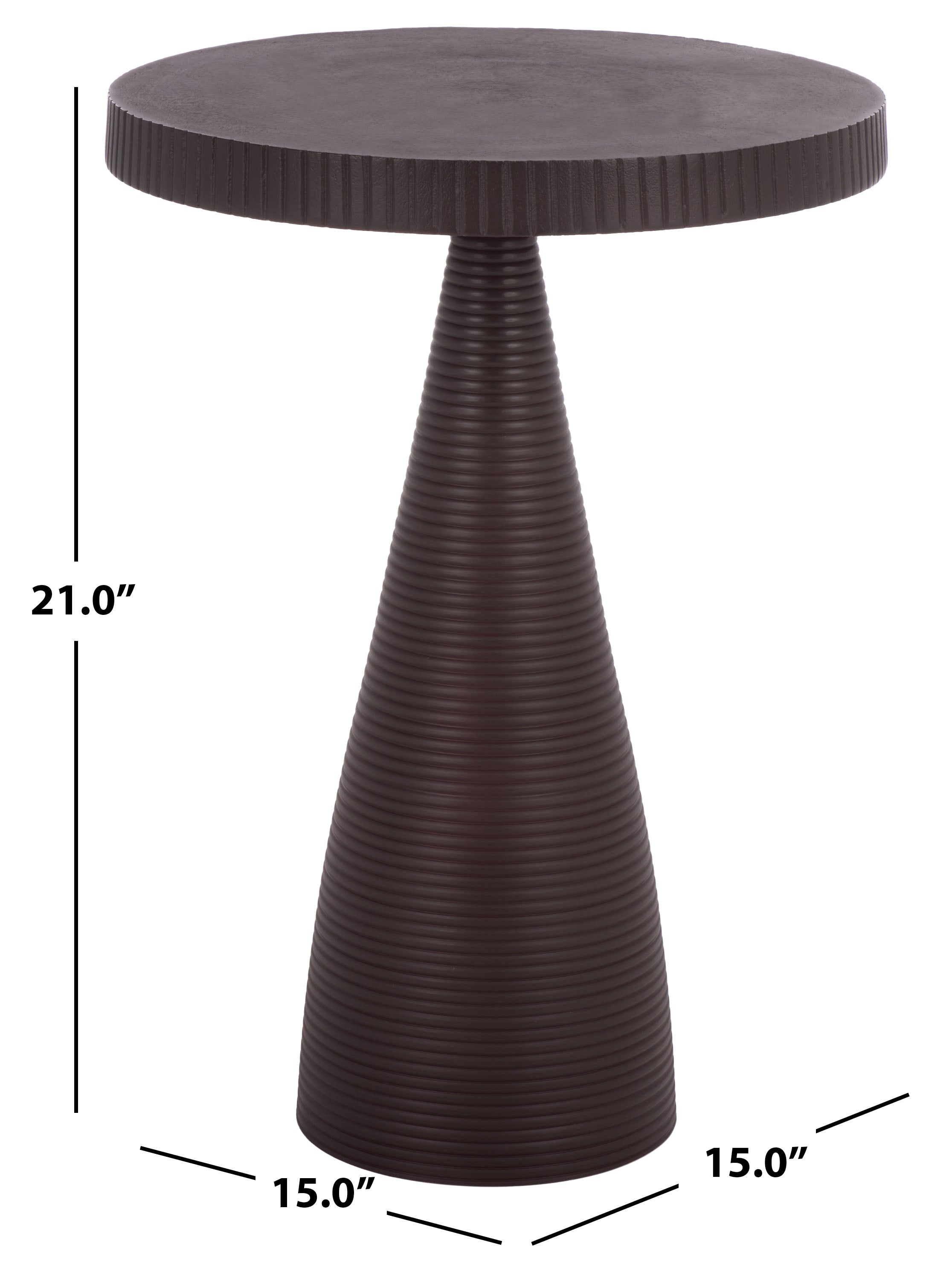 Make a contemporary style statement with our Champeaux accent table. The refined yet bold silhouette of the table instantly captures the eye. Crafted beautifully in aluminum, the thick round tabletop, and conical pedestal is enlivened with intricate and eye-catching textures. Perfectly finished off with a lacquer finish, our accent table serves as a show-stopper in any corner of your home. It can serve as a sculptural pedestal to display your beloved decor items.