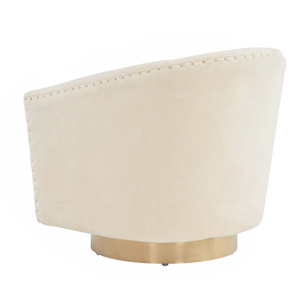 A refined blend of gentle curves and elegant details, the ivory Clara Tub Chair will add a chic touch to any contemporary decor. The unique diamond quilted back and shining gold nailhead trim makes a grand statement in the living room or home office.
