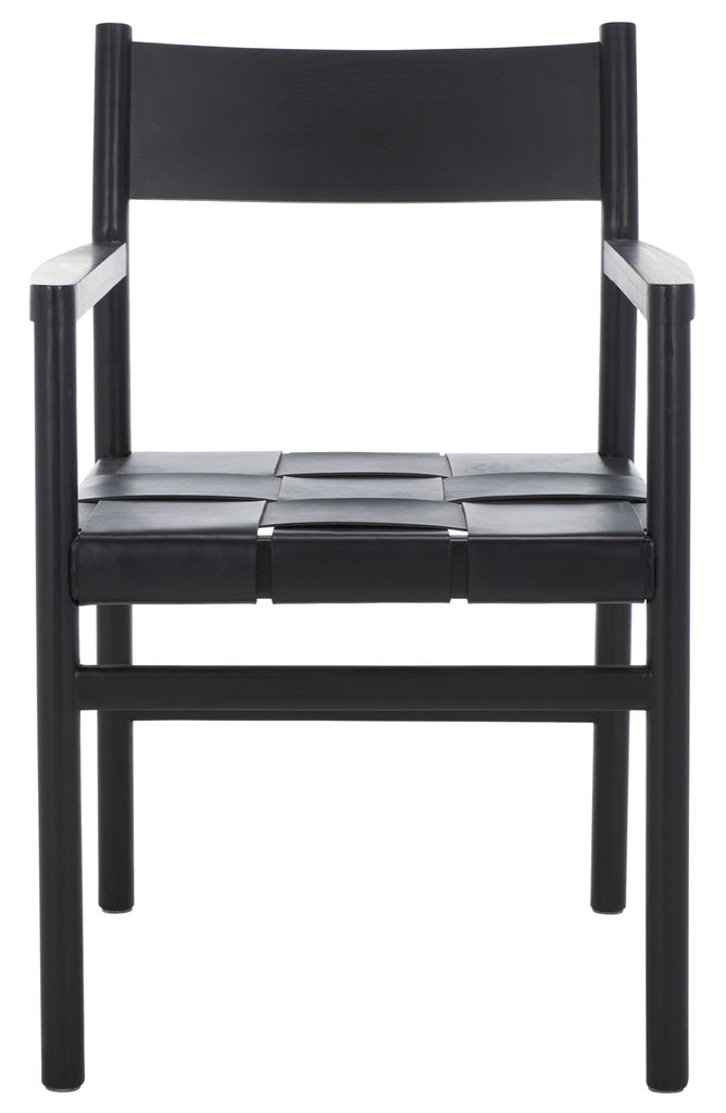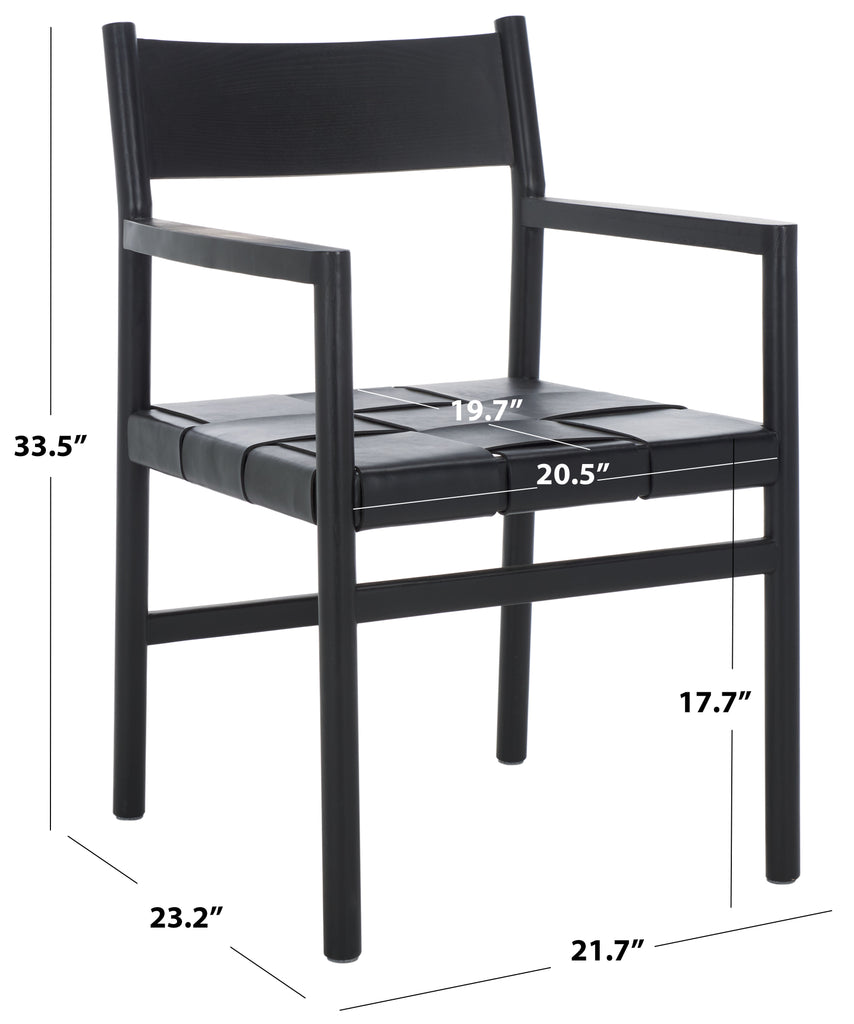 Revitalize your dining experience with our stunning Devnie Woven Leather Dining Chair Arm Chair. This elegant piece brings a sharp update to your interiors with its sophisticated black color, offering an effortless blend with any decor style. Made from solid Sungkay wood, the chair is built to embody strength and reliability. The chair is adorned with beautifully woven top grain leather, this characteristic not just enhances its aesthetics but also provides ultimate comfort. The woven design promises a touch of uniqueness to your dining space. Experience the feel and charm of this Devnie Woven Leather Chair once and you shall fall in love with the comfort it has to offer. Embrace this modern luxury today!