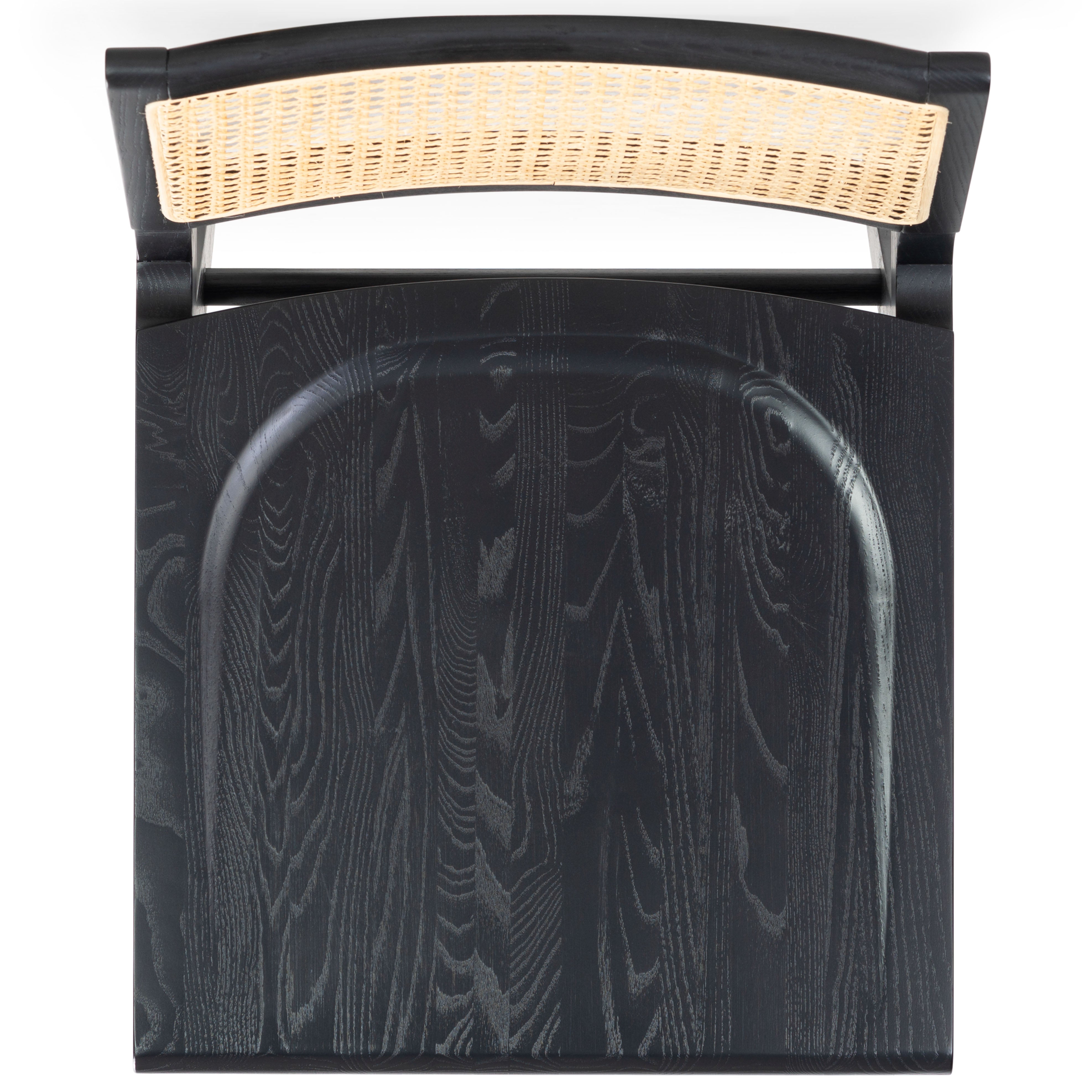 Enliven your home with the modern and breezy charm of our Hattie dining chair. The clean and crisp geometry of the chair meets the warmth of a natural cane to attain a relaxed and sophisticated presence. A stunning French cane weave upon the backrest elevates the airy appeal and elegance of our chair. Its cane back is beautifully grounded with a black ash wood frame and angular legs. Exuding a dose of elegance, our dining chair remains an easy and charming fit for your kitchen, dining, or living area.
