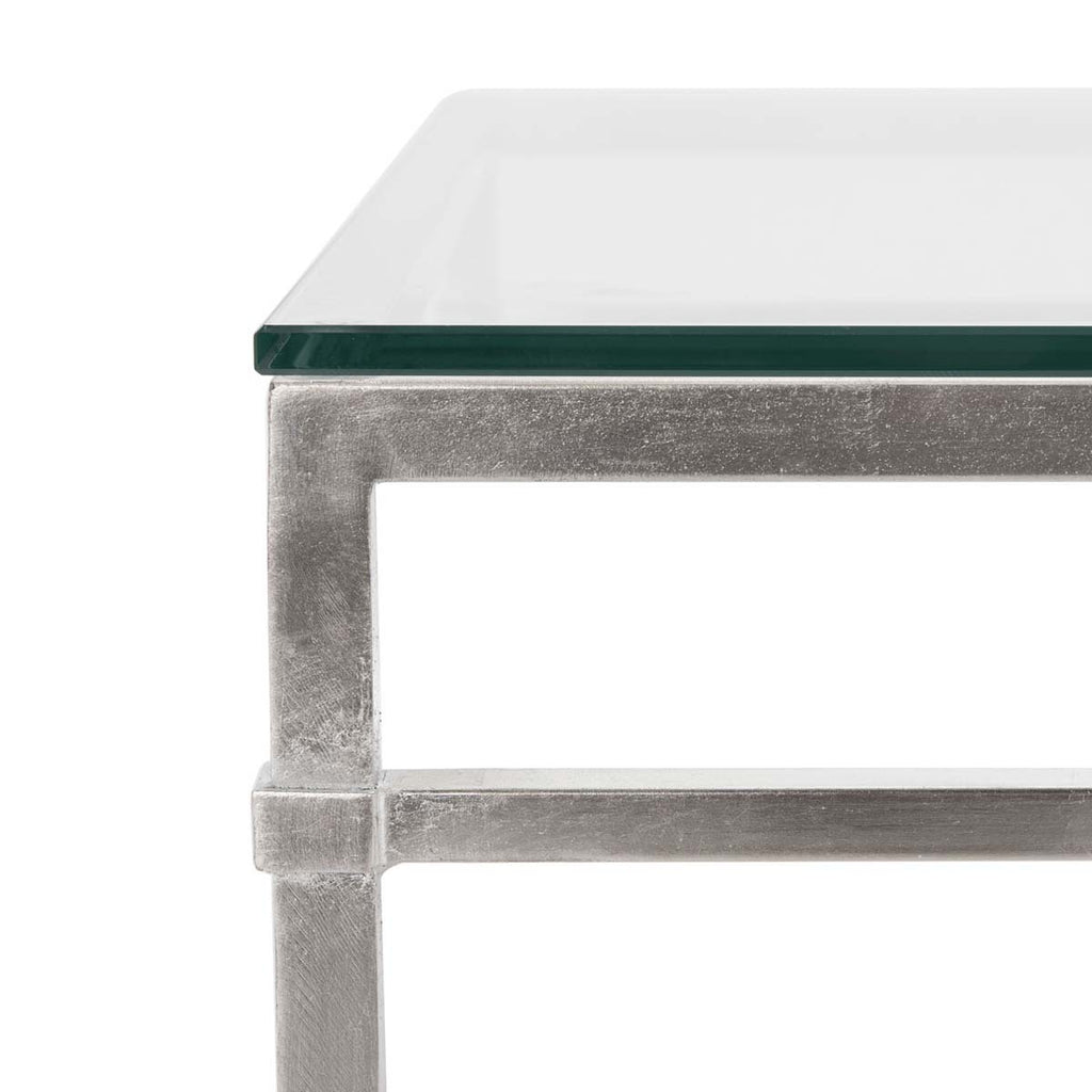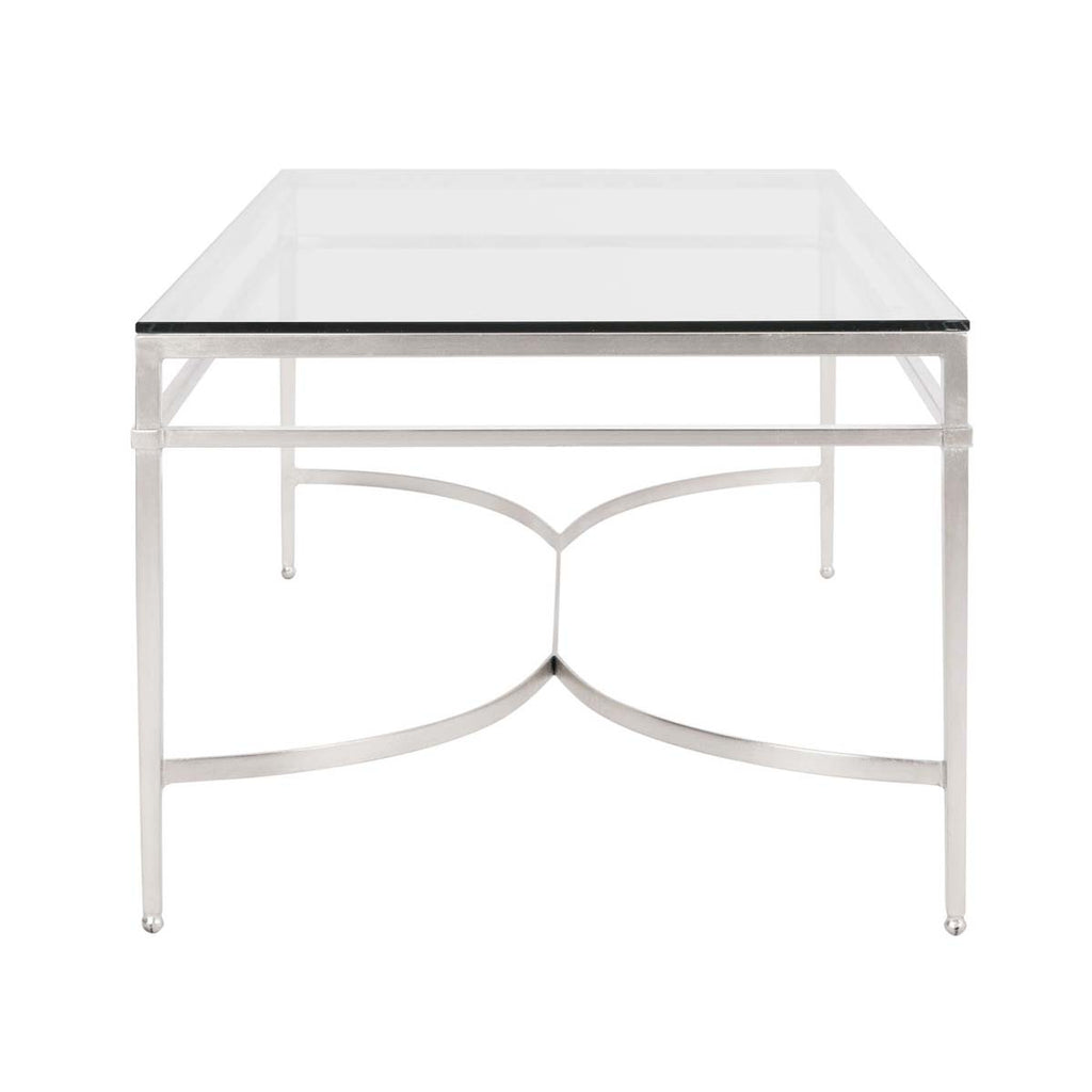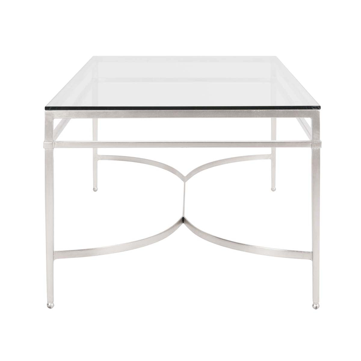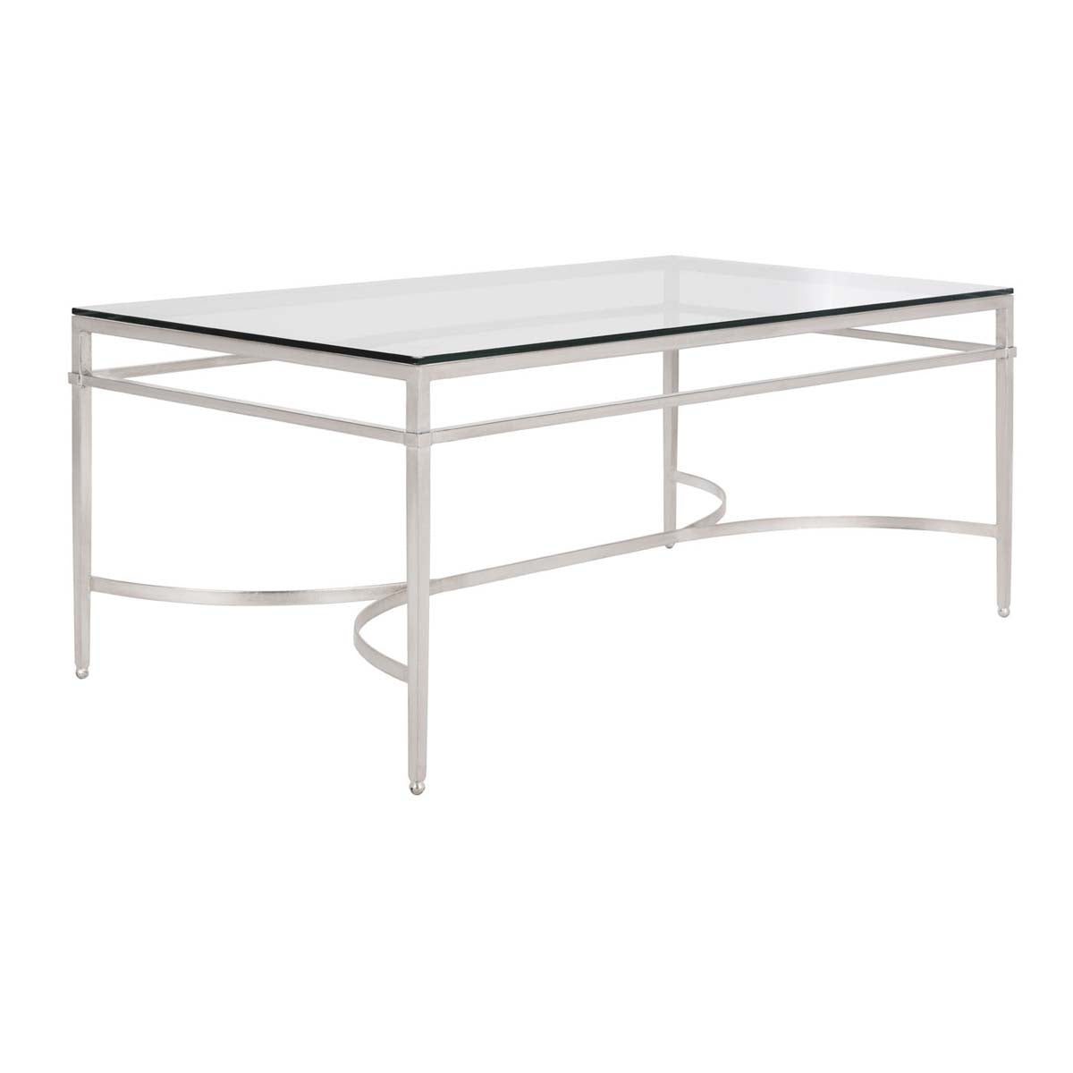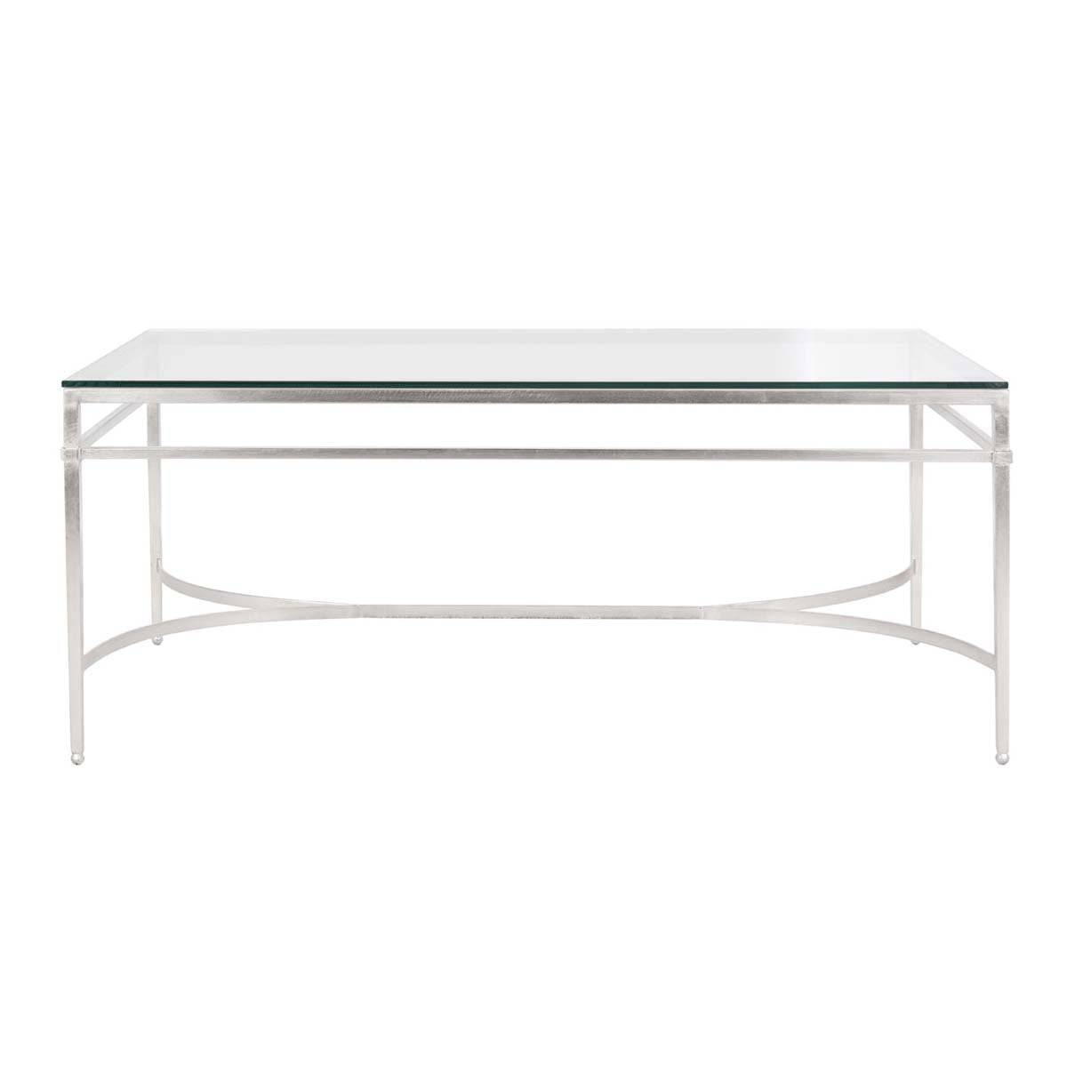 A stately take on airy ambiance, this Abelard Cocktail Table is a masterclass in metalwork. Abelard's antique silver gilt finish lends its open frame an heirloom aura, while the clear glass top perfectly holds drinks, hors d'oeuvres, or treasured display pieces.
