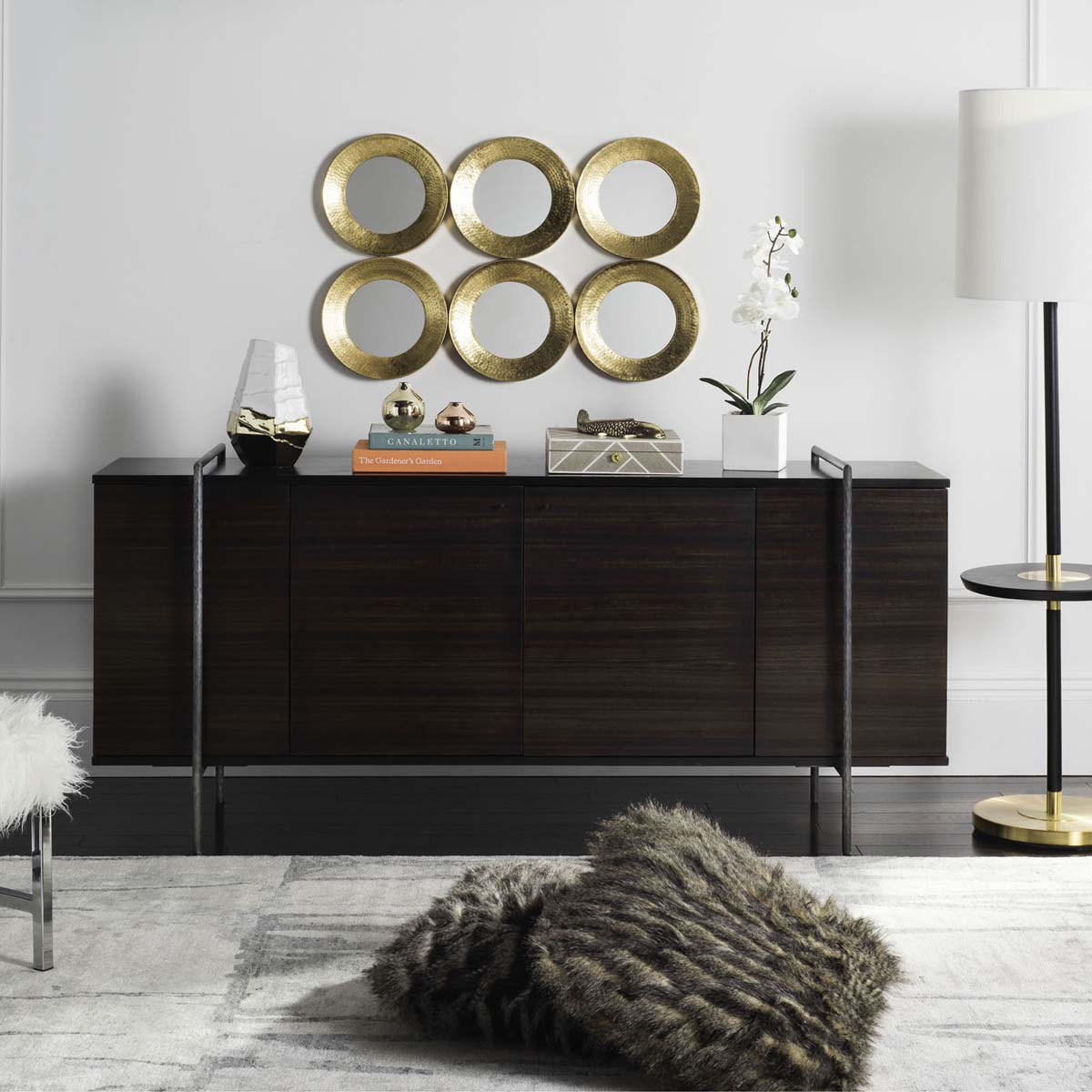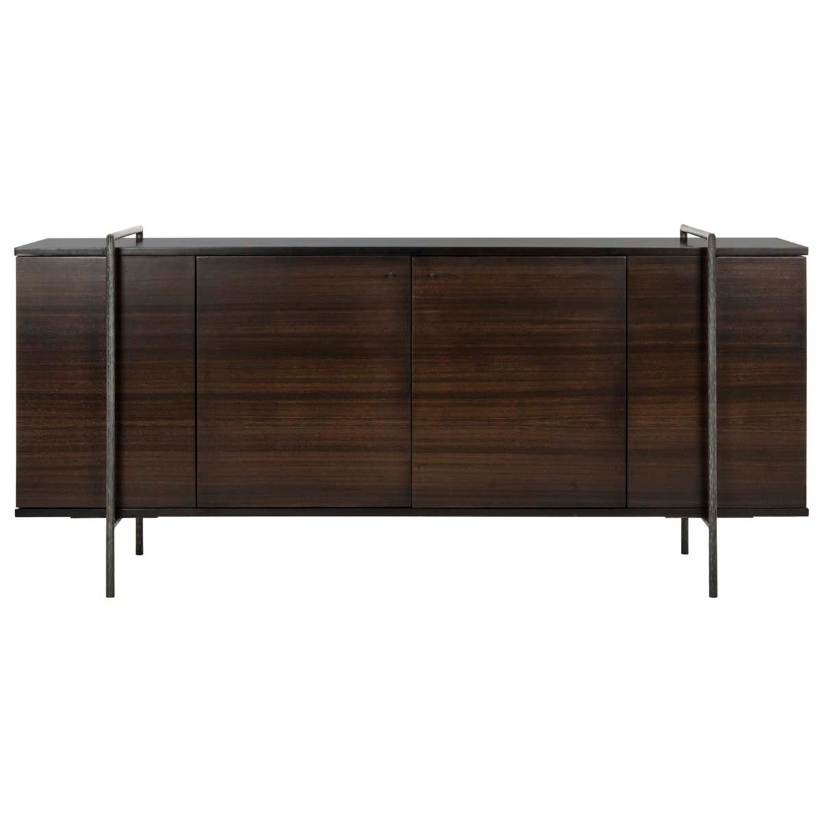 A contemporary heirloom, the Baxton Wood Sideboard is a preferred designer investment. Fitted with finely appointed storage, its luxe smoked eucalyptus veneer seamlessly adorns is sleek bodice. Its black nickel steel detail lends the cache of modern sculpture.