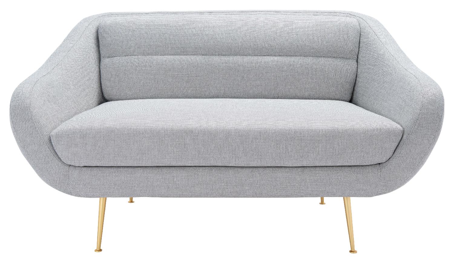 A glamorous icon of Mid Century chic, this Belladonna Loveseat gives retro style a contemporary couture update. Belladonna's captivating curves and gold finished legs provide any decor a sense of depth and motion, while light grey linen blend upholstery is luxuriously comfortable.