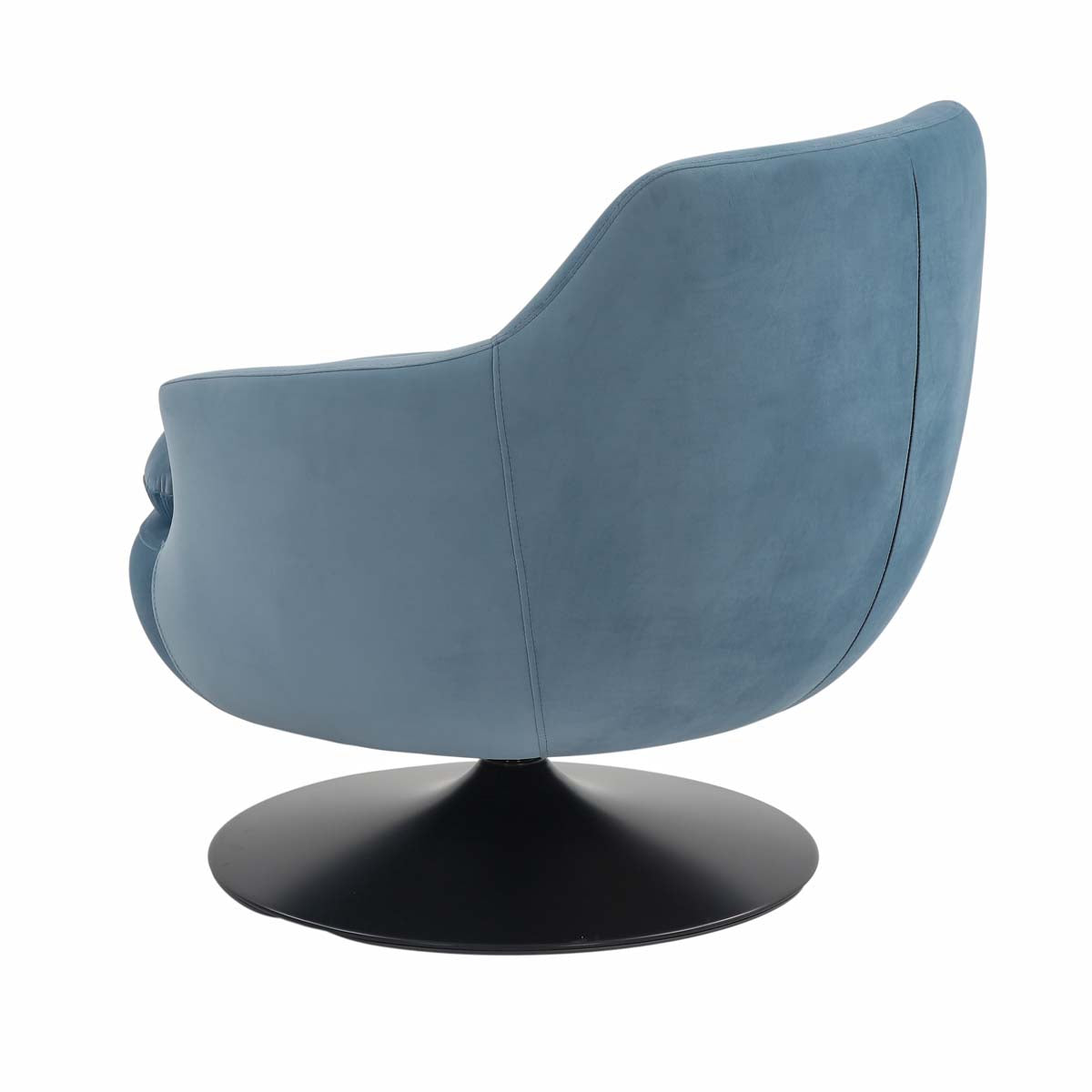 The epitome of effortless sophistication, this Citrine Swivel Chair lends a touch of decorative artistry and smooth textures to room decor. Citrine's shimmering light blue velvet accentuates its flowing silhouette, creating a captivating focal point in the living room or master suite.