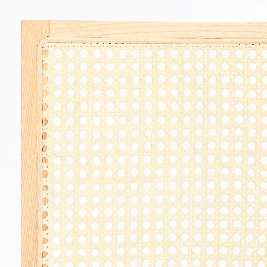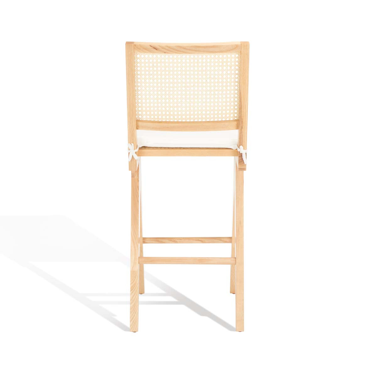 Give your bar a charming and relaxed upgrade with our Colette bar stool. Our sleek and clean-lined stool receives a relaxed upgrade with rattan mesh upon the back. Expertly crafted with solid ash wood, the stool is elevated with a natural finish. It features a generously padded white boxy cushion to deliver supreme comfort. Light, airy, and refined, our bar stool brings a dose of style and comfort to your bar or high dining area.