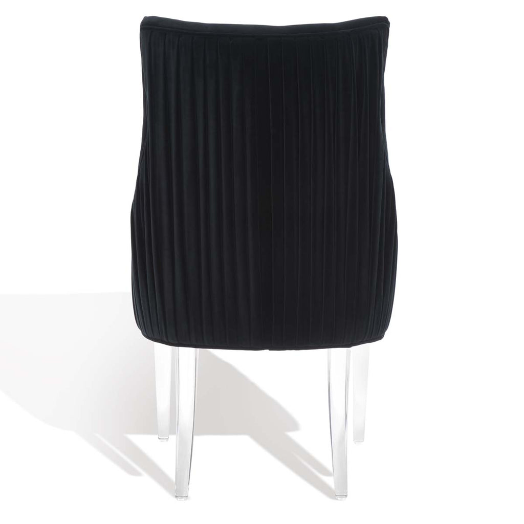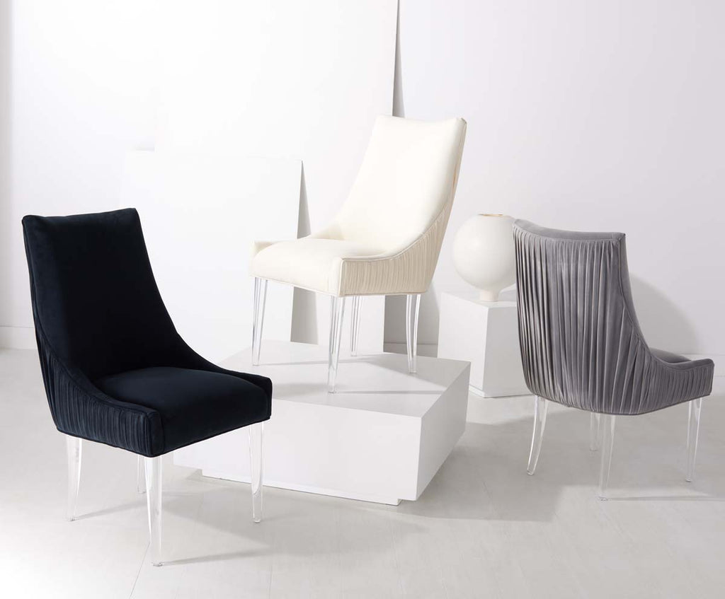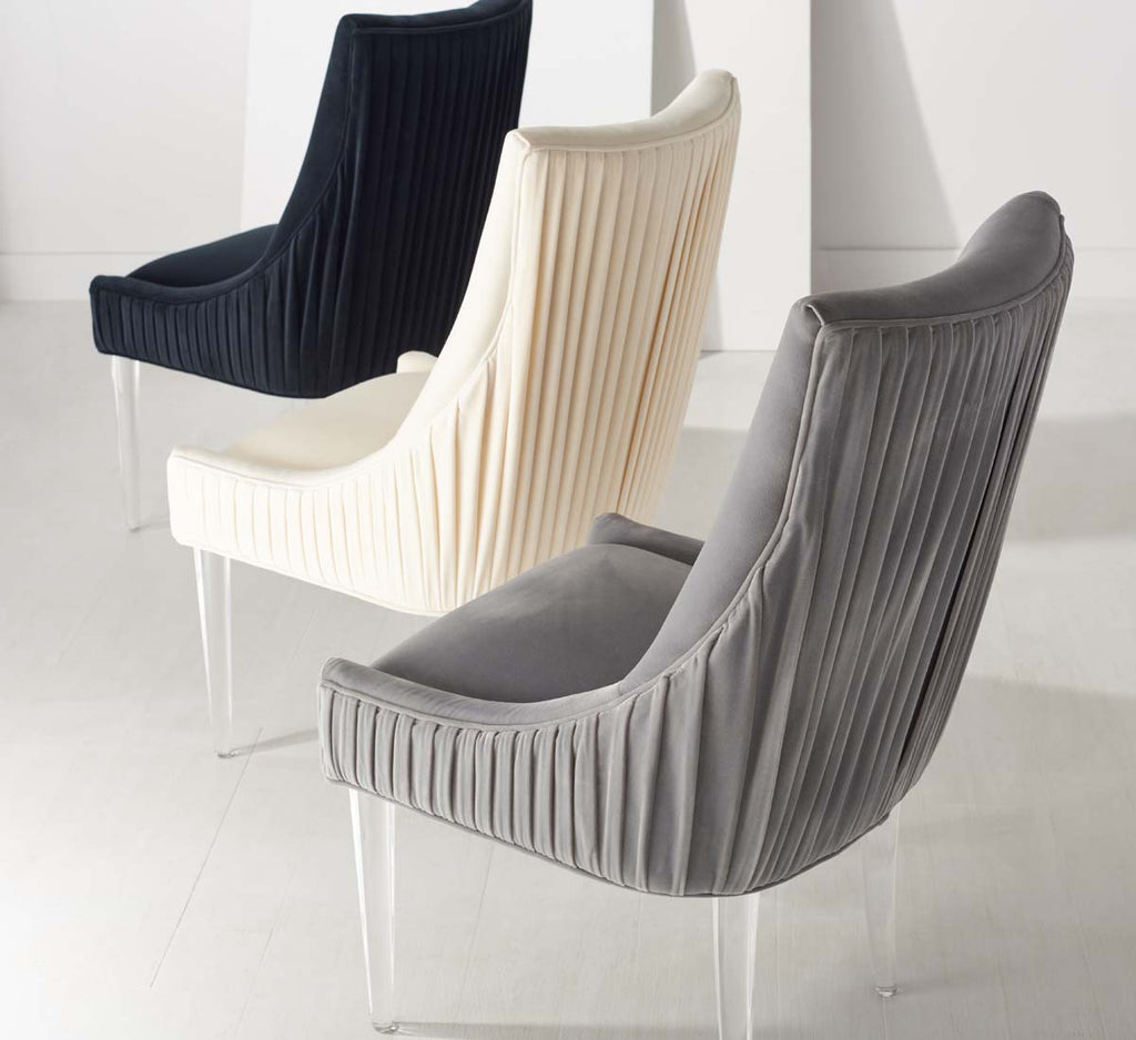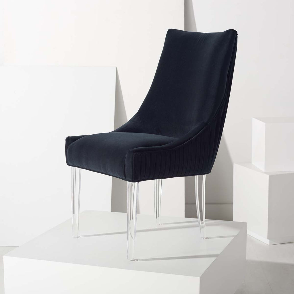 Feel the embrace of modern luxury with this De Luca Dining Chair. Sleek acrylic legs and knife-edge pleating update the classic silhouette with contemporary glamour, and plush black velvet ensures delightful dining.