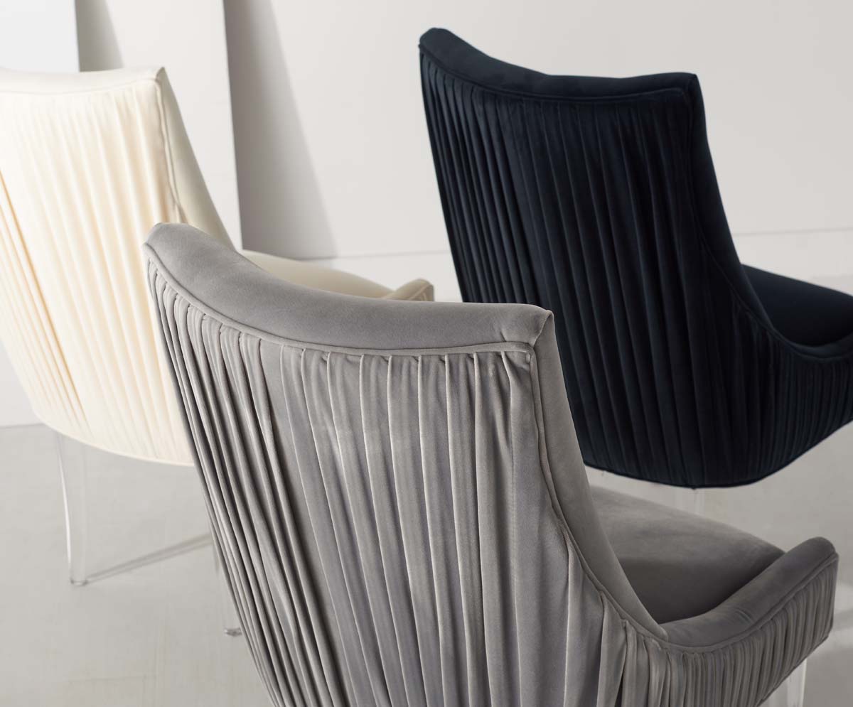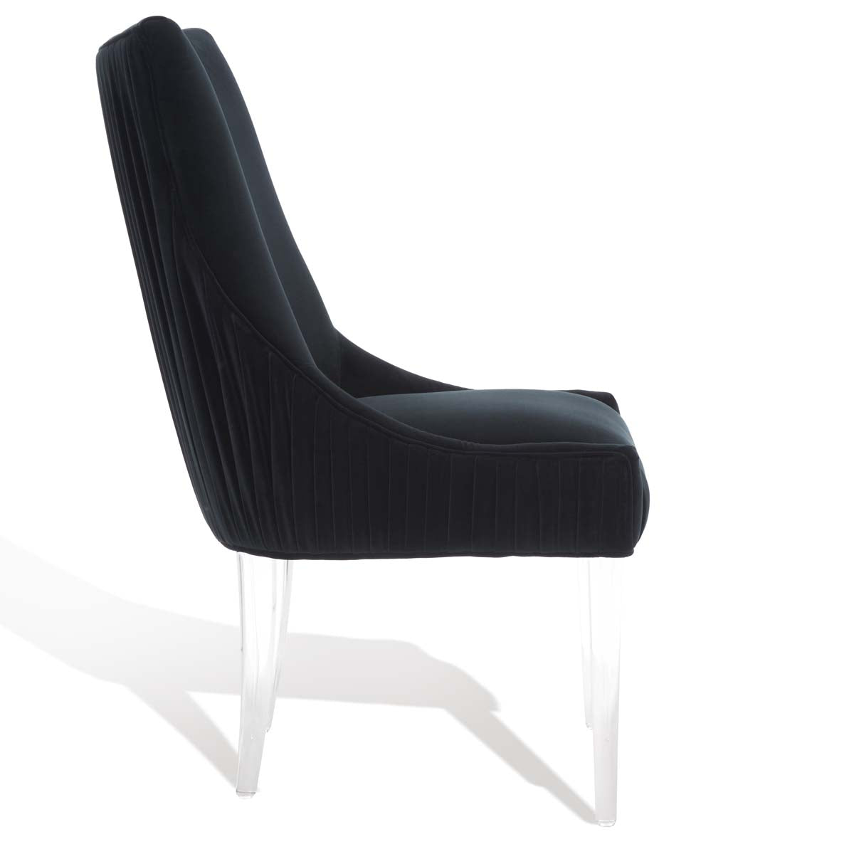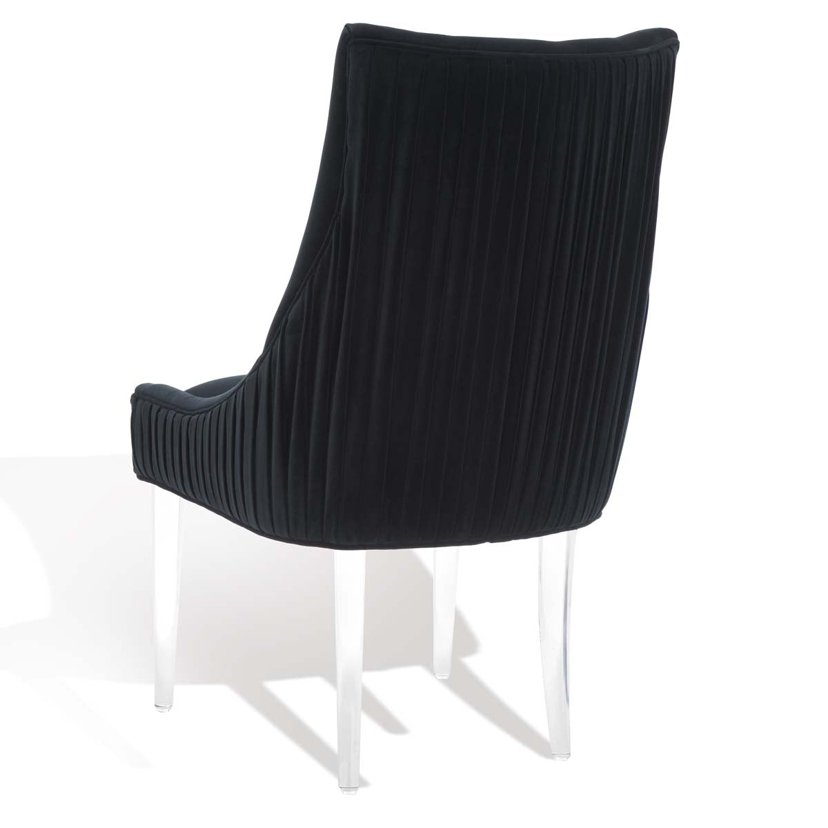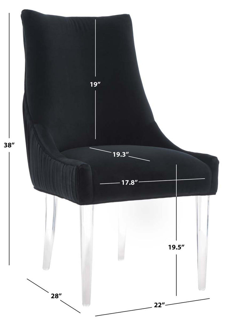 Feel the embrace of modern luxury with this De Luca Dining Chair. Sleek acrylic legs and knife-edge pleating update the classic silhouette with contemporary glamour, and plush black velvet ensures delightful dining.