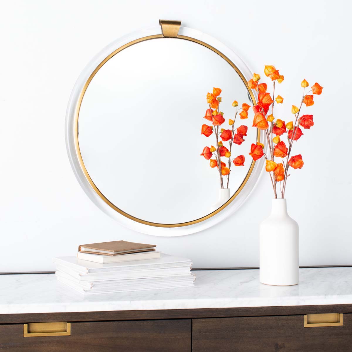 Designed to reflect those treasures which matter most, this contemporary acrylic mirror makes a grand statement with its elegant simplicity. A modern iteration of the classic circular style, its brass finish adds warmth to any modern living room or hall.