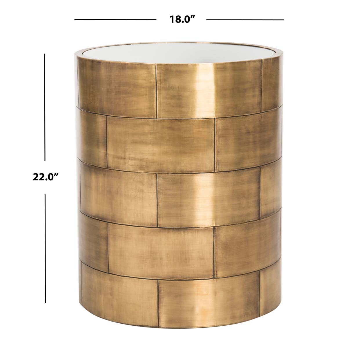 Milans blend of modern and ancient architecture inspired this contemporary round side table. A pairing of substance and style, its bold marble construction features a warm antique brass finish that makes a sophisticated statement in any living room.