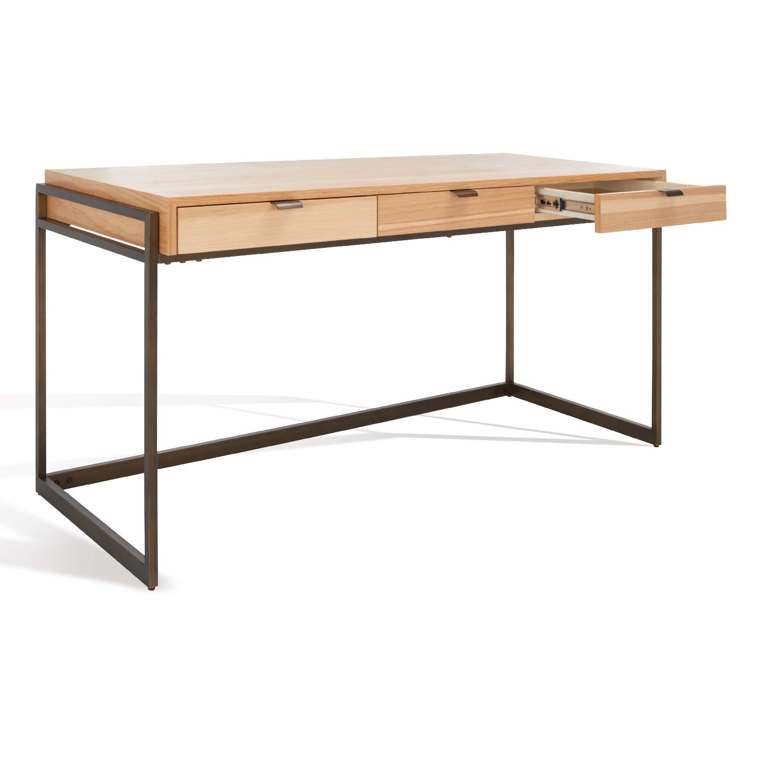 Safavieh Couture Genevieve 3-Drawer Writing Desk - Walnut / Antique Brass