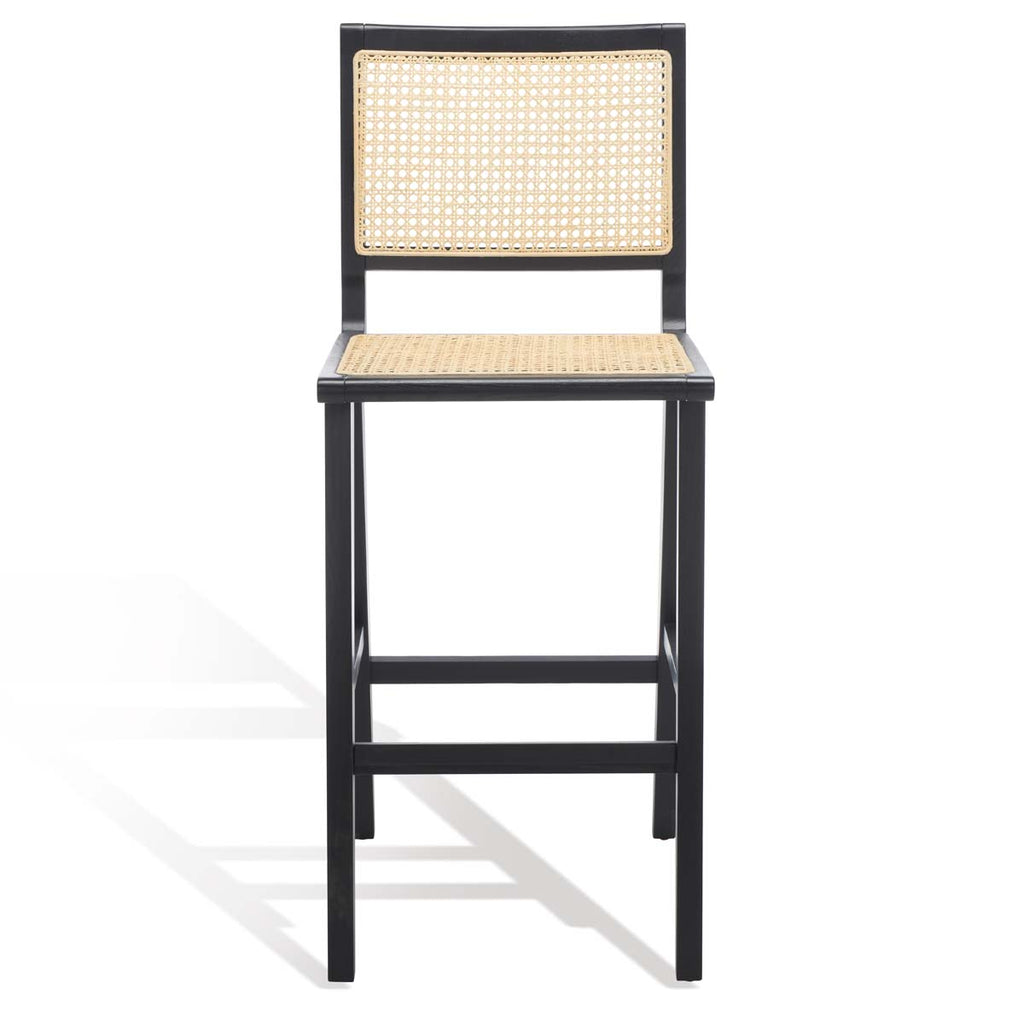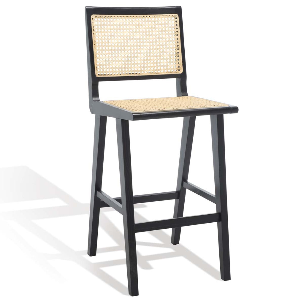 Safavieh Couture Hattie French Cane Barstool - Black/Natural