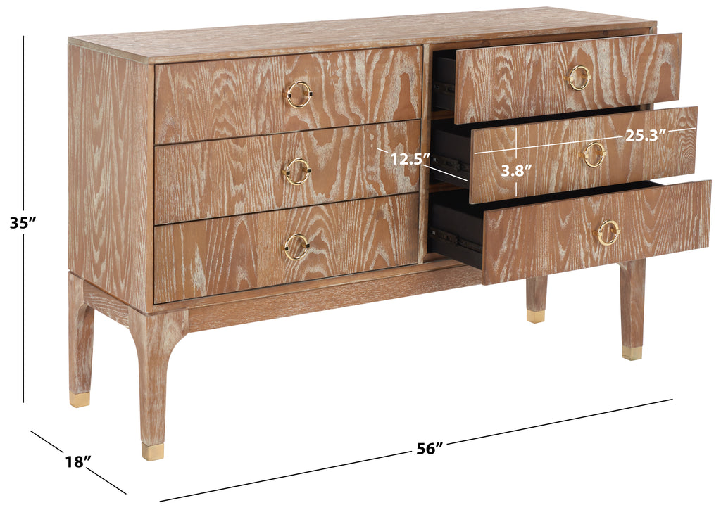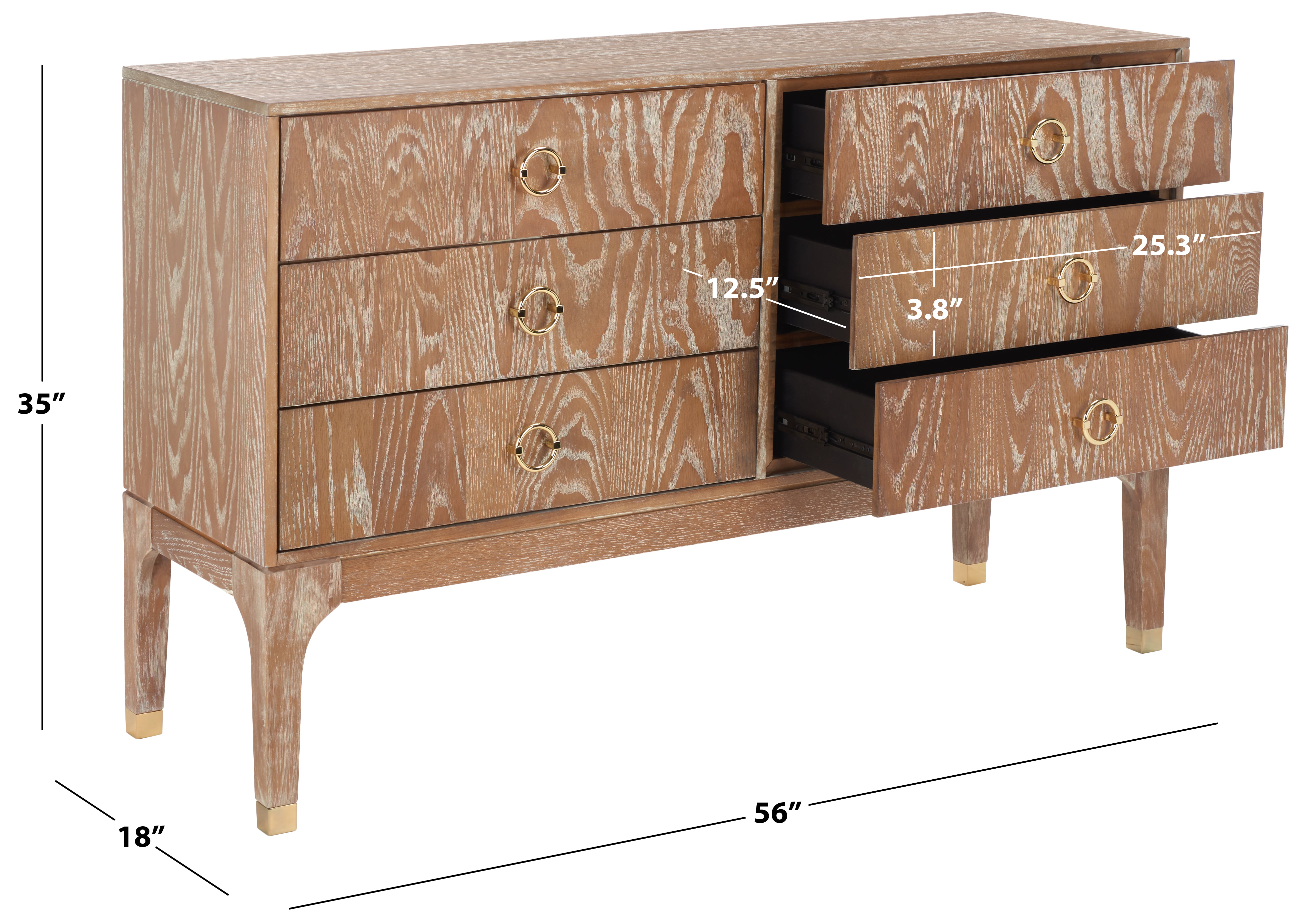 Safavieh Couture Lorna 6 Drawer Contemporary Dresser - Rustic Oak