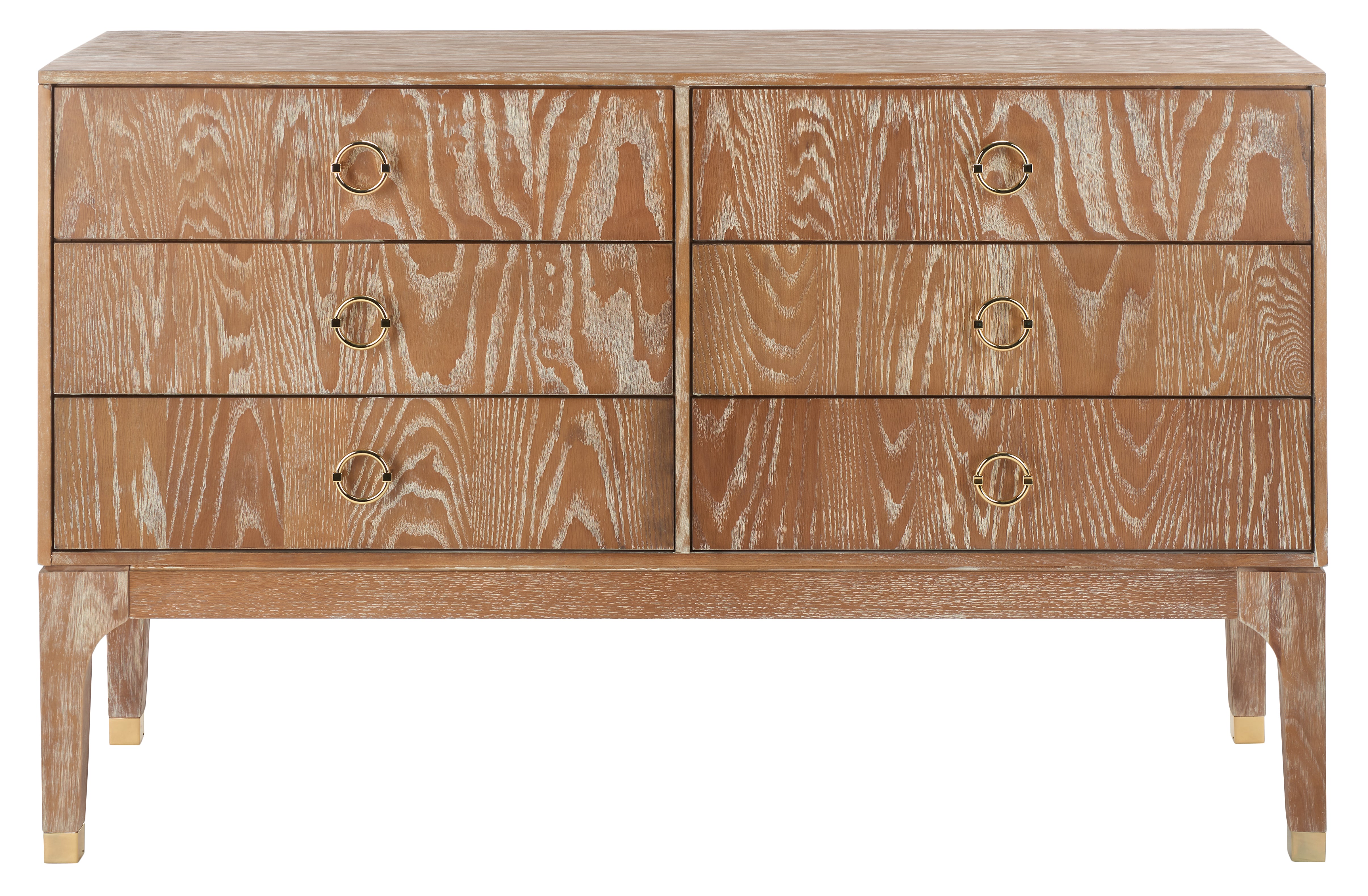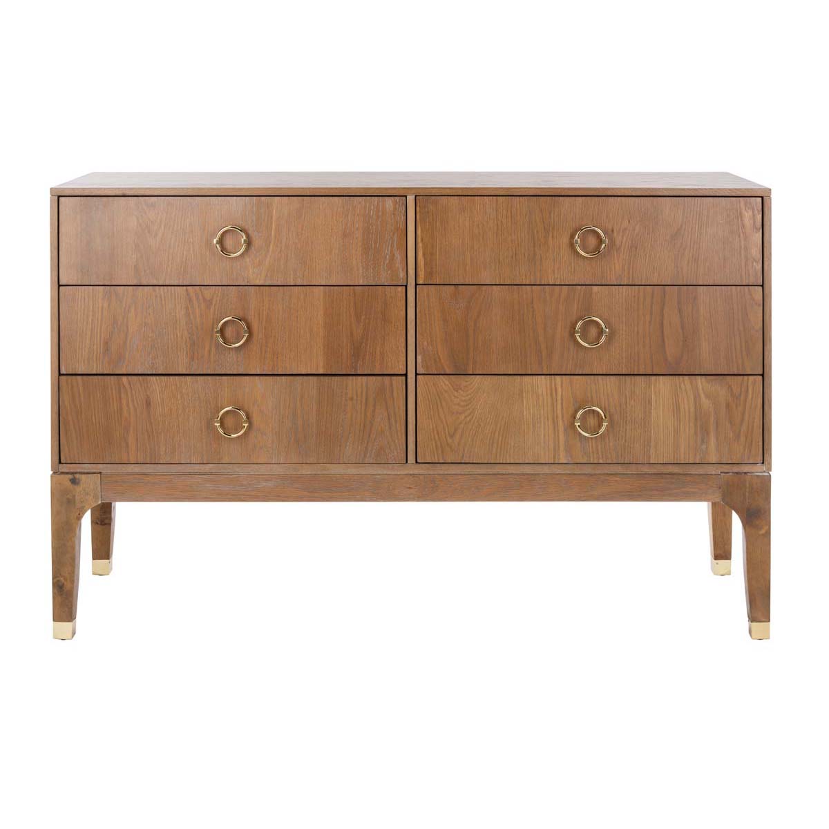 Elegant and refined, this contemporary dresser brings style and substance to any interior. Designed with a blend of clean lines, chic hardware and a timeless rustic oak finish, its ample six drawers add storage to any chic bedroom.