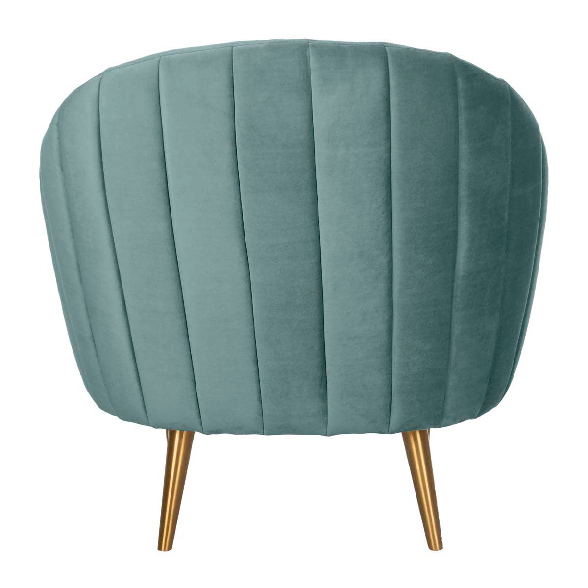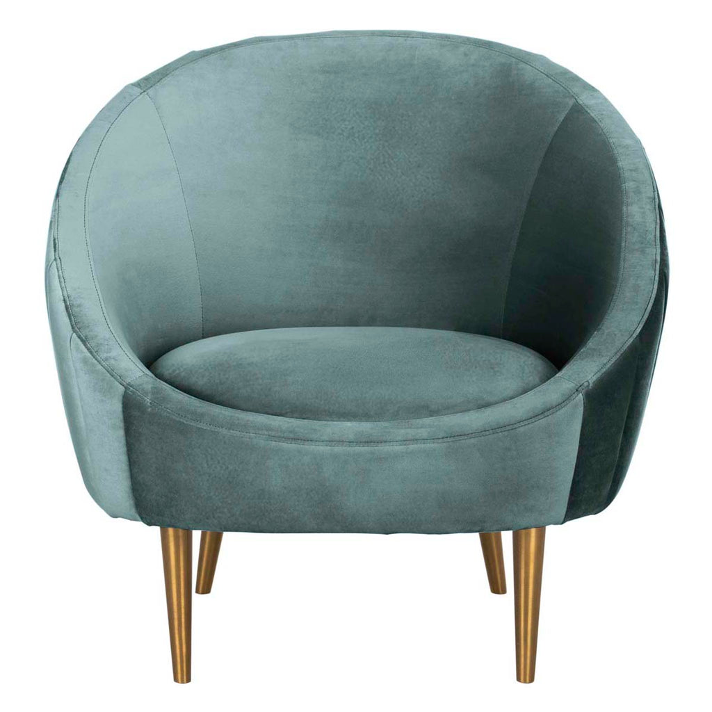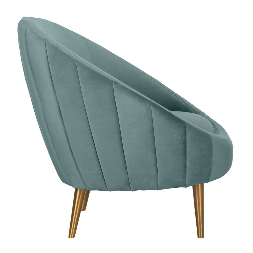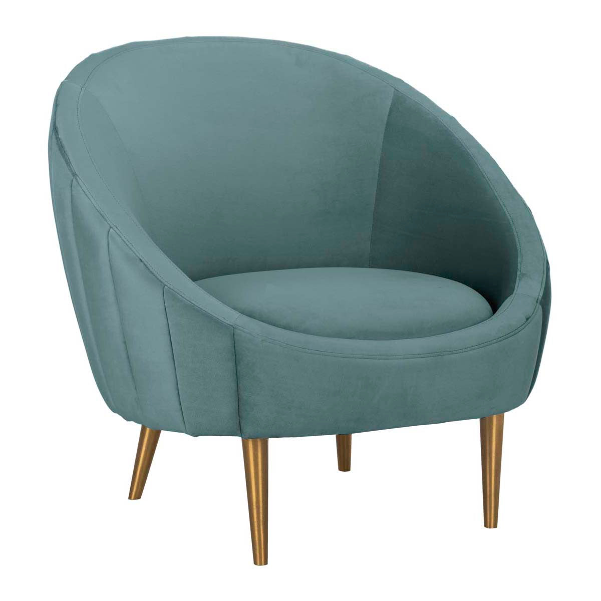 A modern update of a classic, the Razia Tub Chair is brimming with sophistication. Artfully crafted in smooth, sea foam velvet and shimmering gold legs, this chair makes an elegant statement in any living room.