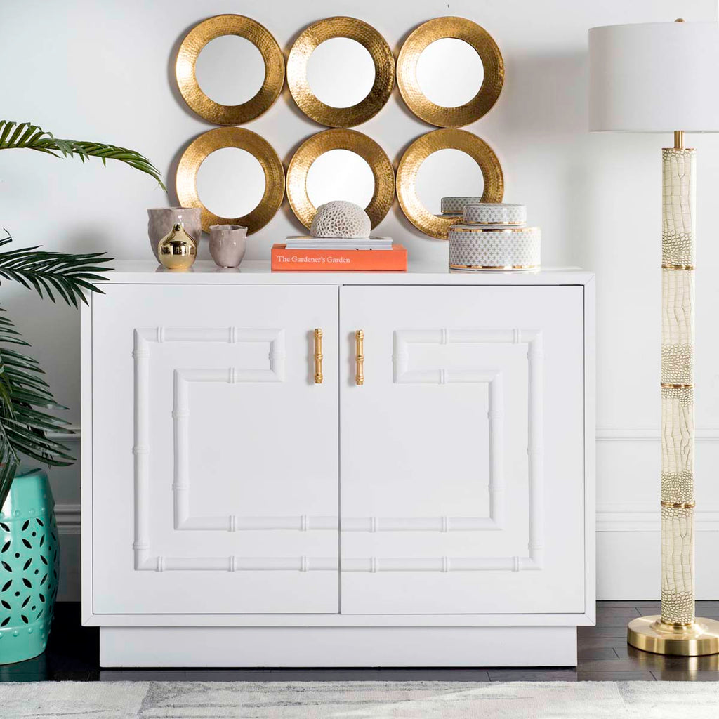 Safavieh Couture Ruben Lacquer Bamboo Cabinet - White Lacquer