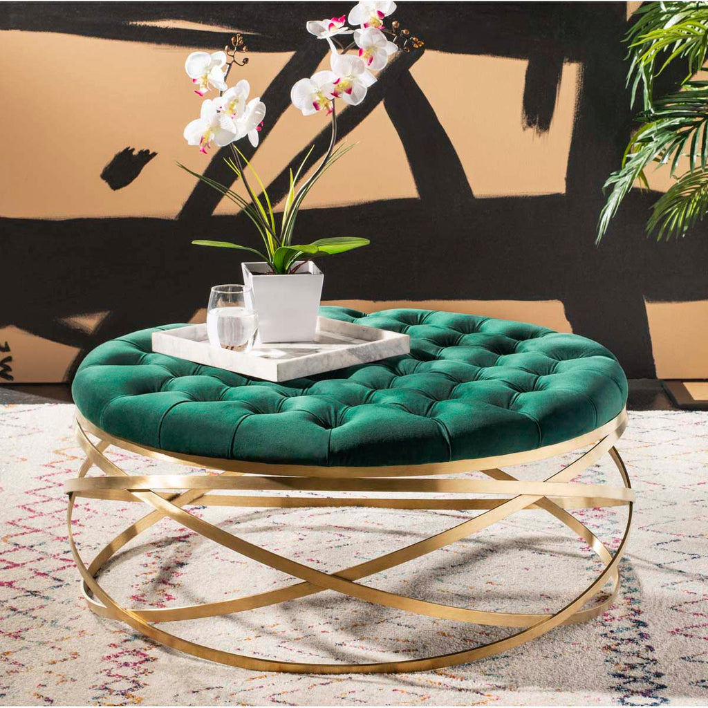 Safavieh Couture Rumi Tufted Velvet Ottoman - Emerald