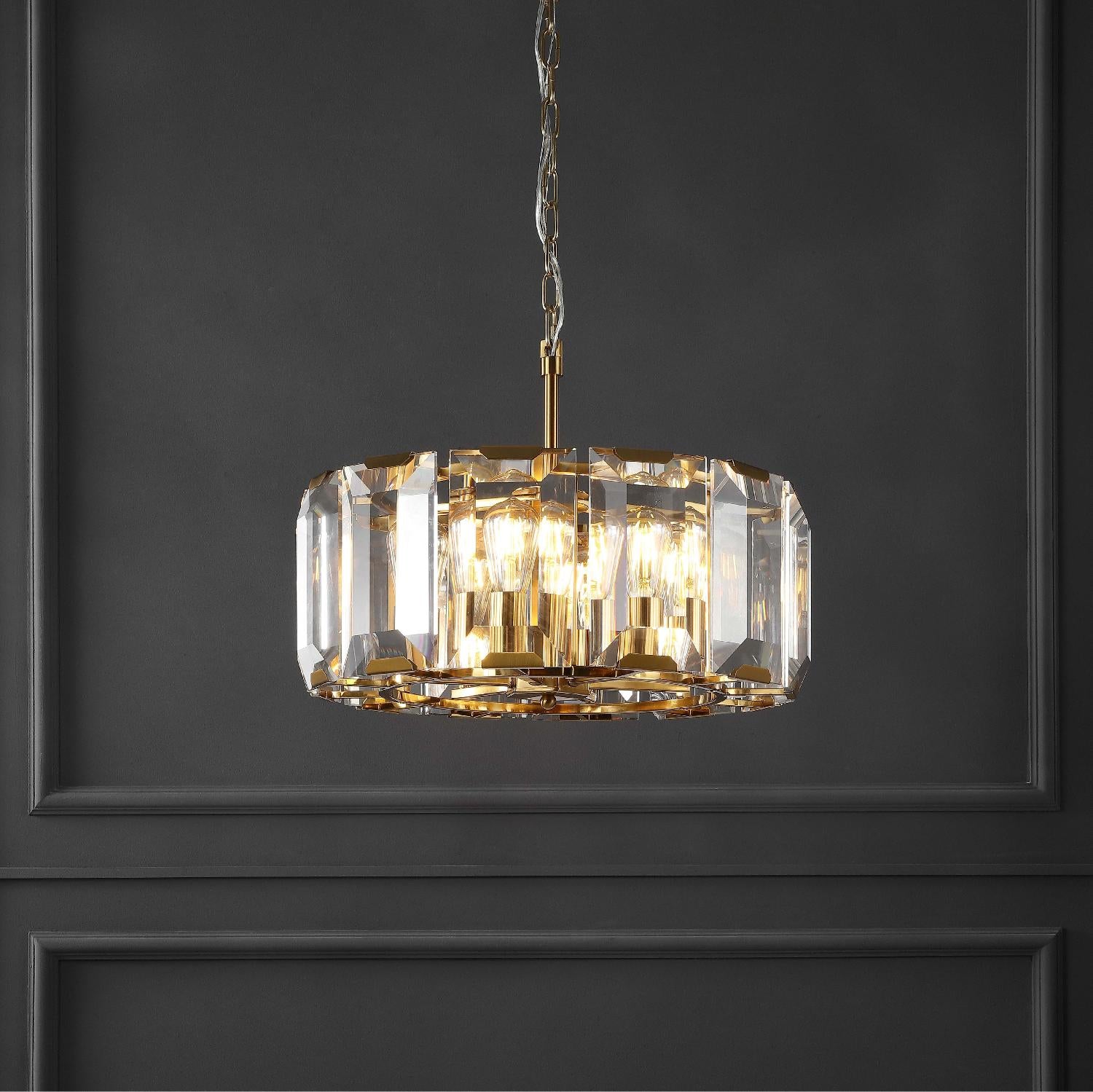 Lavishly styled after emerald-cut gemstones, this Symone Chandelier instantly inspires an air of decadence in any room. Unapologetic yet sophisticated, Symone’s faceted glass beautifully sparkles against its gold frame when lit, casting a brilliant shine over your décor.