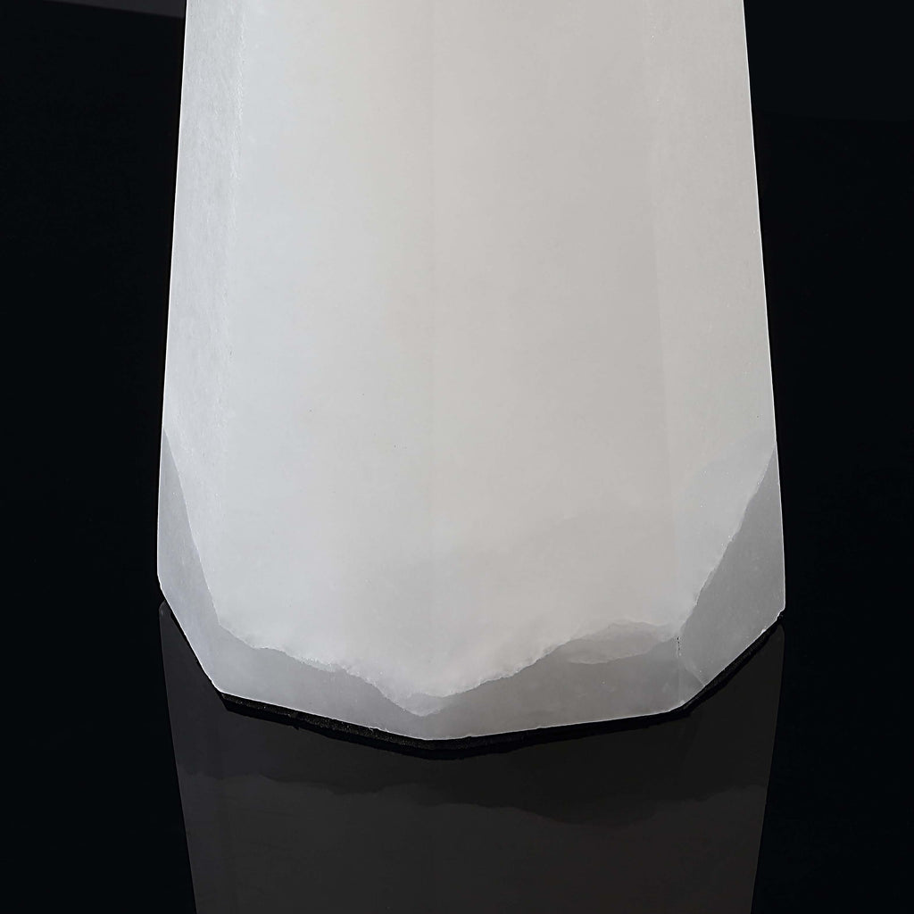 Give your décor the final finesse it craves with this stellar Toto Table Lamp. A penthouse favorite, Toto’s faceted conic silhouette in hand-sculpted white alabaster surges with unmistakable glamour, further enhanced by its artistically asymmetrical gold metal detail.