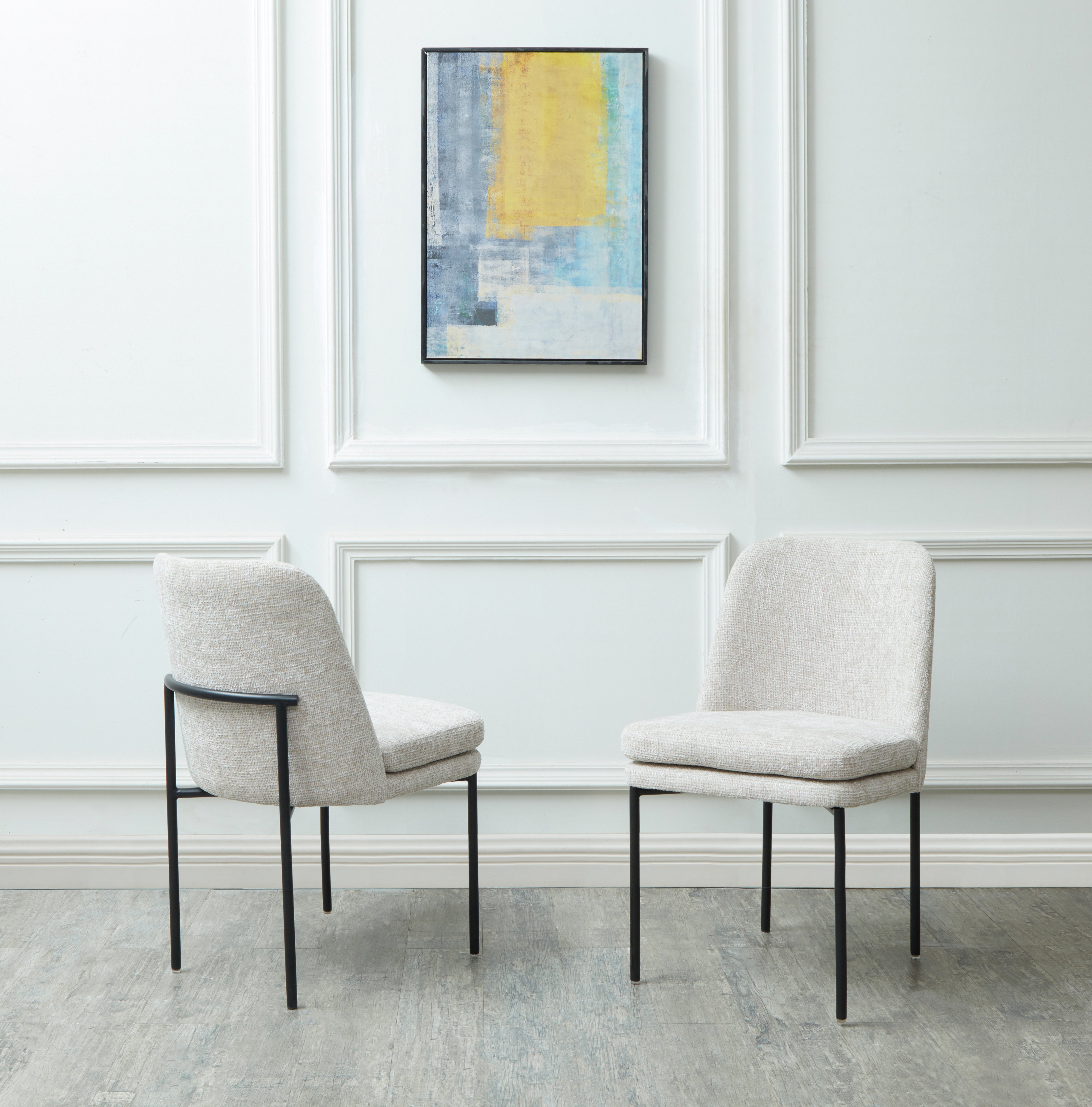 Transform your dining space with our Tamarie Chenille Dining Chairs. Crafted with a harmonious blend of wood and metal, these chairs offer a sleek and contemporary look. The fabric and foam cushion provides unwavering comfort, making every meal a delightful experience. Whether hosting a dinner party or enjoying a quiet meal, these chairs are designed to cater to your needs with style and elegance. Elevate your dining decor with a touch of sophistication and enjoy seamless integration into any setting. Perfect for those who appreciate craftsmanship and modern design in their home.