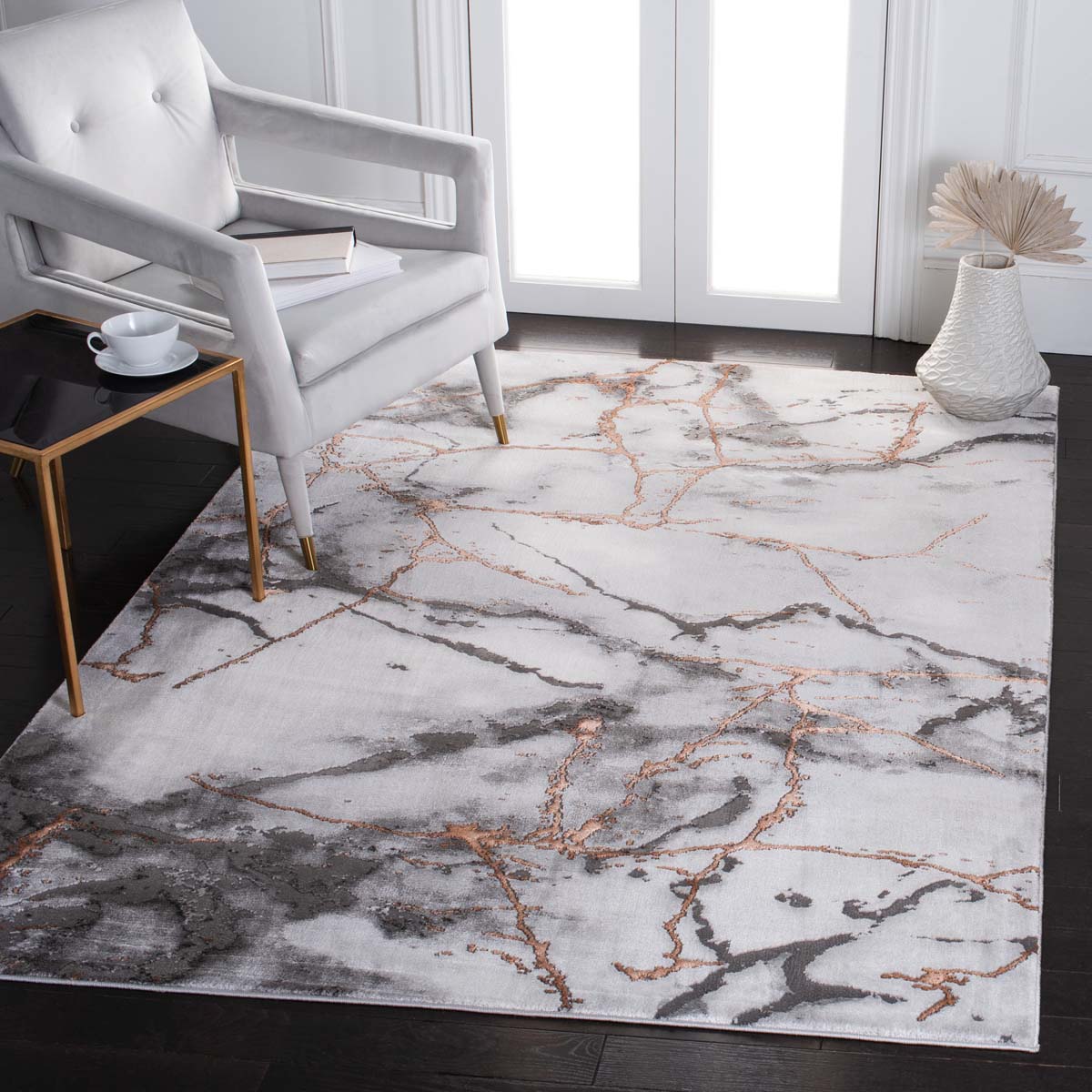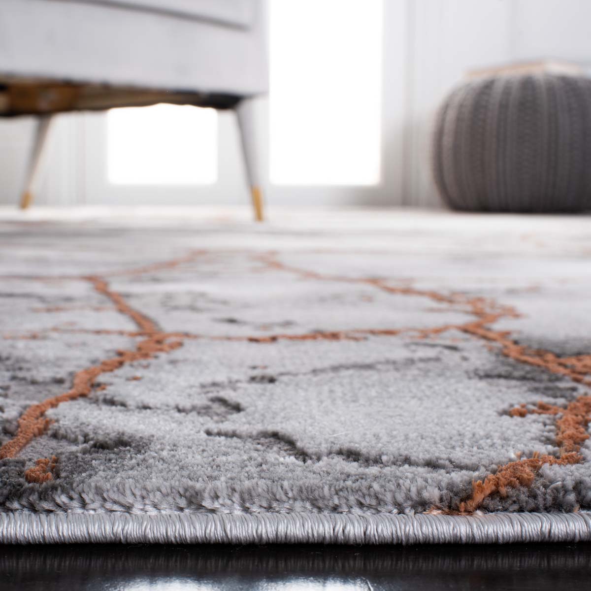 Dressed in a sophisticated palette of grey and vibrant orange, the rug's abstract pattern draws the eye, offering a modern aesthetic that won't go unnoticed. The OEKO-TEX certification stands as a testament to the rug's production adherence to high environmental and safety standards, ensuring that your home environment is both stylish and conscientiously crafted.