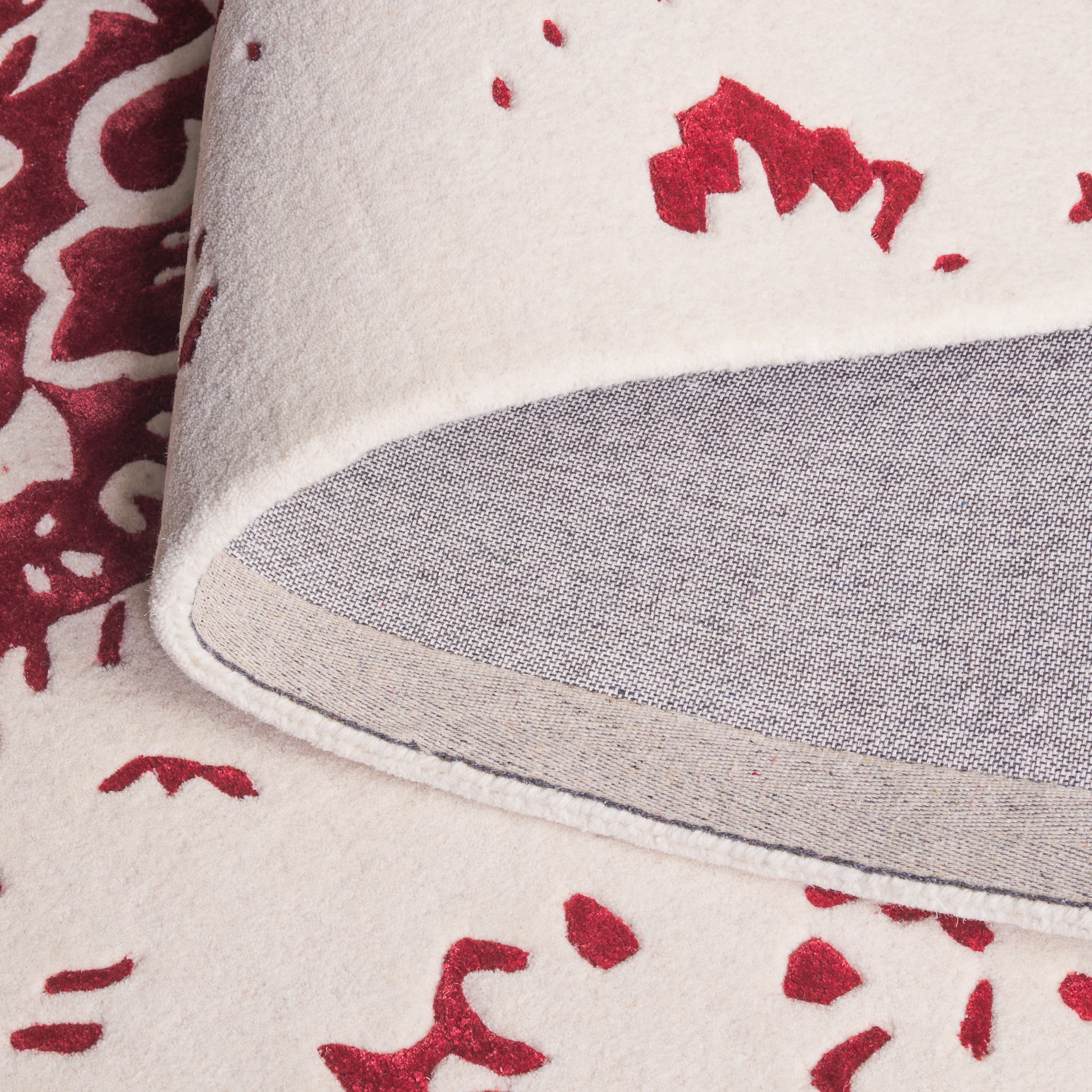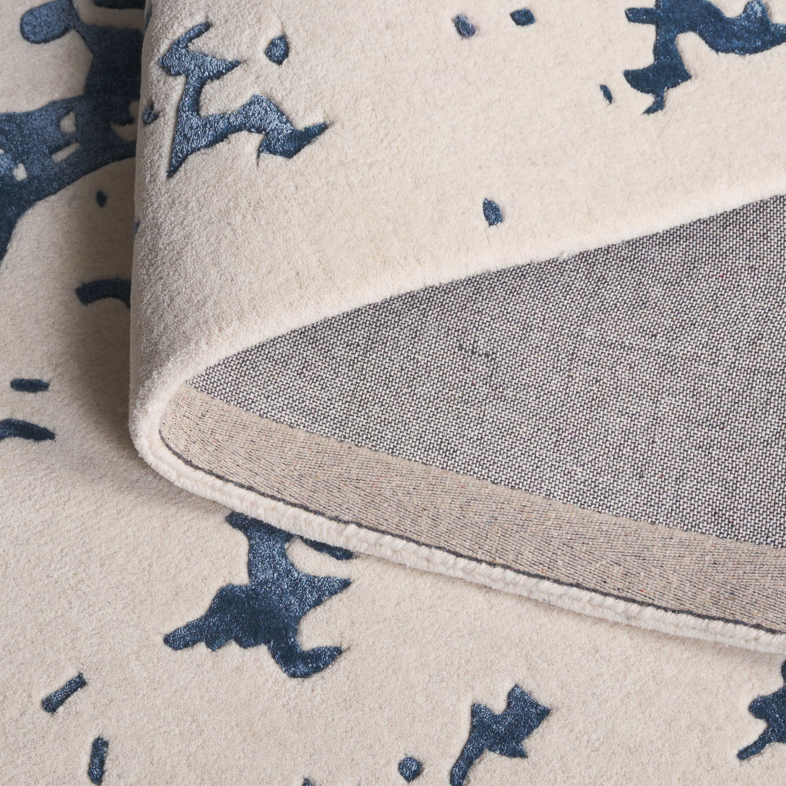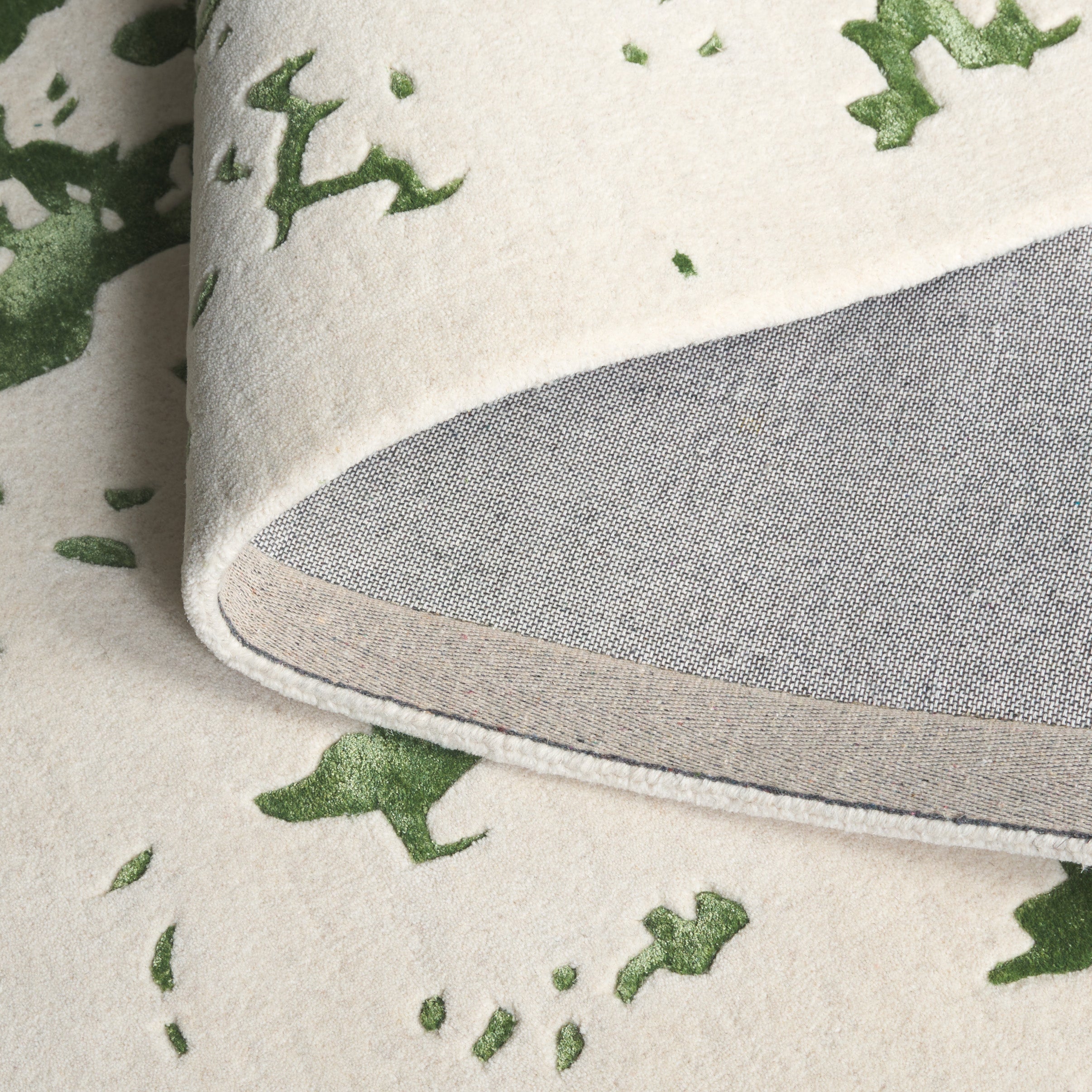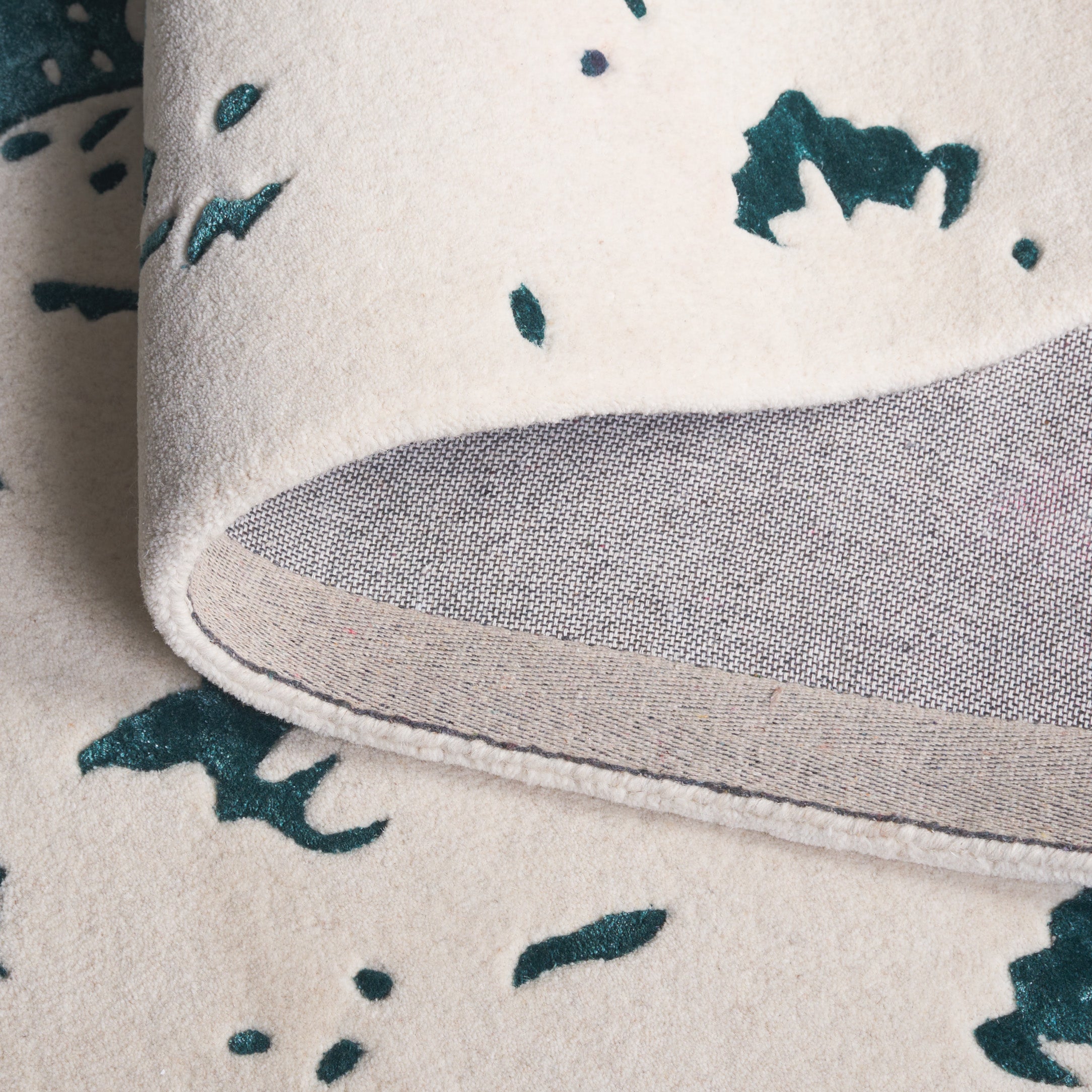 Crafted with precision in India, this rug features an enticing modern style that encapsulates contemporary elegance. The intricate rug pattern, visible in the image provided, displays an abstract, organic design, reminiscent of ink blots or a classic Rorschach test, which is sure to captivate and add an element of intrigue to your home decor.