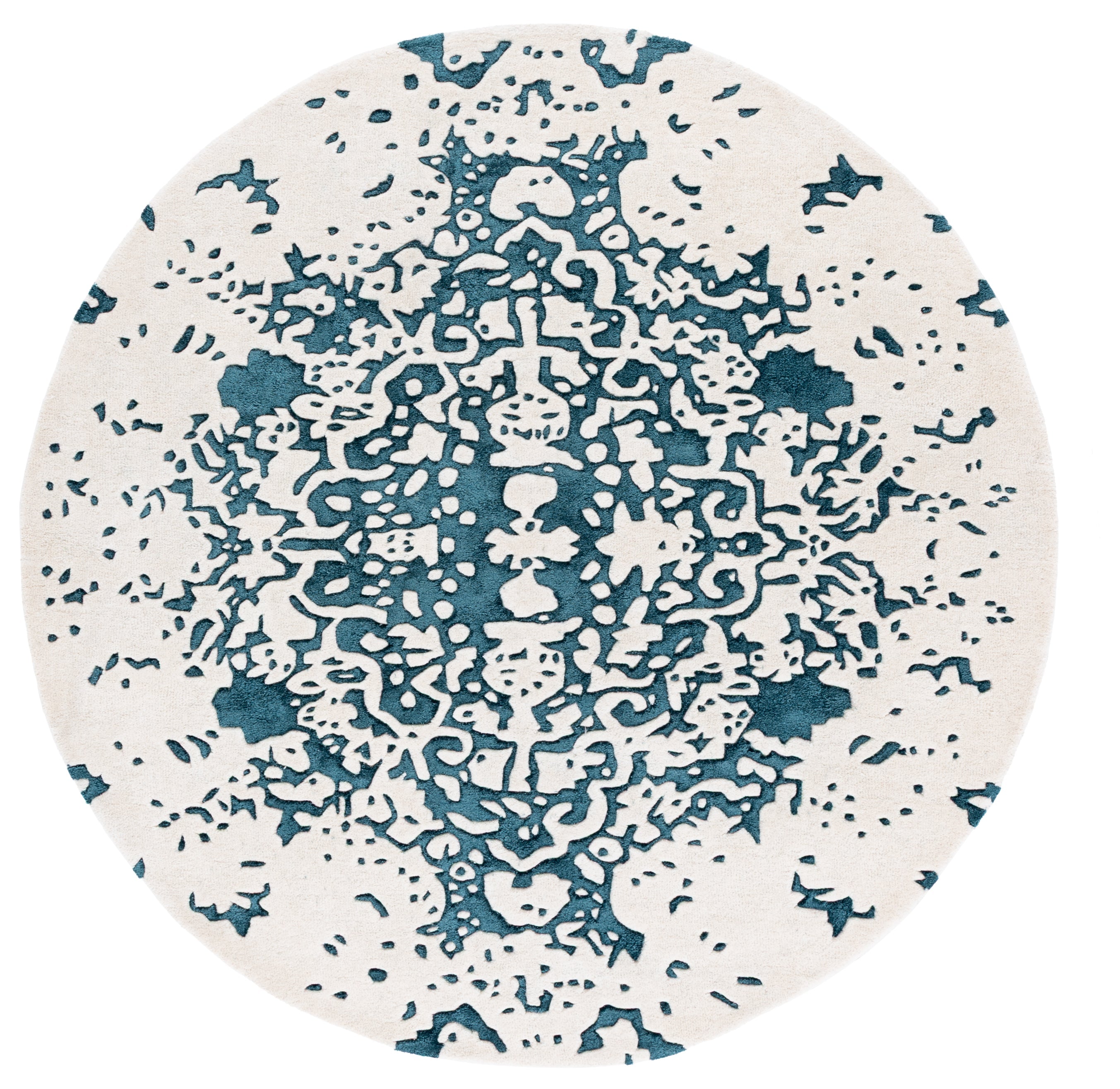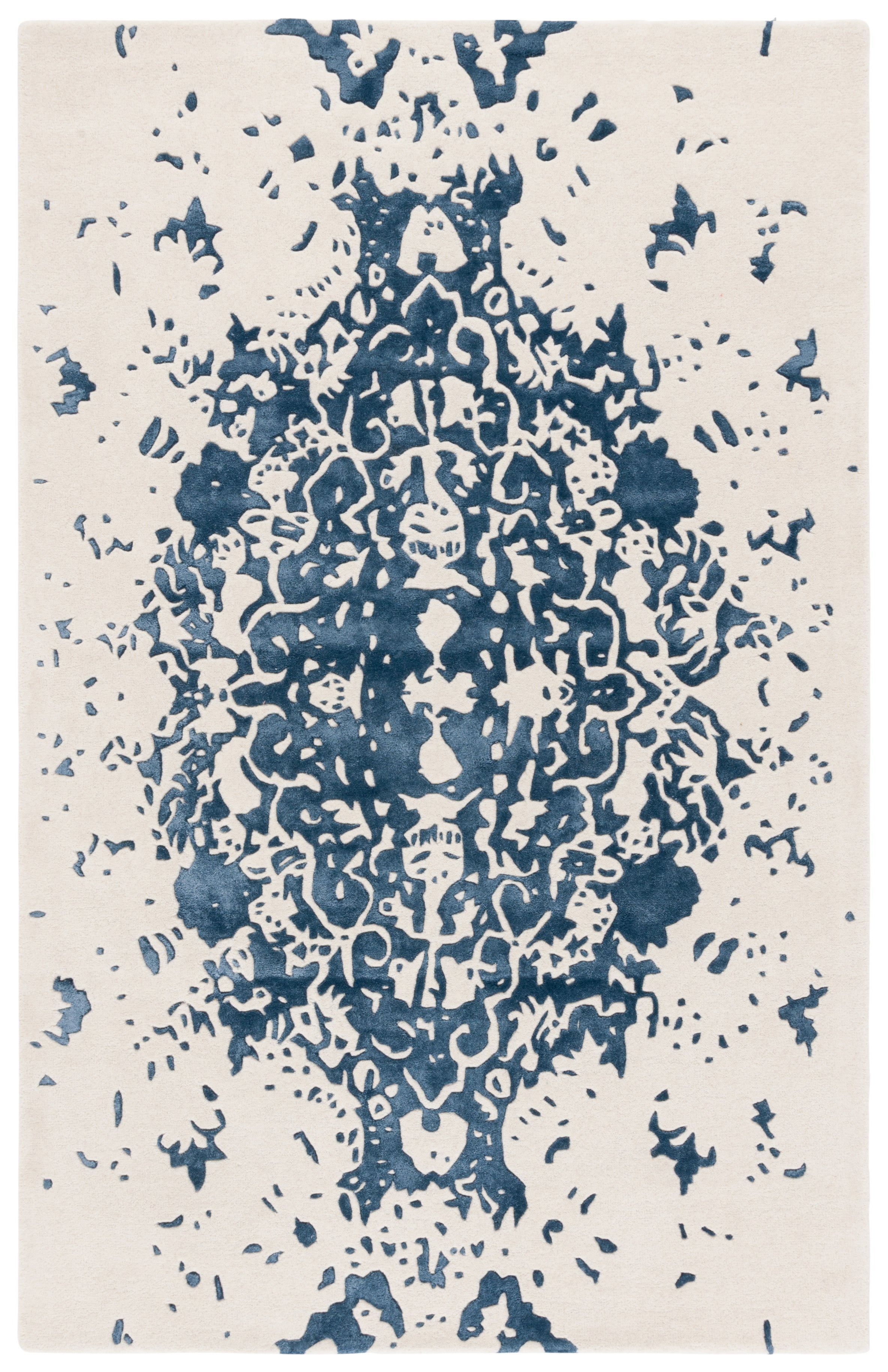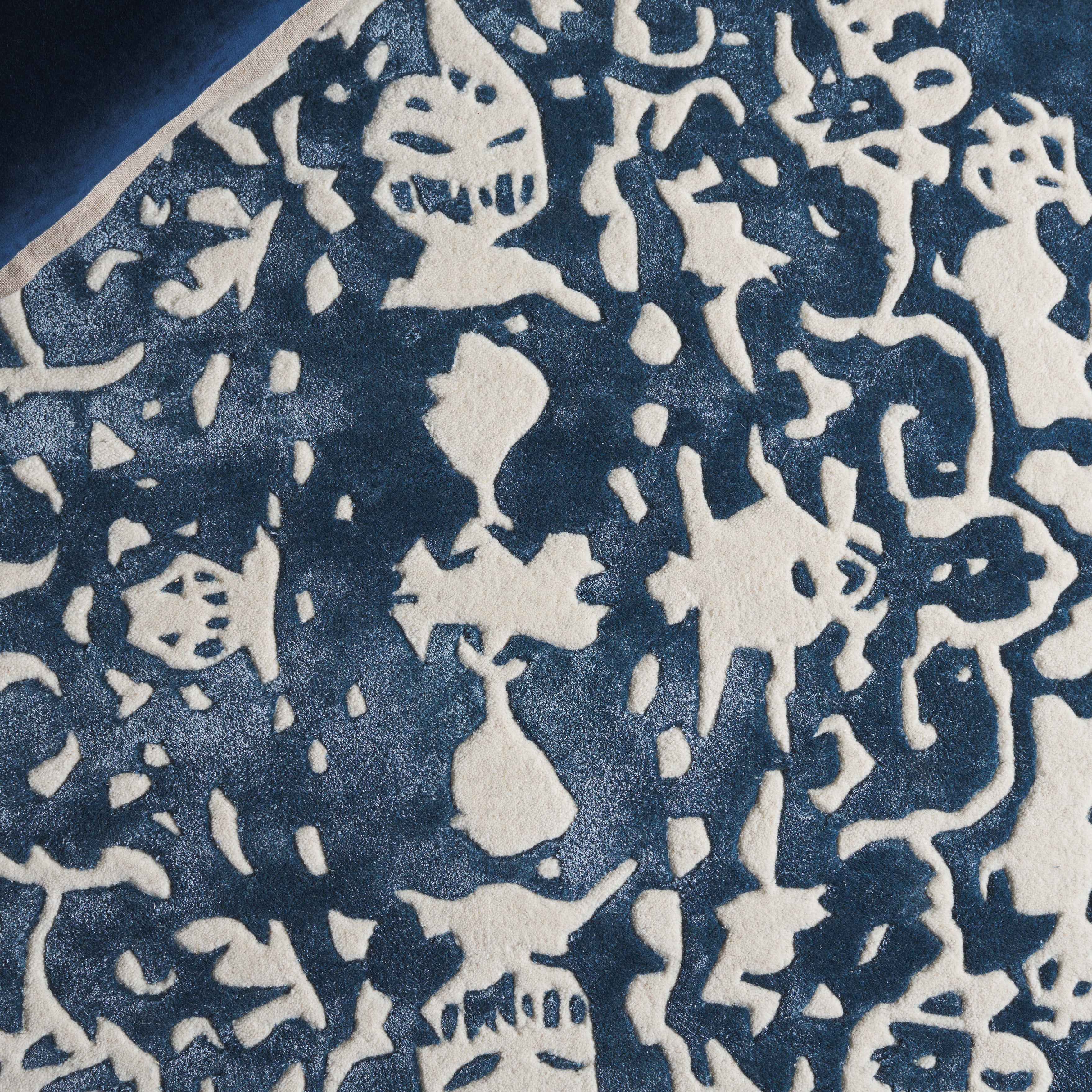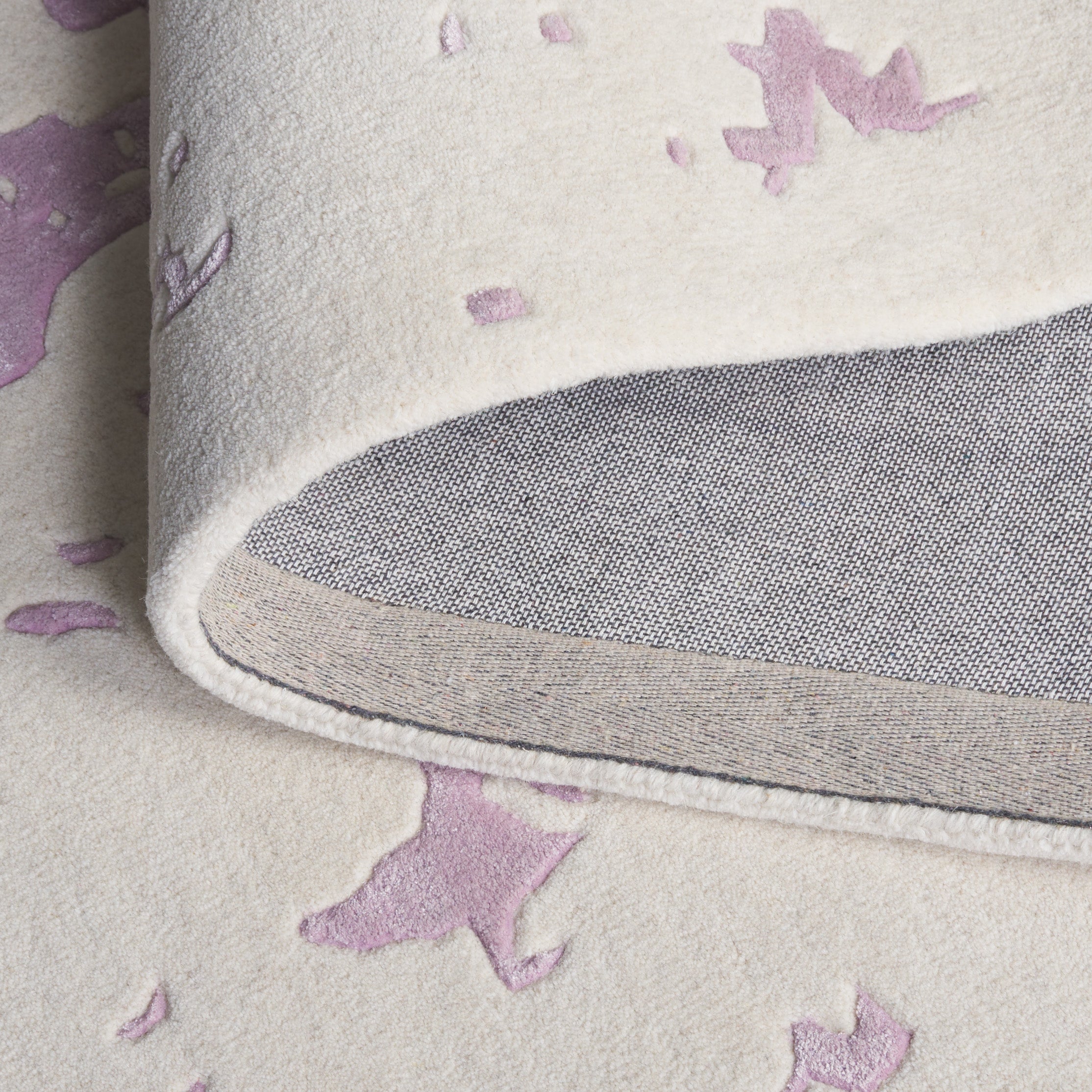 Crafted with precision in India, this rug features an enticing modern style that encapsulates contemporary elegance. The intricate rug pattern, visible in the image provided, displays an abstract, organic design, reminiscent of ink blots or a classic Rorschach test, which is sure to captivate and add an element of intrigue to your home decor.