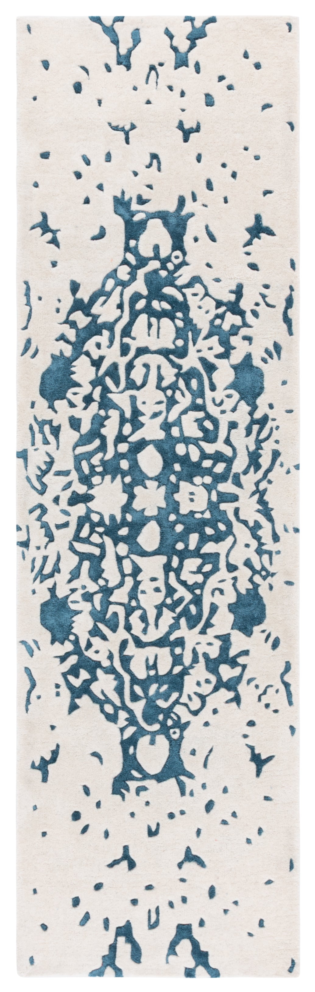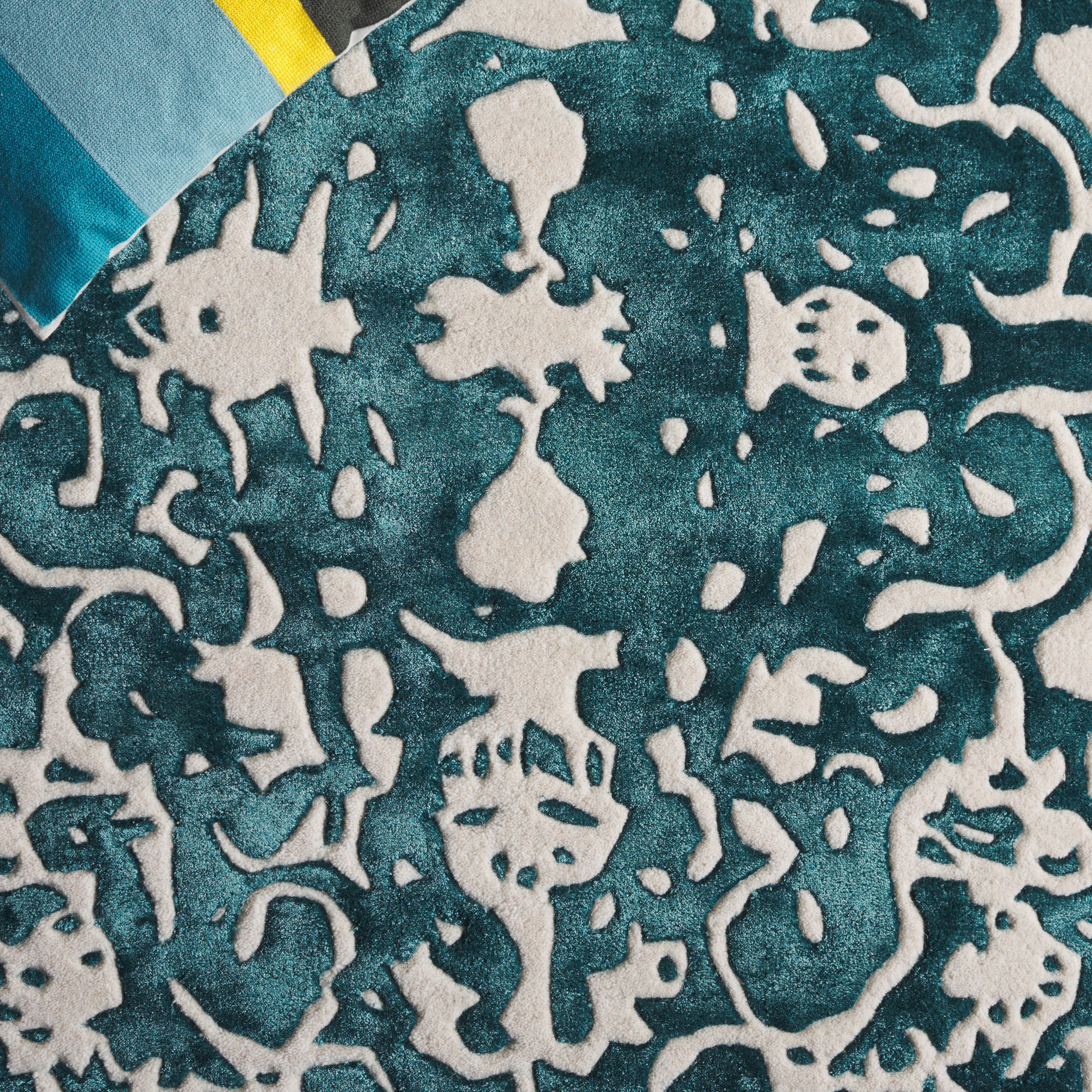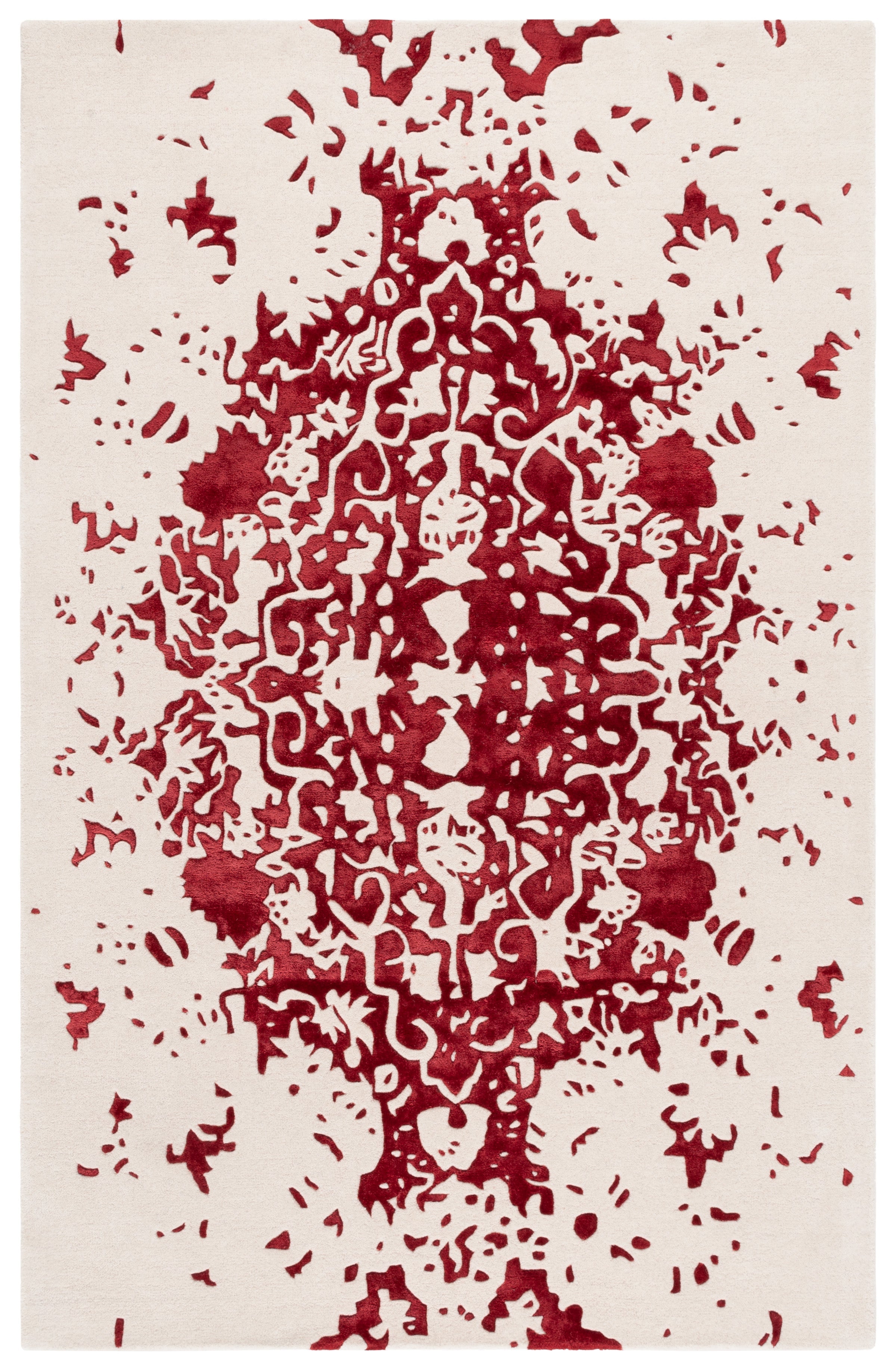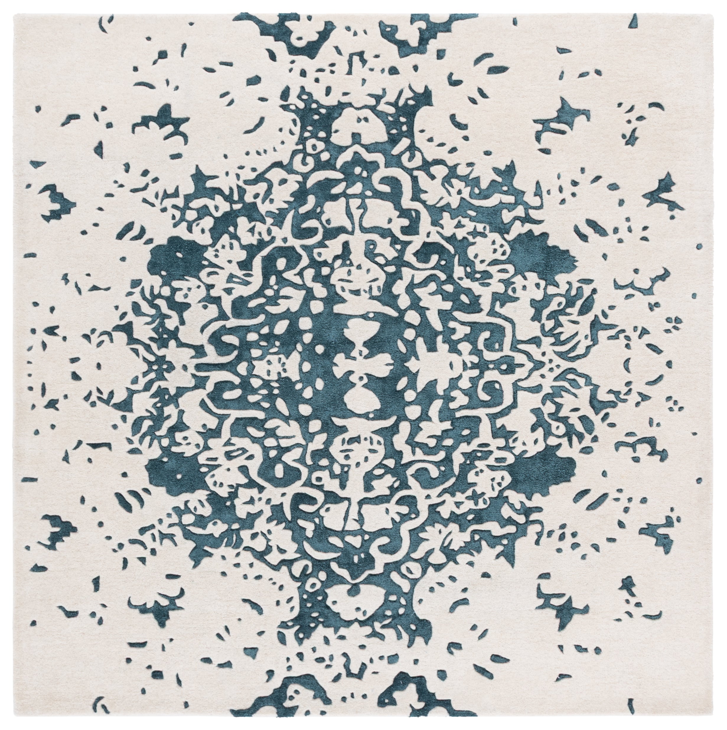 Crafted with precision in India, this rug features an enticing modern style that encapsulates contemporary elegance. The intricate rug pattern, visible in the image provided, displays an abstract, organic design, reminiscent of ink blots or a classic Rorschach test, which is sure to captivate and add an element of intrigue to your home decor.