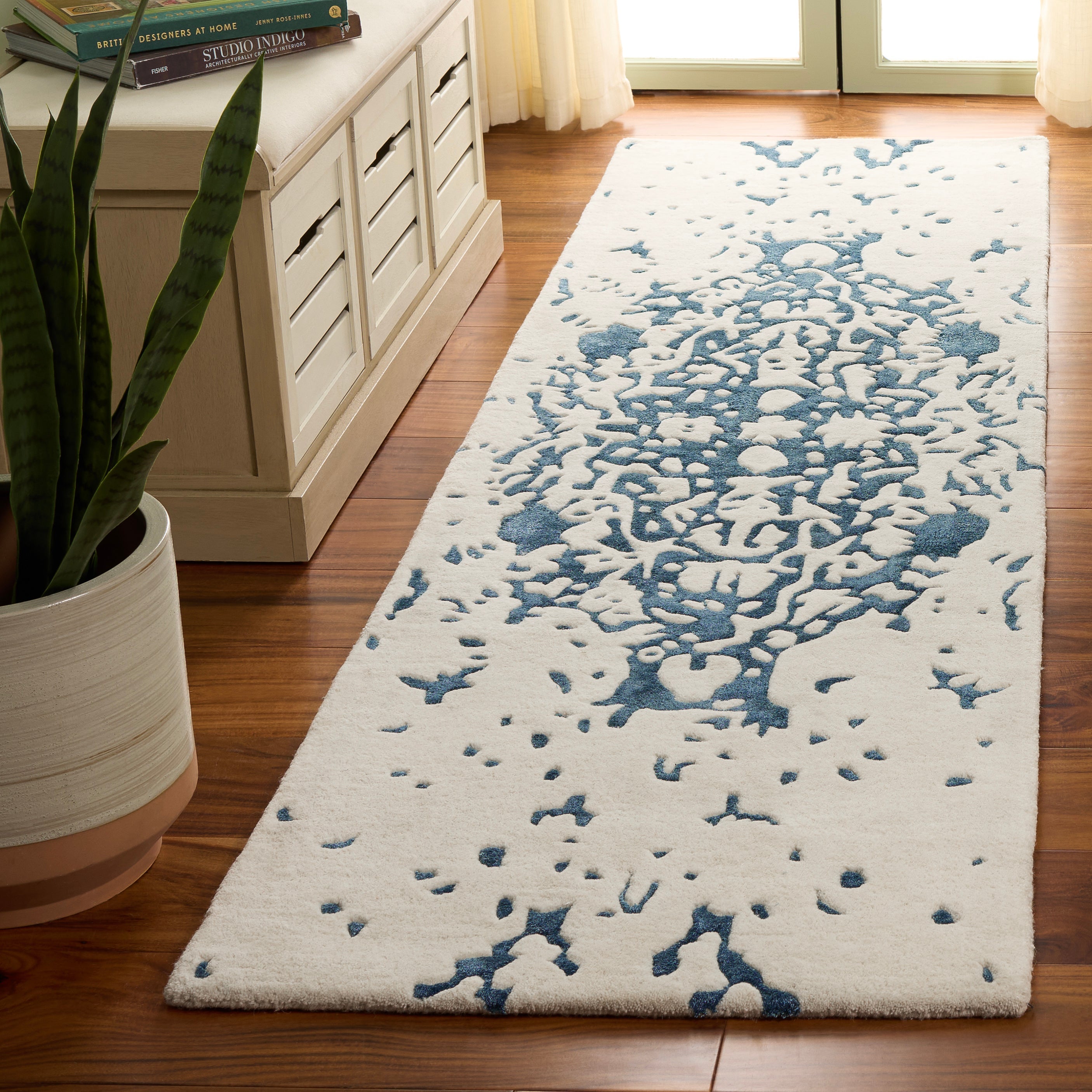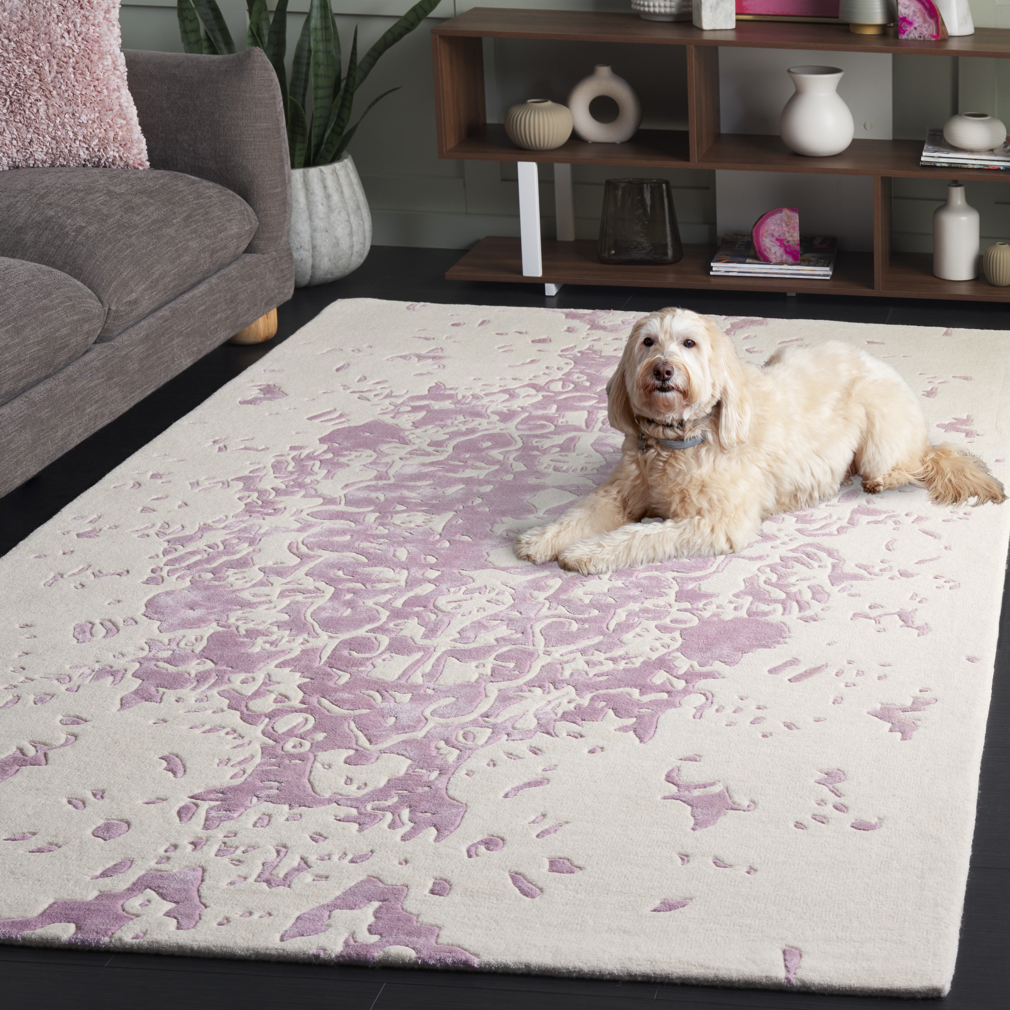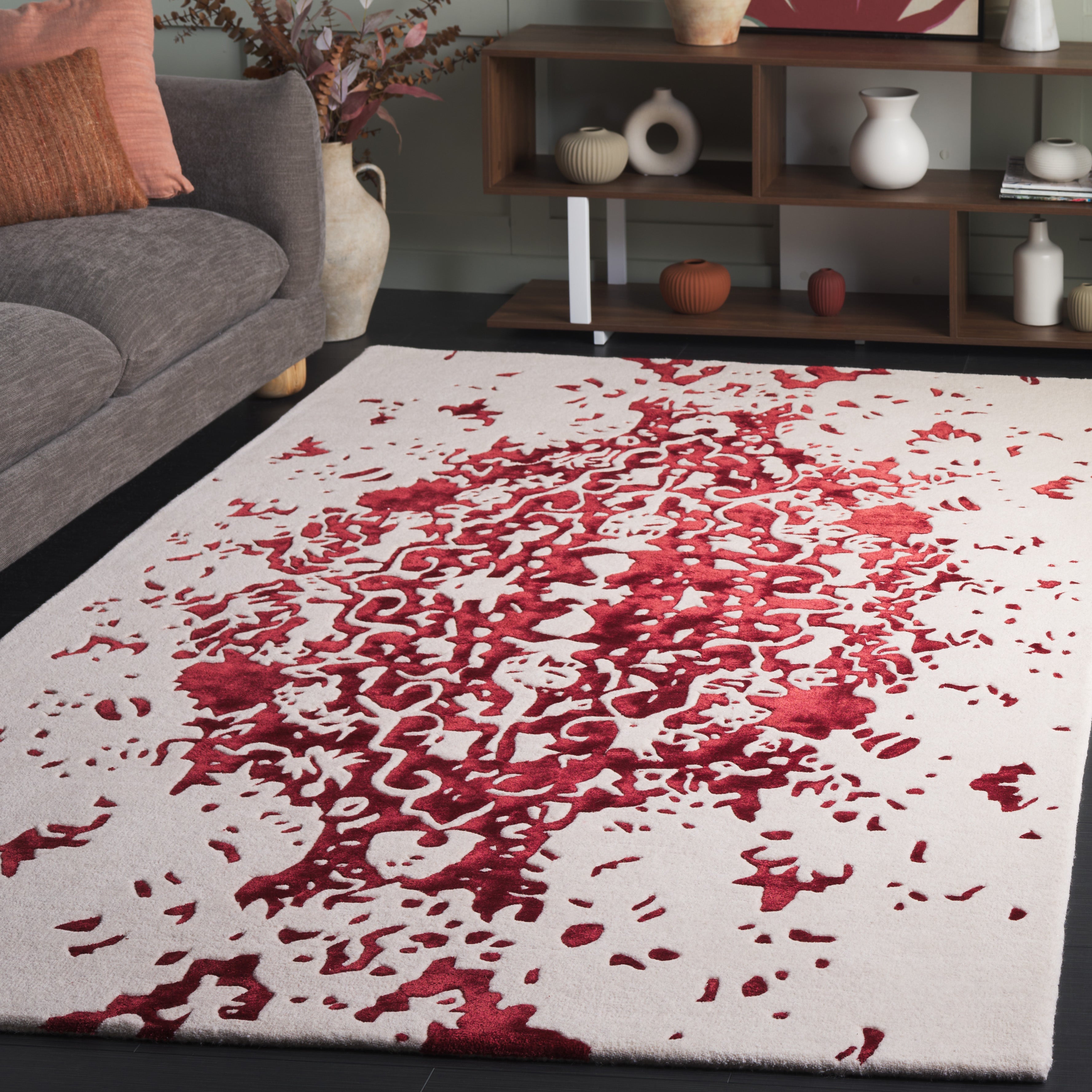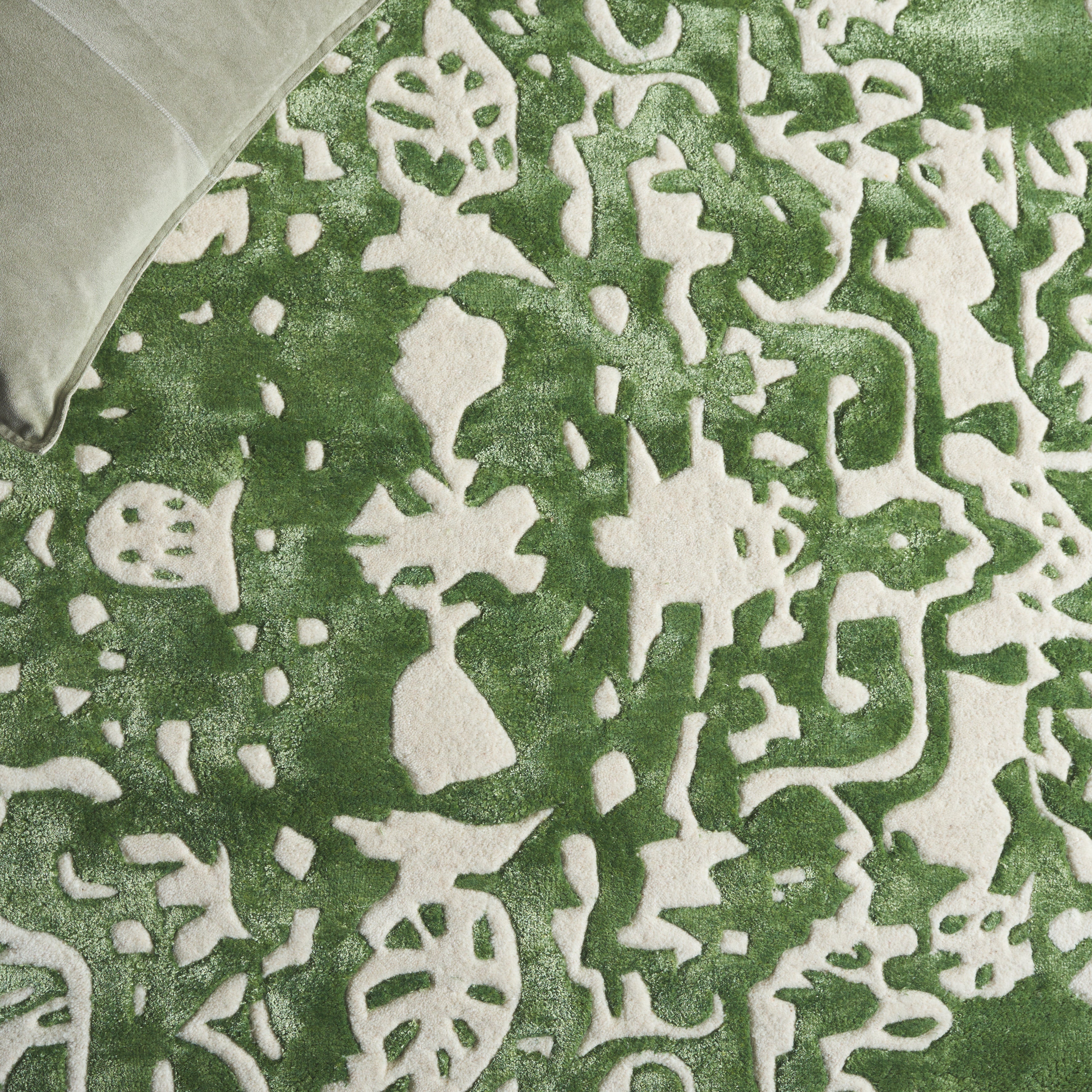 Crafted with precision in India, this rug features an enticing modern style that encapsulates contemporary elegance. The intricate rug pattern, visible in the image provided, displays an abstract, organic design, reminiscent of ink blots or a classic Rorschach test, which is sure to captivate and add an element of intrigue to your home decor.