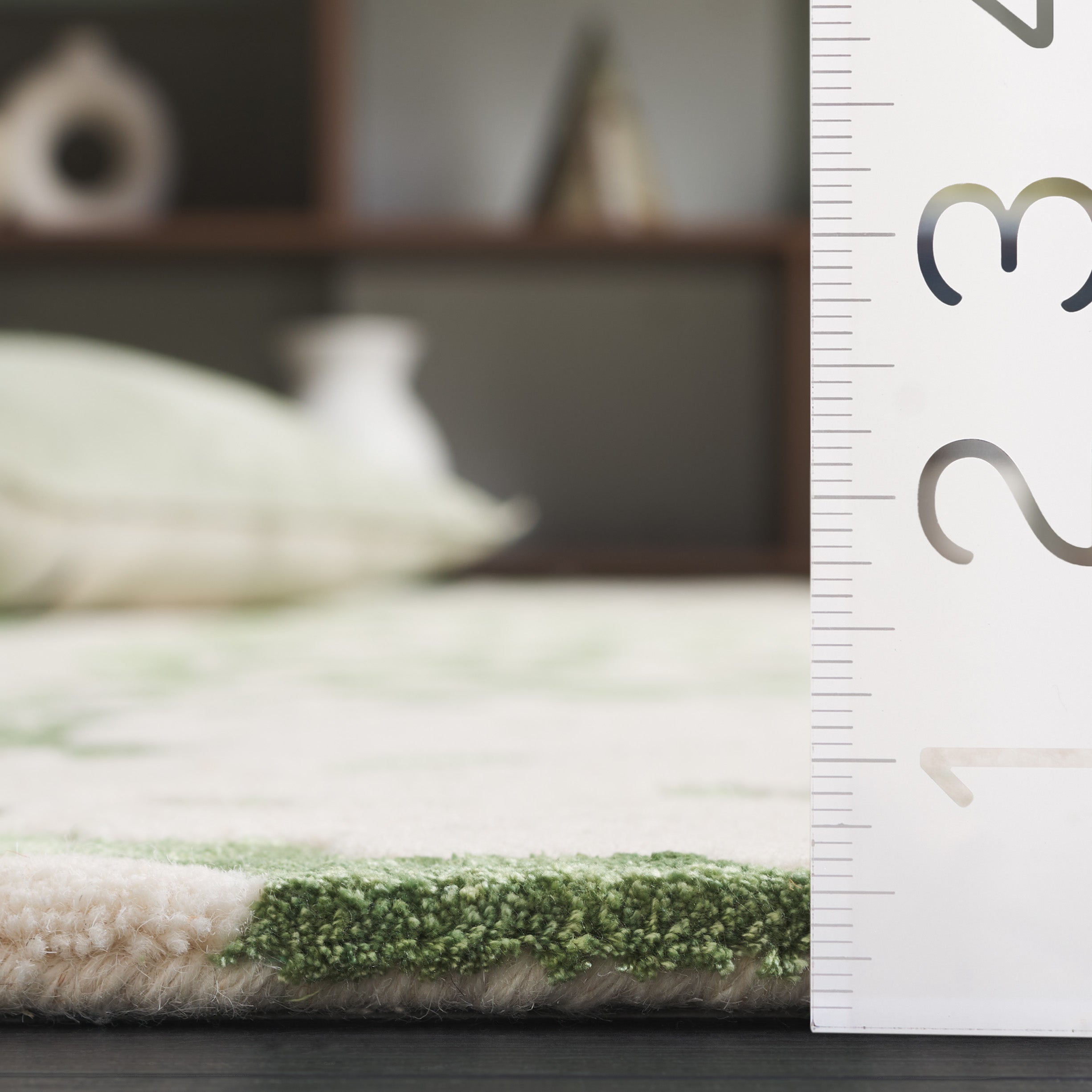 The construction of this rug is a testament to quality and durability, as it boasts a composition of 60% wool for warmth and comfort, 30% viscose for a subtle sheen, and 10% cotton for added strength. With a comfortable pile height of 3/8 inches, it is not just a treat for the eyes but also gentle underfoot.
