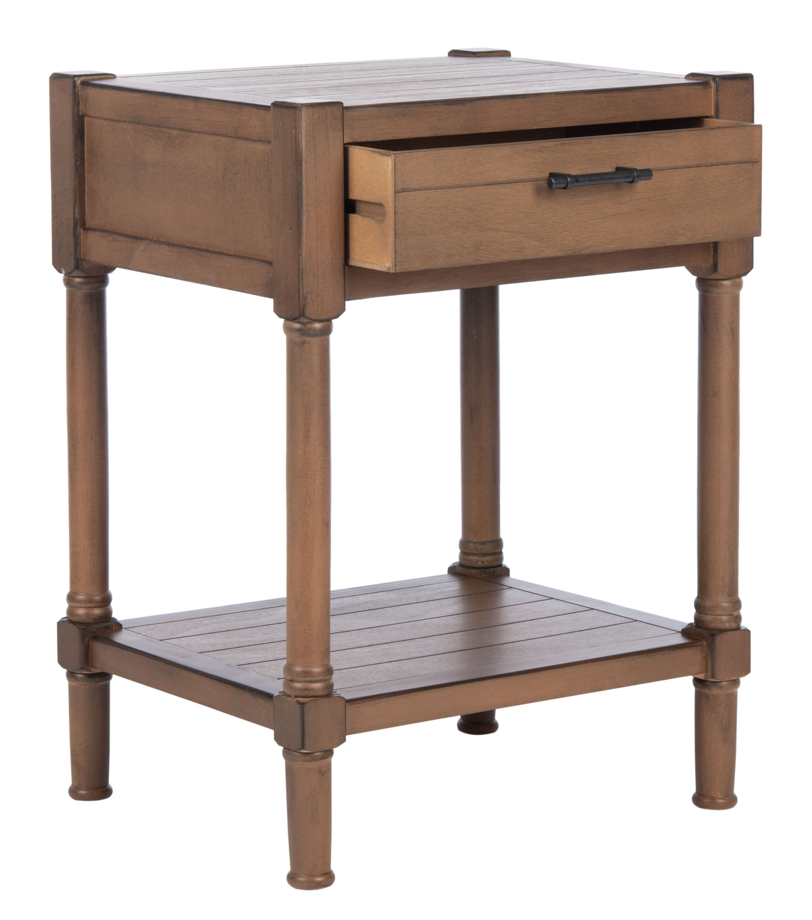 Modern minimalism meets traditional elegance in this Filbert Accent Table. Filbert's geometric shelf and drawer are given an elegant treatment with classically turned legs and carved accent details, and the finish ensures Filbert seamlessly blends with any decor.