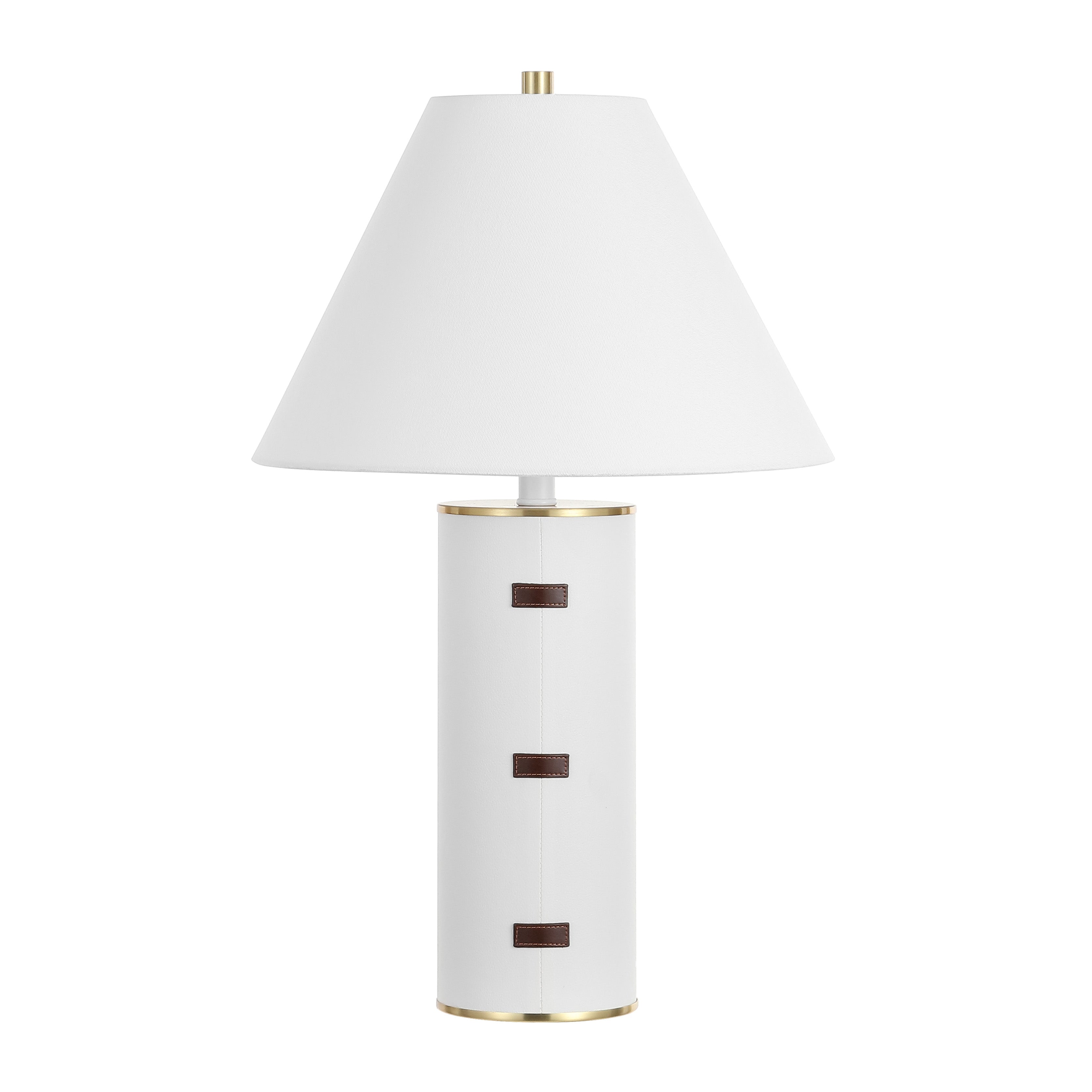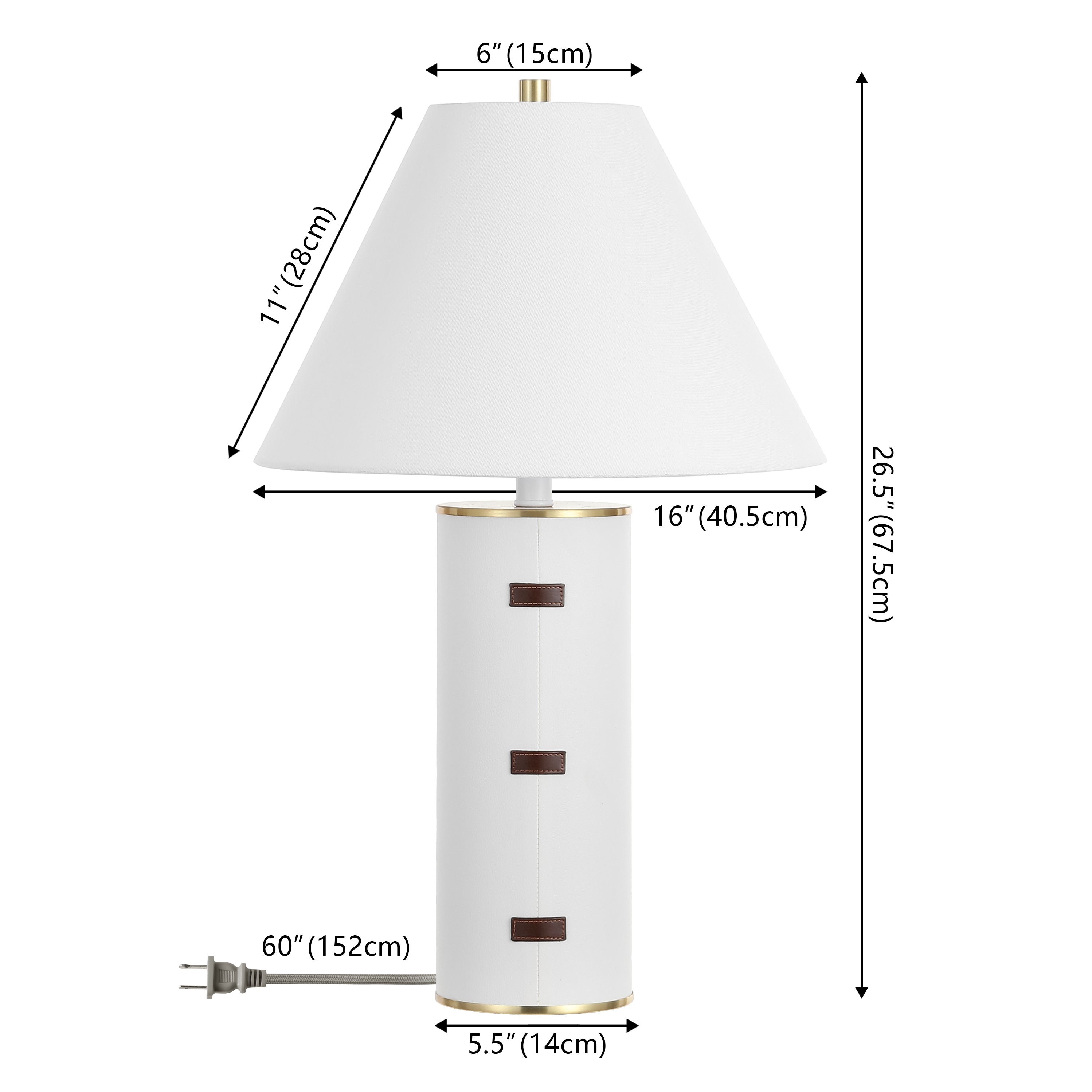 Perfect for reading, creating ambient light, or simply as a decorative piece, this lamp features a vertical band design with the faux leather adding a touch of texture and visual interest to the cylindrical silhouette. The gold accents deliver a subtle hint of luxury, enhancing the overall aesthetic appeal.