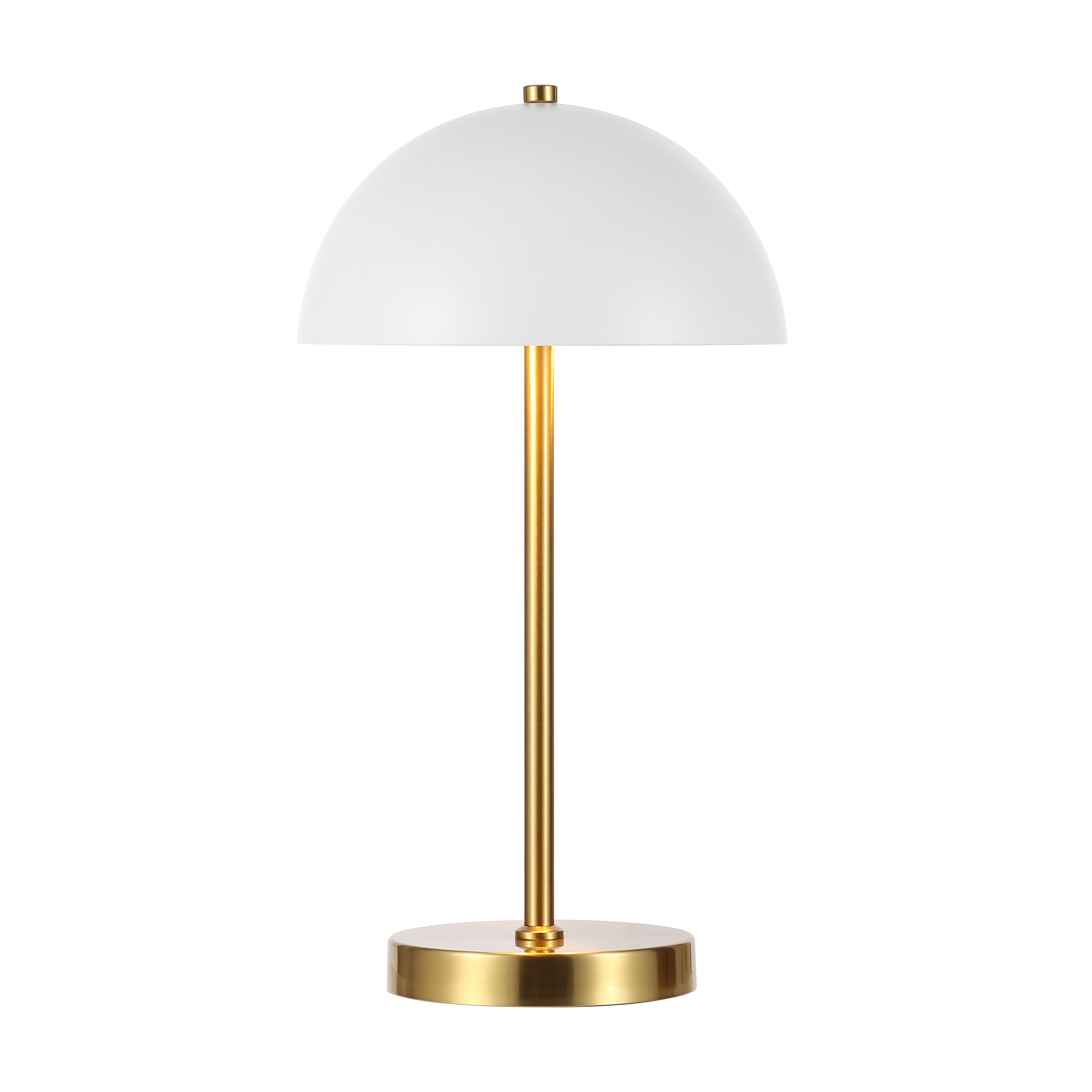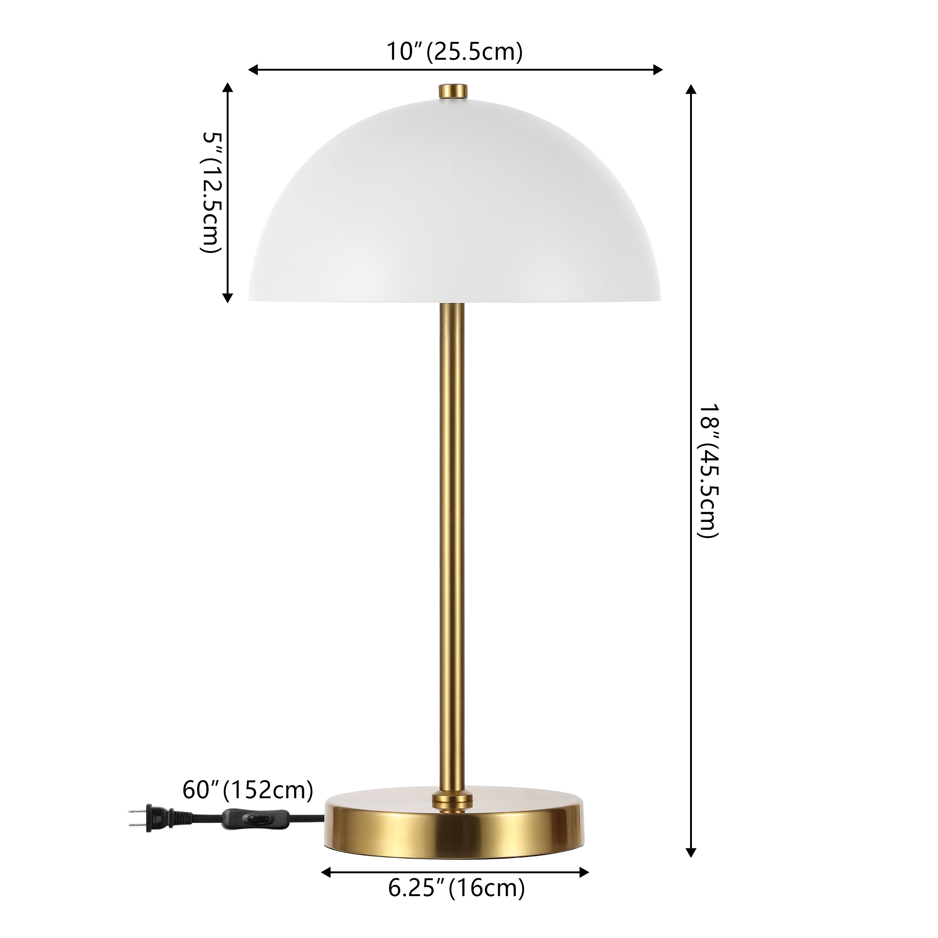 The seamless integration of the white dome shade and the striking brass finish of the body adds a touch of refinement to your desk, bedside table, or living area. The 60-inch (152 cm) power cord provides ample length for versatile placement options. Whether you're setting the mood in a quiet corner or highlighting your favorite reading spot, the Goldie Inch Table Lamp is an inviting addition to your decor, delivering both functionality and style.