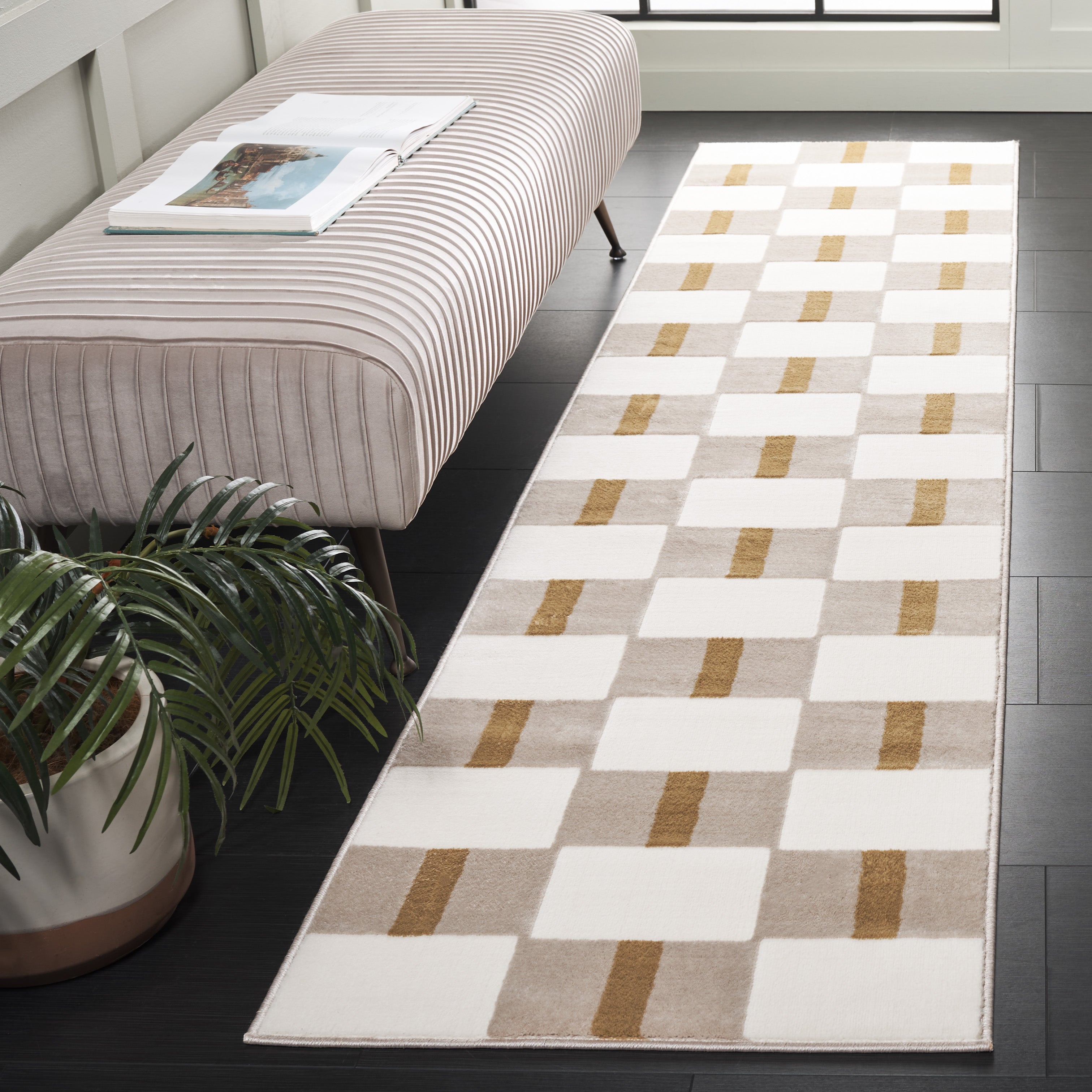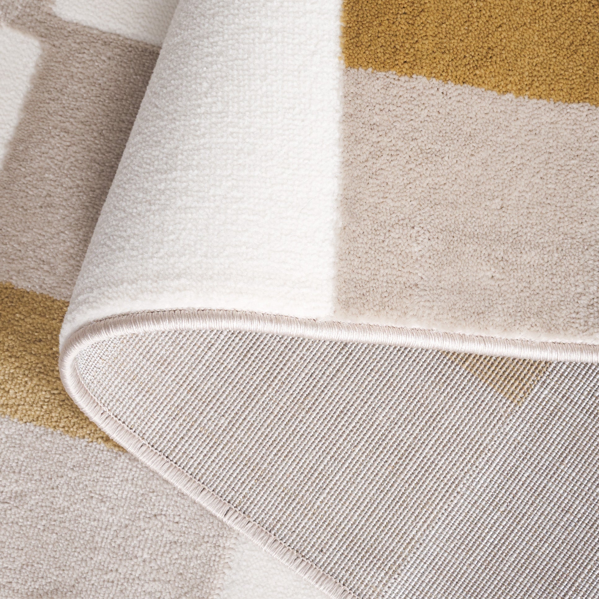 At a comfortable height of 3/8 inches, the rug provides a plush underfoot experience without being too thick, allowing for easy placement in entryways or under doors. The neutral ivory and tasteful gold hues make this runner rug a versatile choice, capable of harmonizing with a wide range of color schemes.
