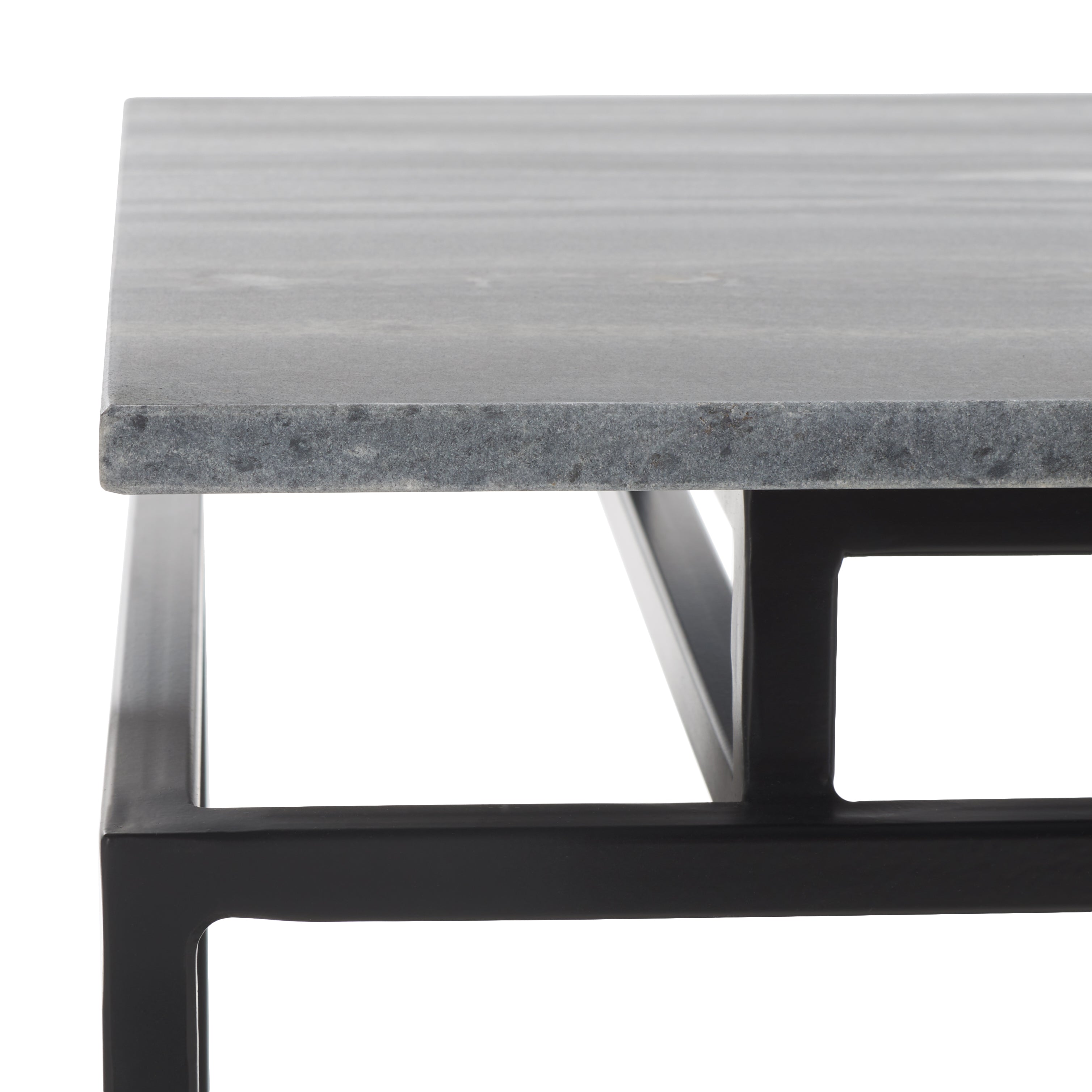 Upgrade your home with the sophisticated drama of our Guernica accent table. Our two-tiered table showcases a stunning, marquine black marble top. The ultra slender and refined legs seamlessly flow to add drama to our modern table. Its metallic legs take a sweeping turn to beautifully afloat a marble shelf. Elegant and visually captivating, our accent table provides adequate space to display your decorative accents and keep your essentials within easy reach.