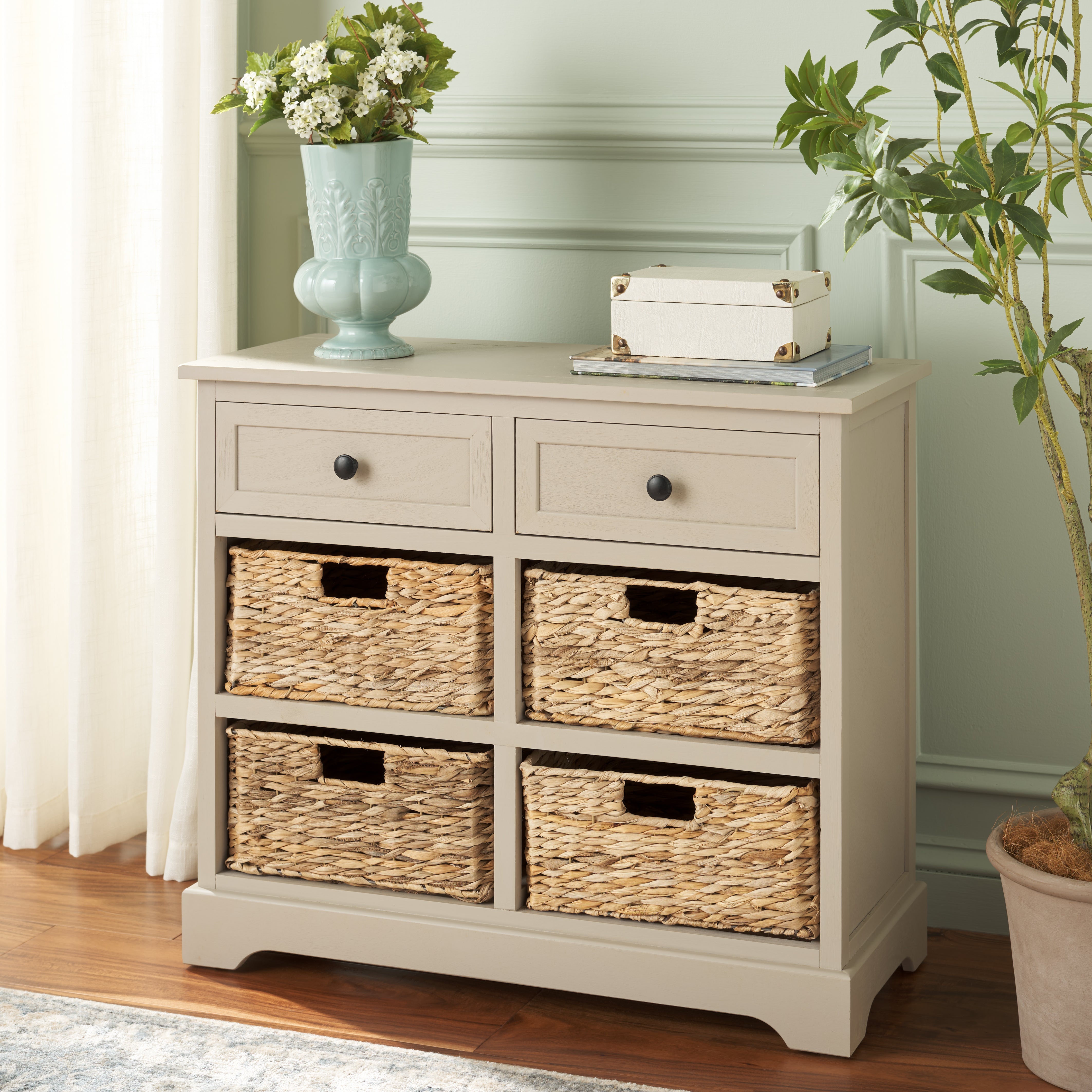 Herman Storage Unit With Wicker Baskets | Safavieh - AMH5702