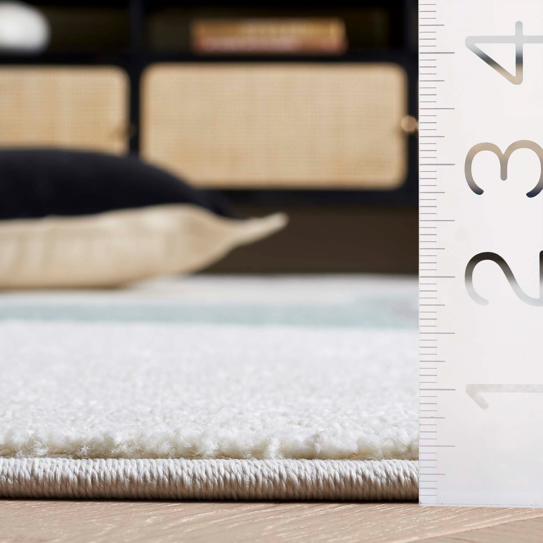Elevate your space with our exquisite 2x3 area rug, expertly crafted in Turkey. The harmonious blend of ivory and blue hues brings a refreshing touch to any room. Designed in an accent shape with a 5/8 inch height, this rug offers a subtle yet striking presence. Power loomed with polypropylene, it combines durability with a soft texture underfoot.
