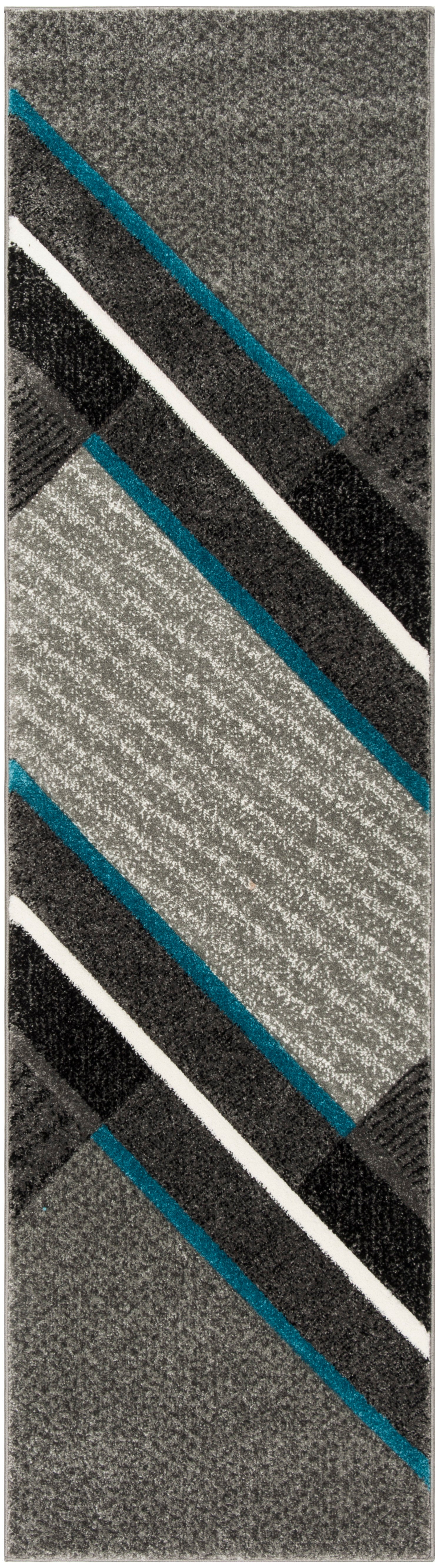 Elevate your space with the sophisticated allure of our Contemporary Grey/Teal Runner Area Rug. Expertly crafted in Turkey, this 2'3" X 10' runner rug is a testament to modern design and functional elegance. With a plush 5/8" pile height, each step is cushioned for ultimate comfort, while the power-loomed polypropylene construction promises durability, making it perfect for high-traffic areas.