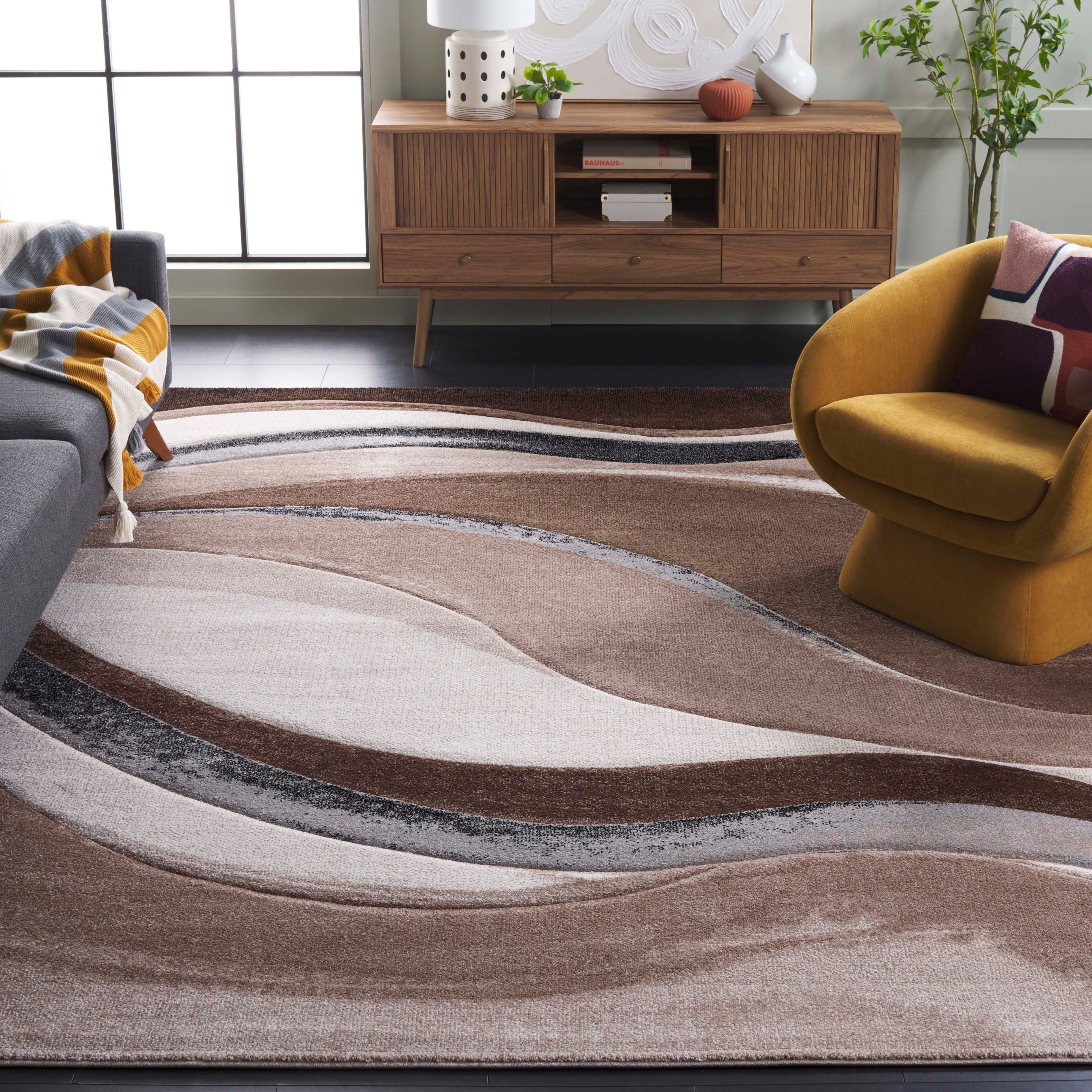 This runner rug features an elegant pattern that showcases sinuous lines in a harmonious blend of brown and ivory, creating a visual that is both dynamic and soothing. The use of polypropylene in a power-loomed construction offers not only a soft touch but also durability, ensuring it can withstand the daily foot traffic of busy areas in your home.