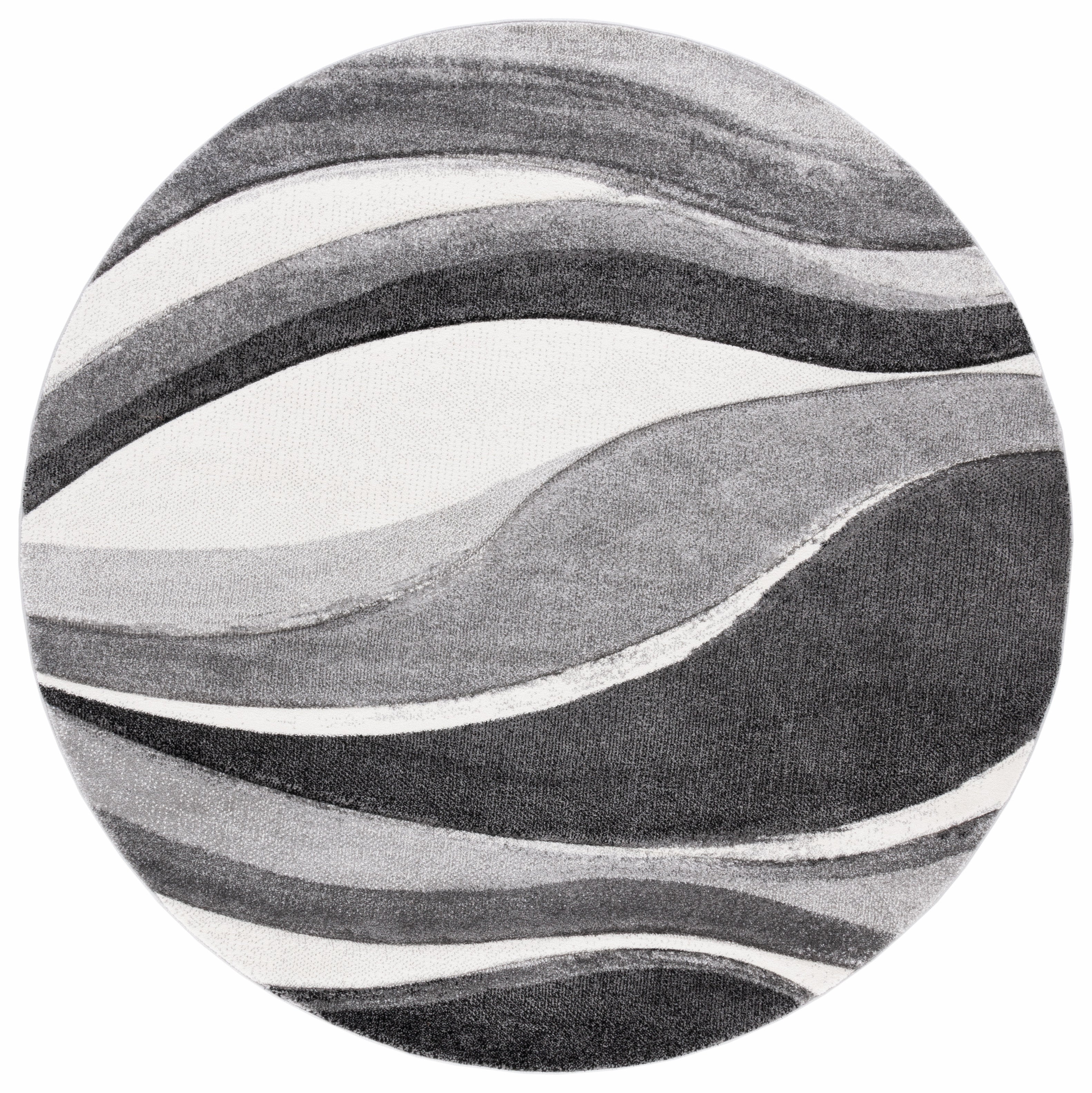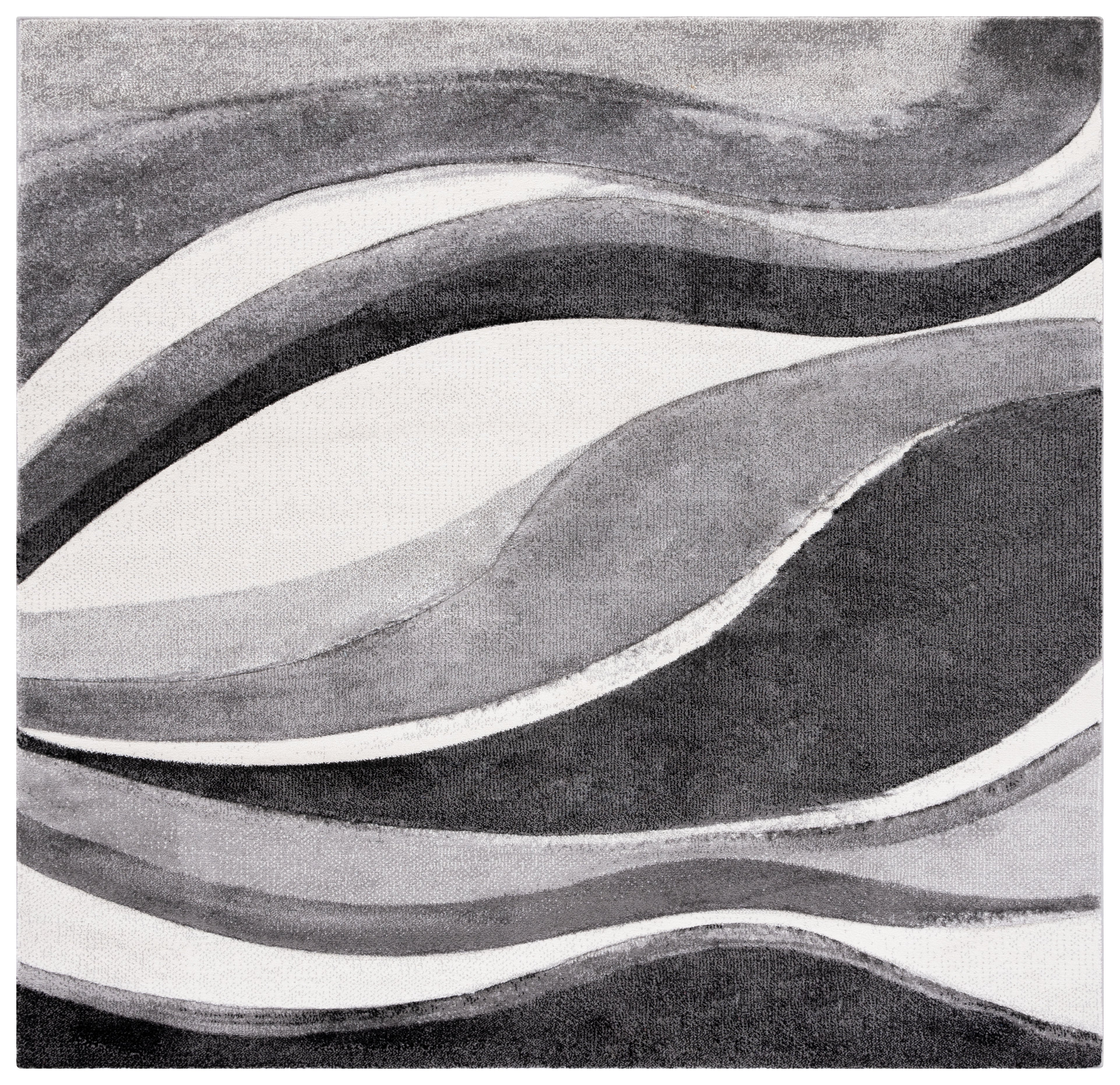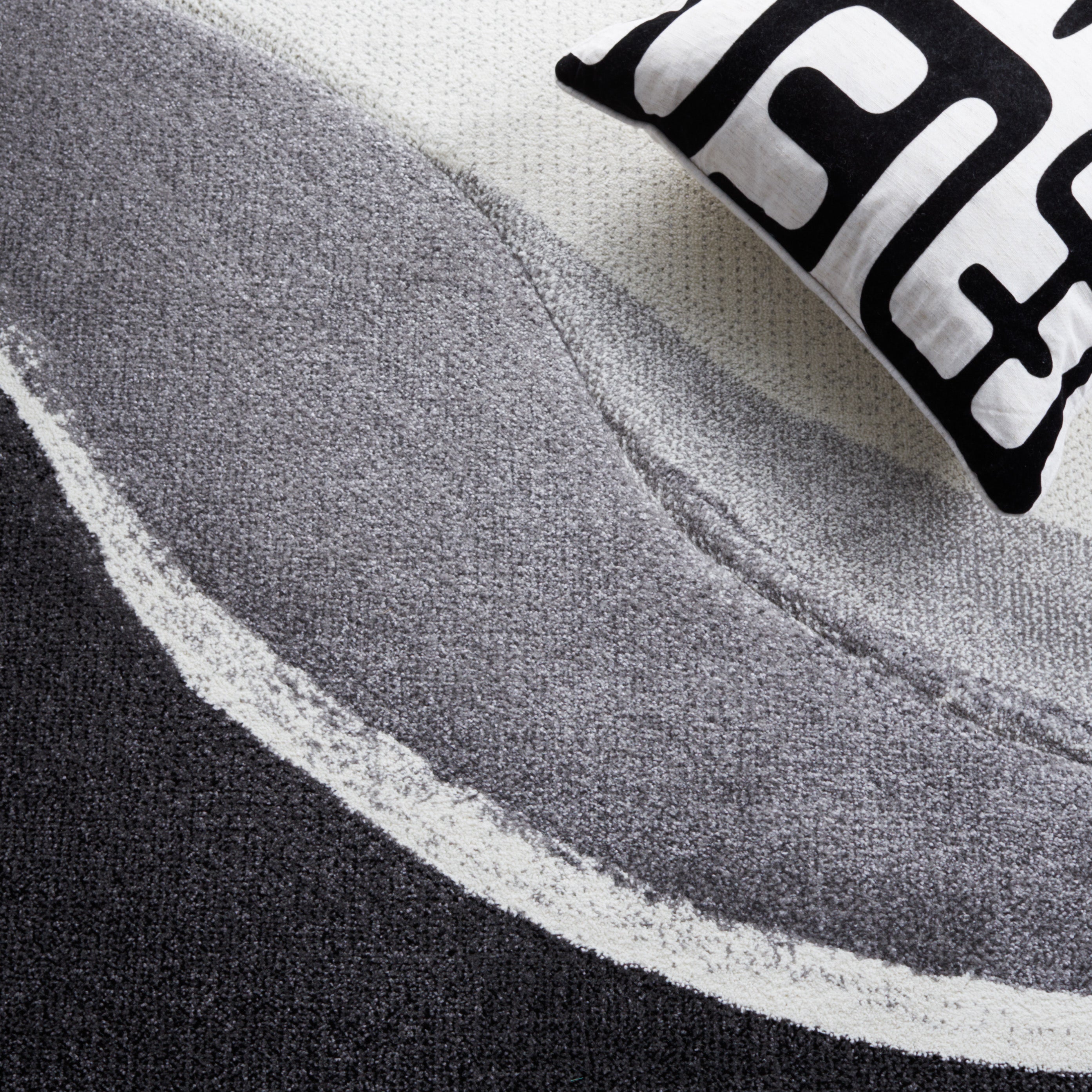Constructed using advanced power-loomed techniques, the rug brings durability and precision to its grey and ivory hues that are seamlessly integrated into the flowing, organic wave pattern. The polypropylene fibers ensure a soft underfoot feel with a 5/8 inch pile height, making it both comfortable and practical for high-traffic areas.