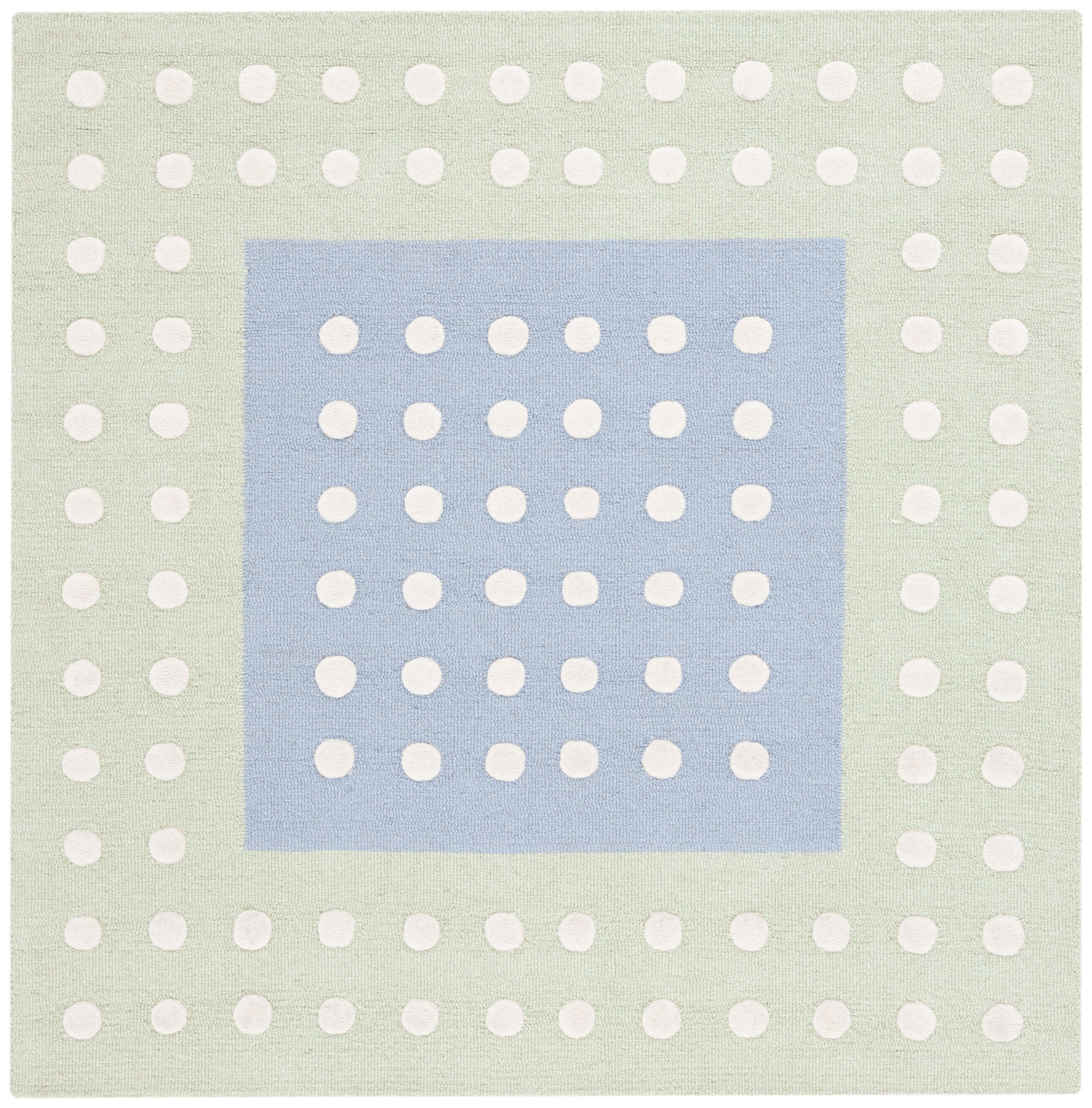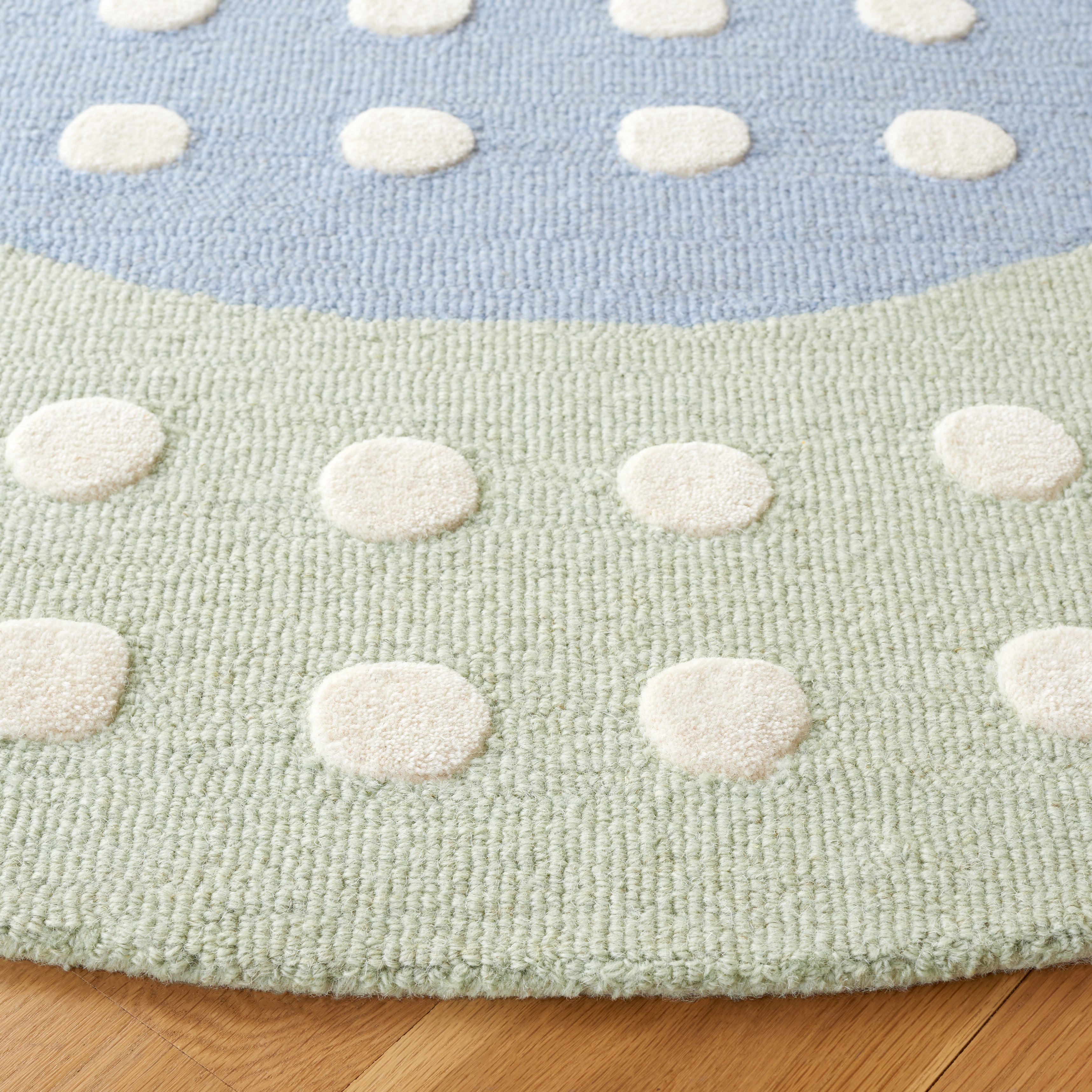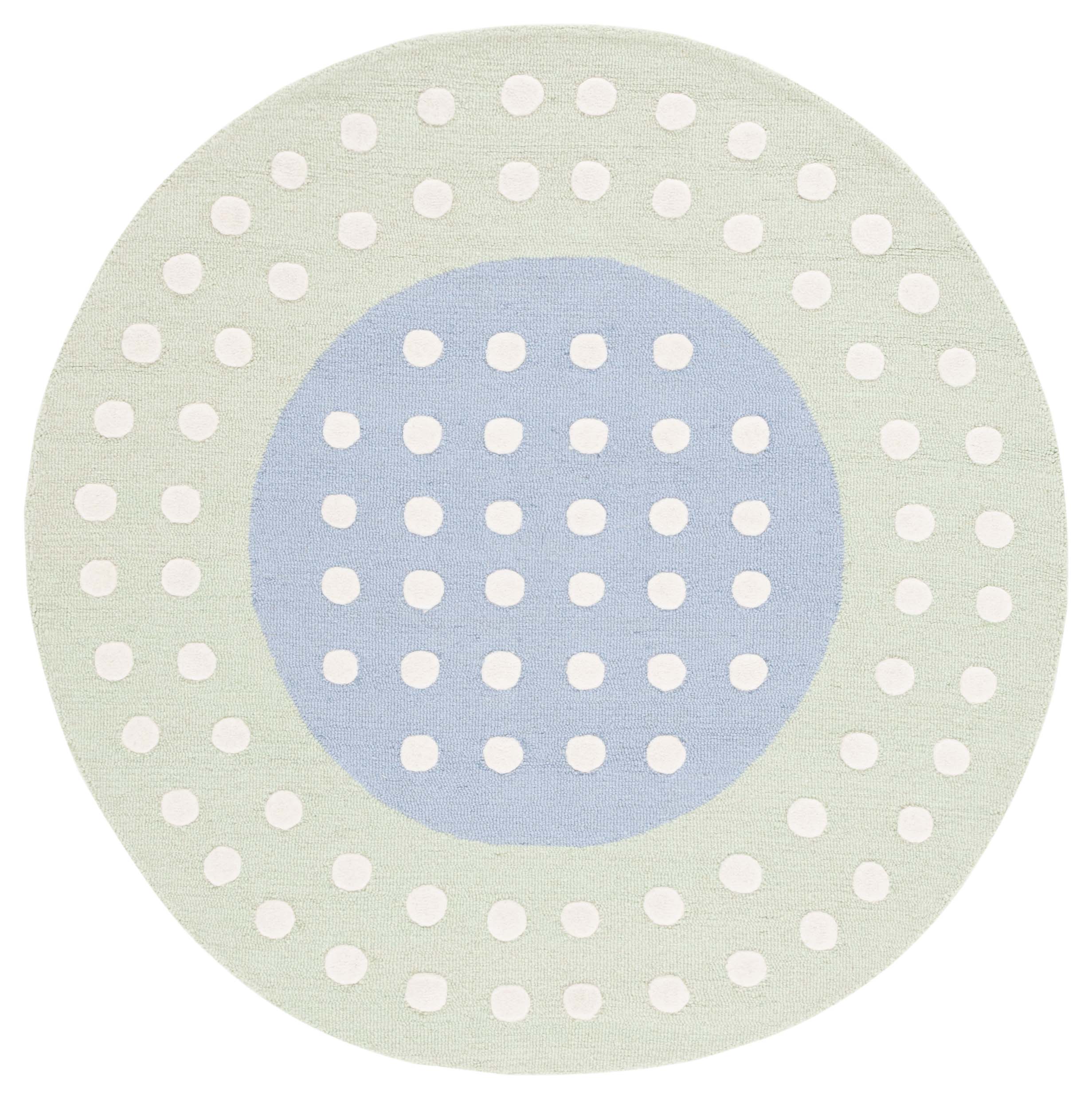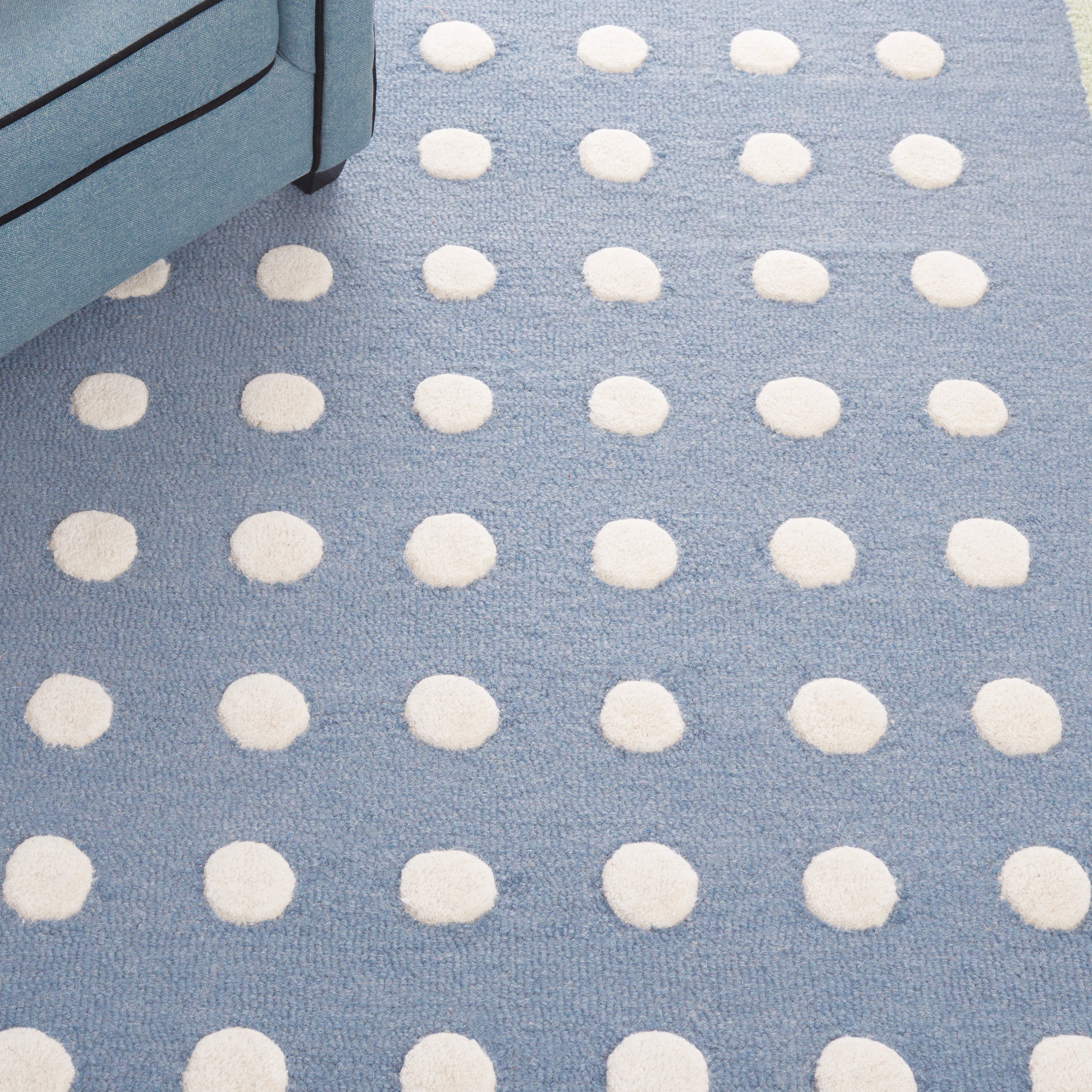 Proudly made in India, this rug captures the essence of artisanal craftsmanship with its hand-tufted technique, which contributes to its unique texture and quality. The playful pattern, as seen in the image, showcases a series of polka dots that provide a visual interest and an element of fun to the design. With a pile height of 1/2 inch, it's perfect for high-traffic areas where kids and pets can frolic freely.