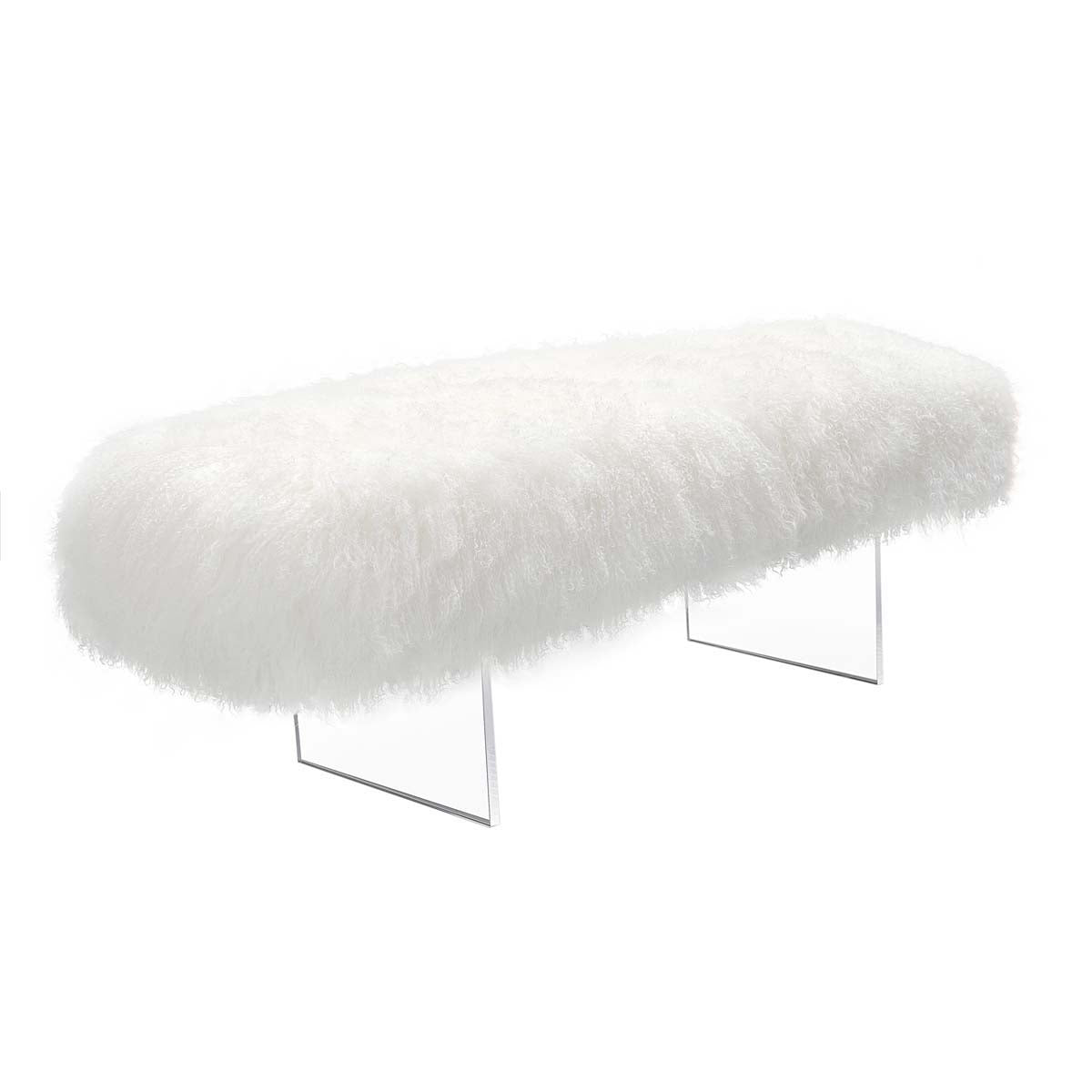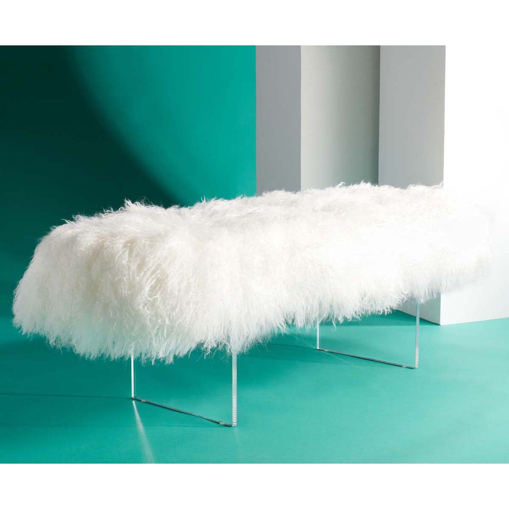 The luxury and comfort of sheepskin rugs is glamorously transformed in this Lilliana Sheepskin Ottoman. Lilliana flaunts a captivating sense of motion in genuine white sheepskin, sitting atop crystal clear acrylic legs that give Lilliana a beautiful, cosmopolitan sense of depth and dimension.